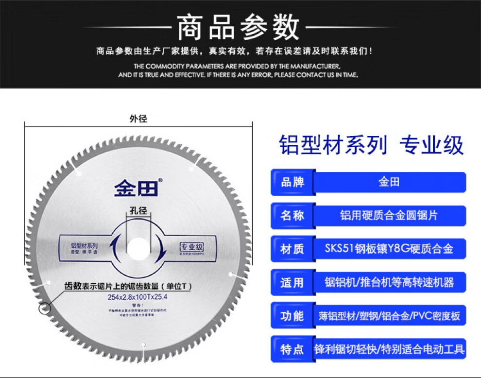 Jintian alloy saw blade professional grade aluminum profile saw blade broken bridge plastic steel cutting aluminum alloy circular saw blade cutting blade 10 inches 7 inches 180 2.2 80T 25.4 flat teeth