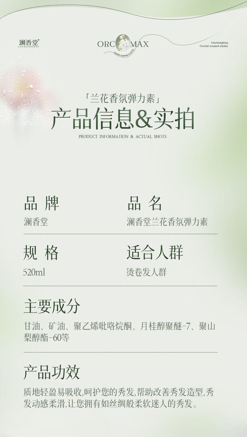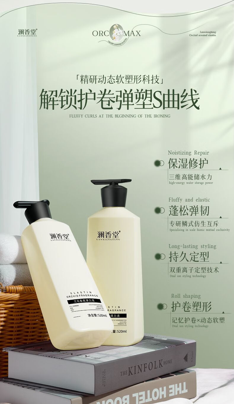 Lanxiangtang Elastin Fluffy Q-Elastic Roll Protector Long-lasting Moisturizing and Styling Long-lasting Elastic Roll Magic Device Long-lasting Fragrance SN7890 Special Promotion Official Authentic 520ml*1 Bottle