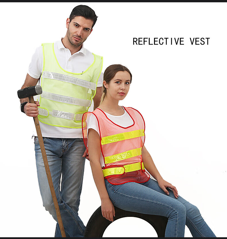 Reflective vest riding construction site motorcycle sanitation breathable mesh construction building reflective clothing safety vest customized orange