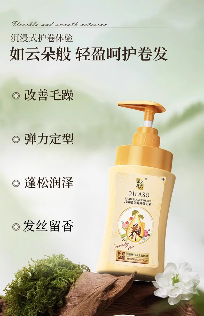 Dihuazhixiu Elastin 300g protects curls, moisturizes and is highly elastic, nourishes and repairs dry, frizzy and split ends, wool curls, hair care and styling. Dihua Elastin 300g-2 bottles