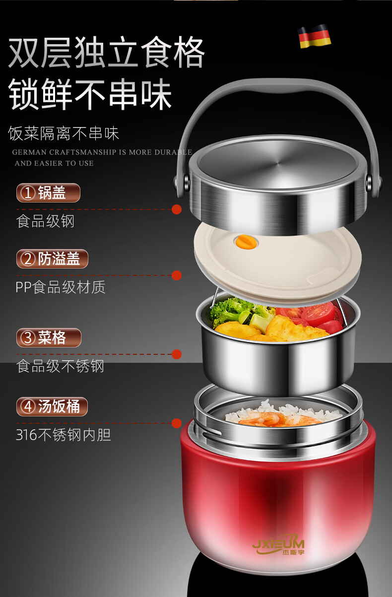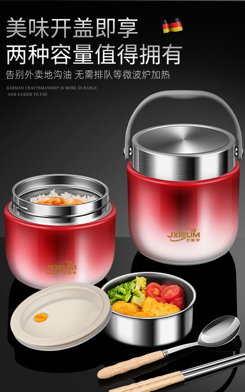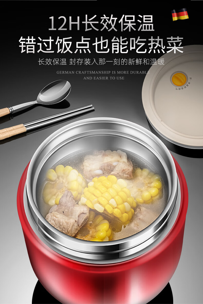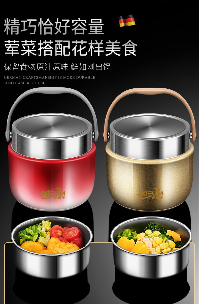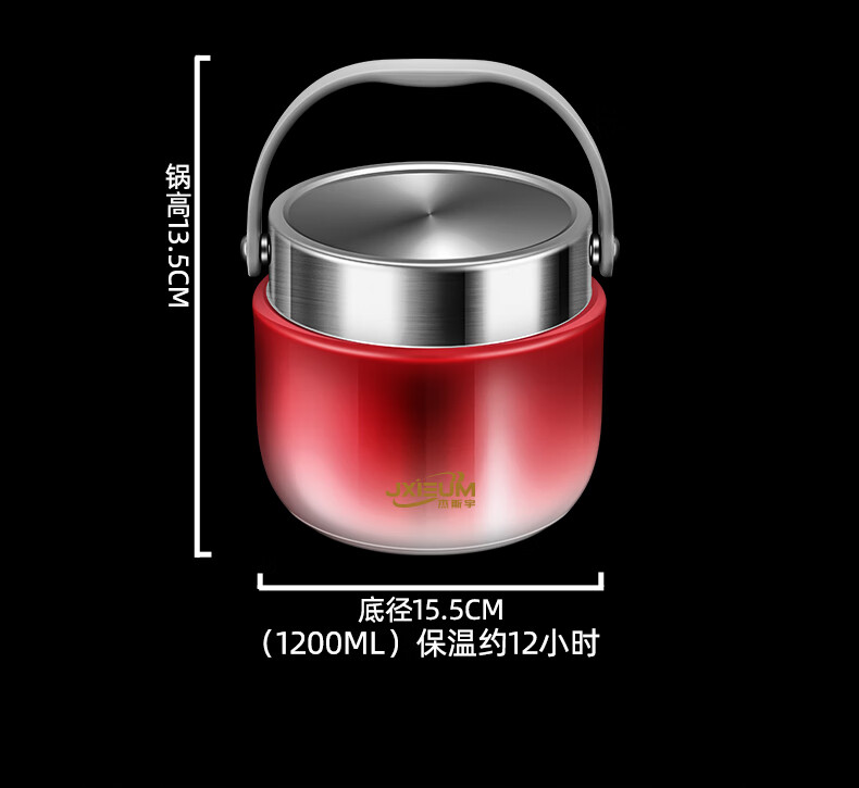 SUPOR 2025 New Vacuum Insulated Lunch Box 24-Hour Extra Long Double-layered Bucket for Office Workers to Bring Rice Stainless Steel Soup Bowl 1.2L Hongmeng Gold 316 Liner