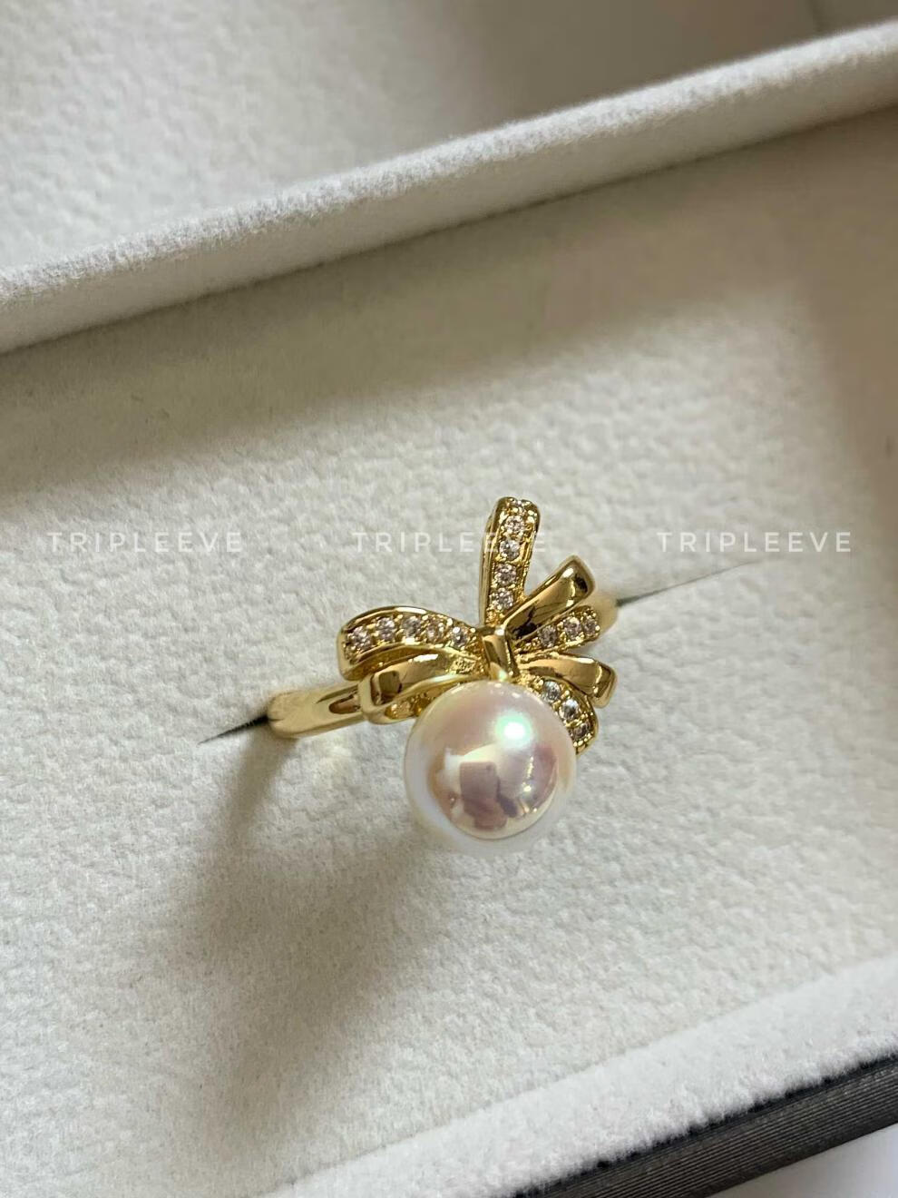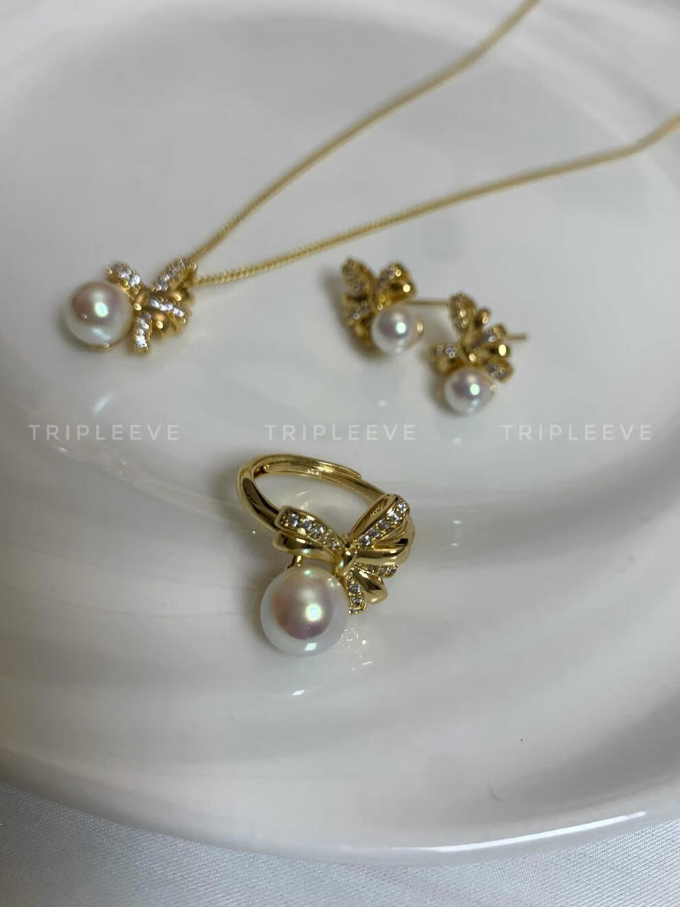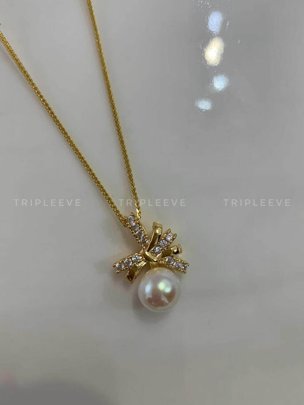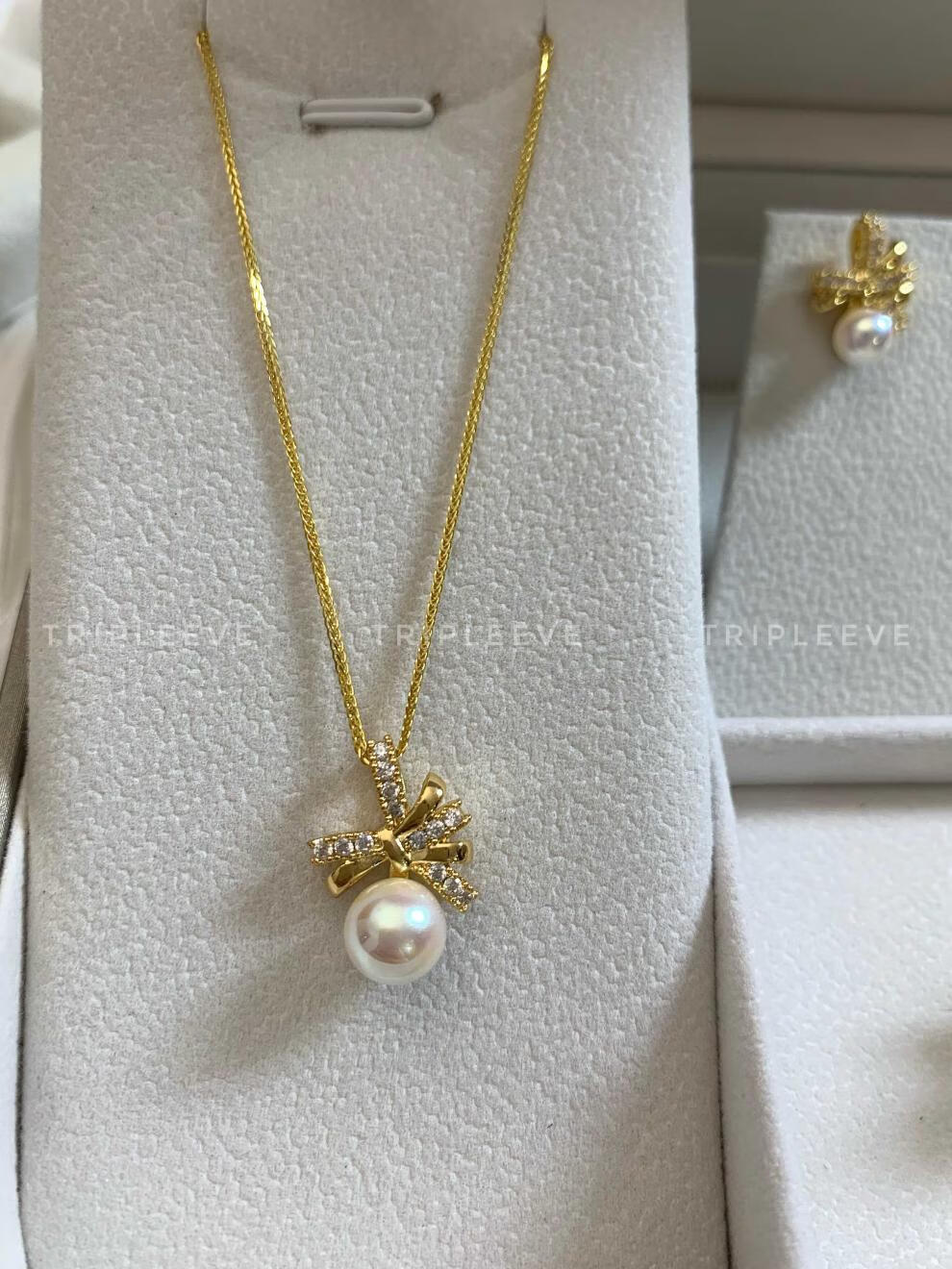 Fat Donglai quality akoya pearl pendant ribbon dance goddess Zhen Duoma M family bow necklace gold titanium steel Chopard chain D16