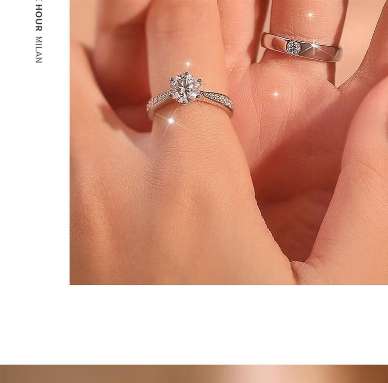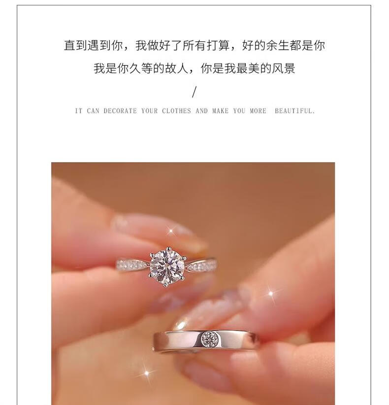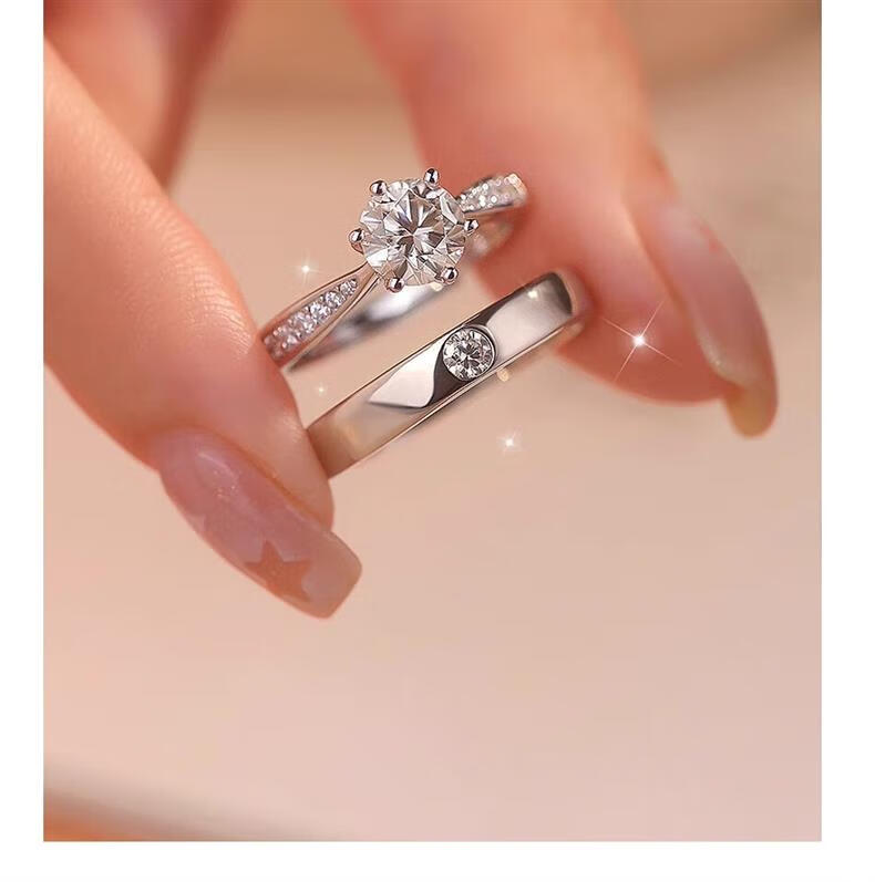 PT950 platinum classic six-claw diamond ring for women, light luxury platinum wedding engagement ring gift, single row women's ring with main stone 1 carat + men's ring - light luxury style