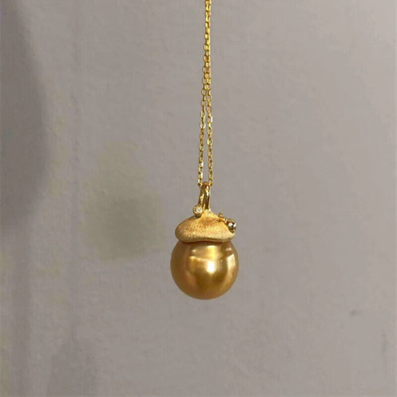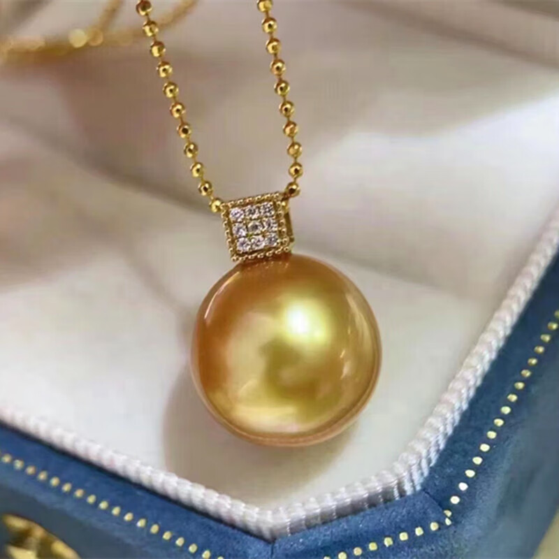 Golden pearl pendant South Sea mother-of-pearl imitation pearl thick gold tea 16mm perfect round bright light pendant with tea gold color 14mm No. 2