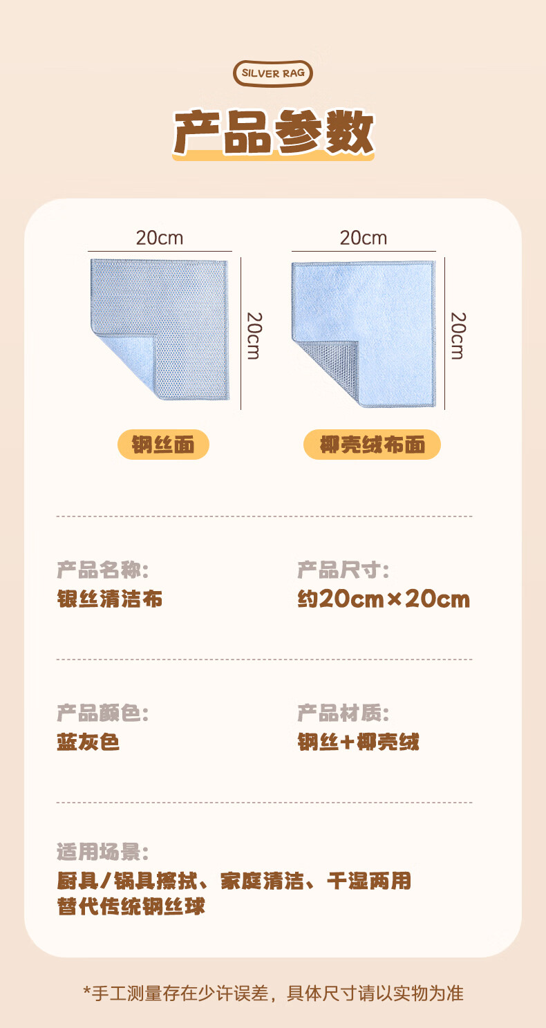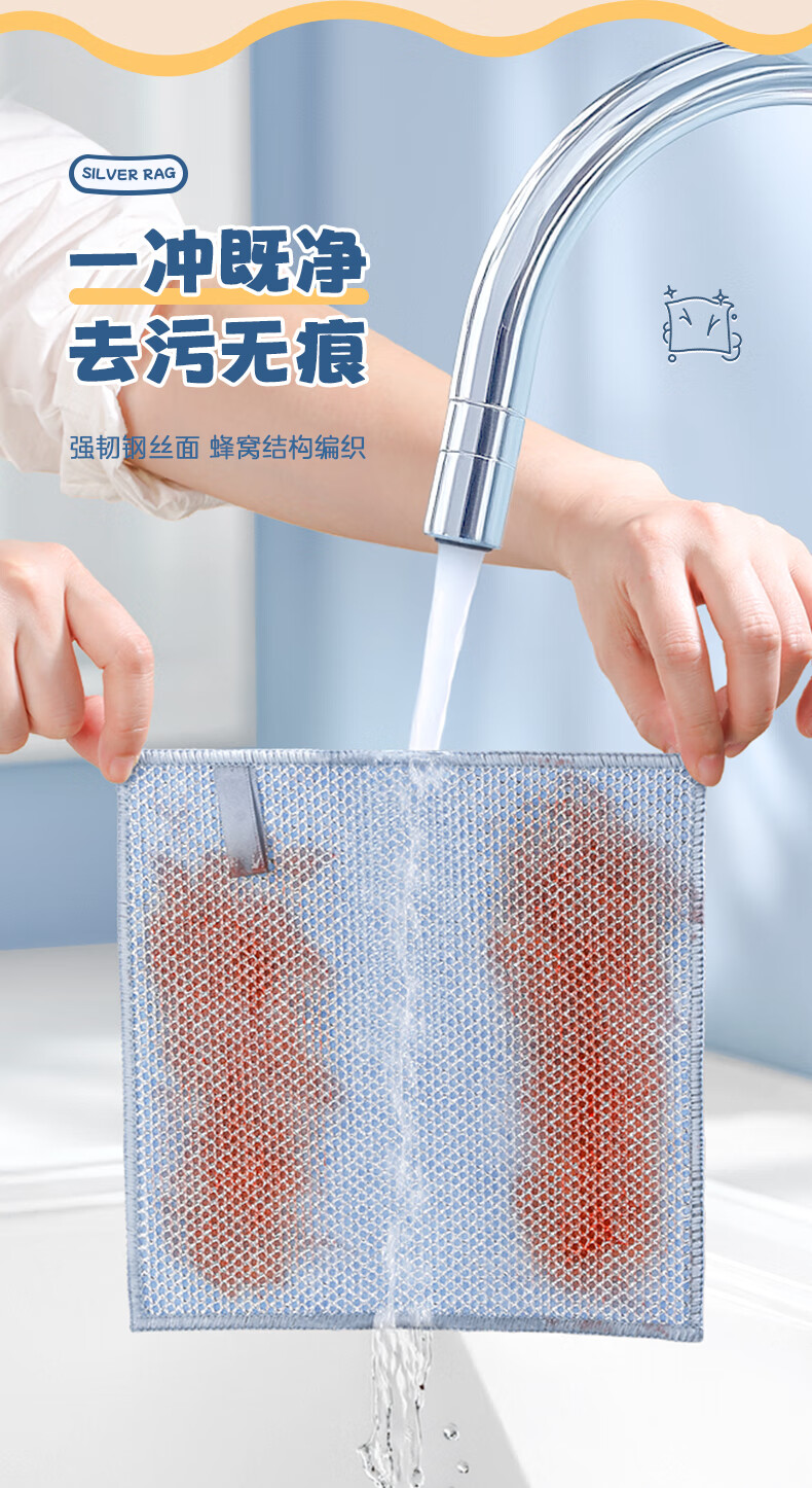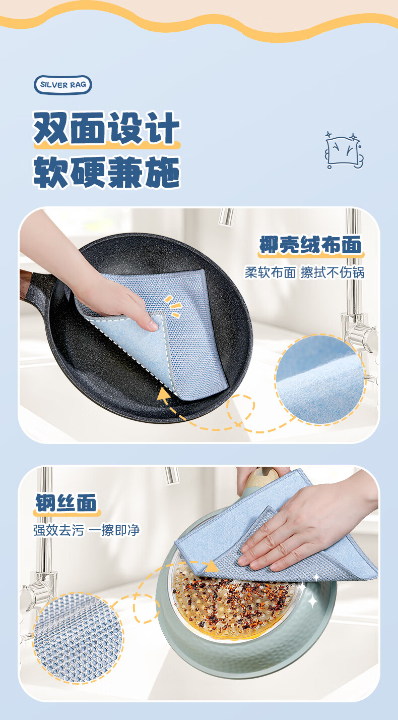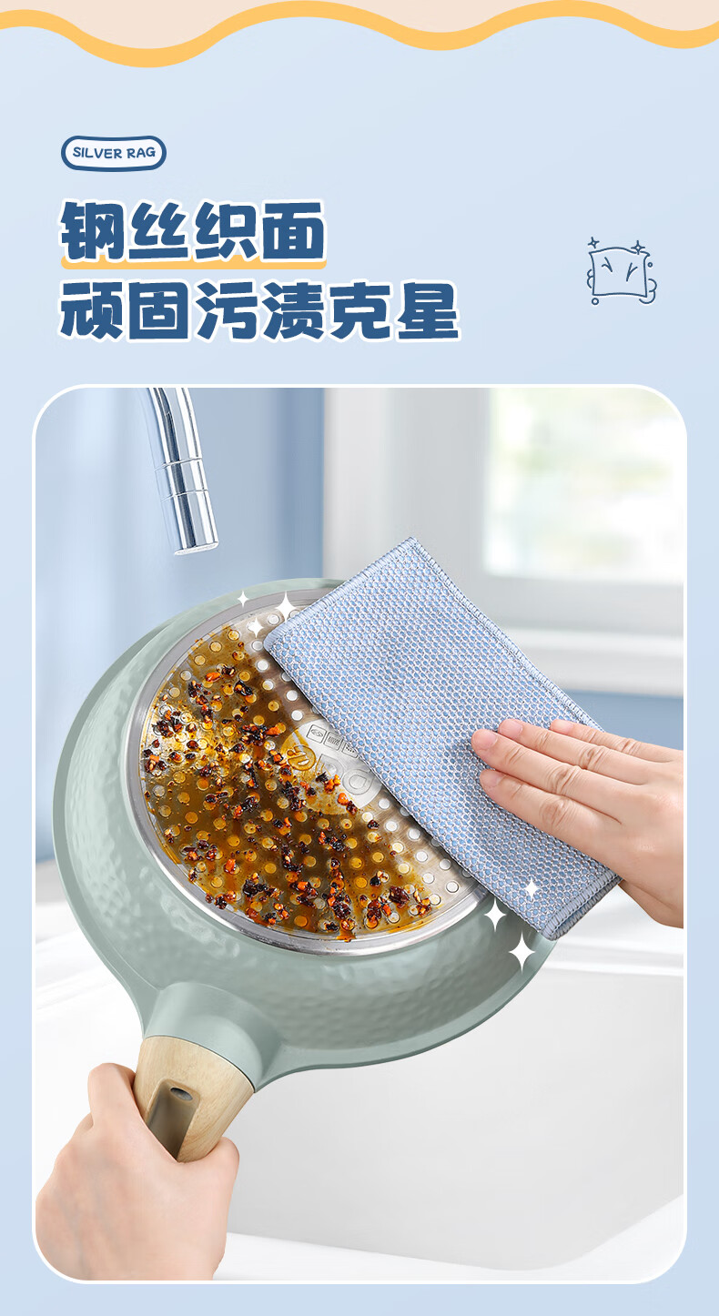 Lixiangwu double-sided steel wire dishcloth, household silver wire dishcloth, kitchen scrubbing pot and dishwashing artifact, scouring pad instead of steel wire ball, 9 pack, coconut shell velvet + coral velvet + fine fiber
