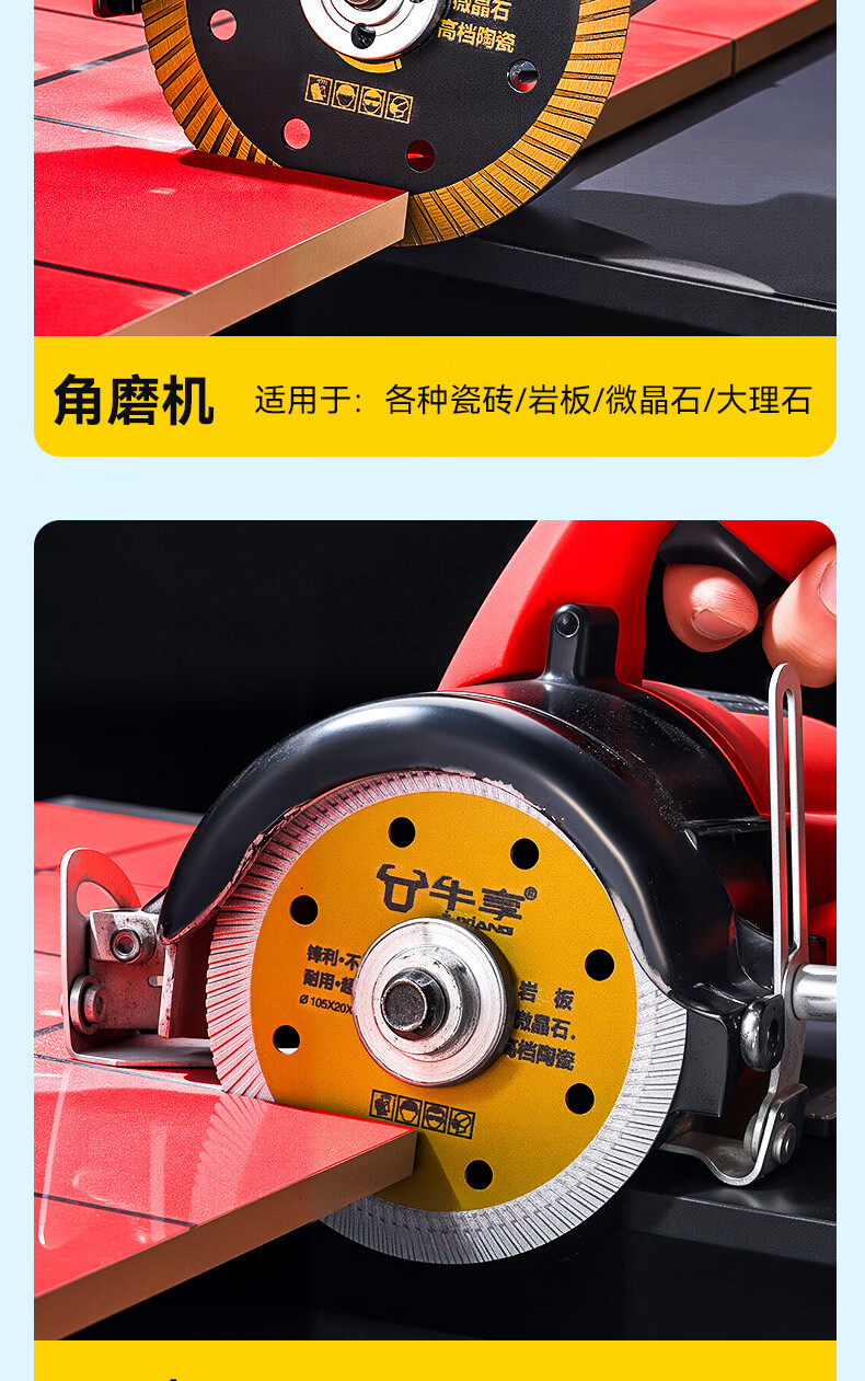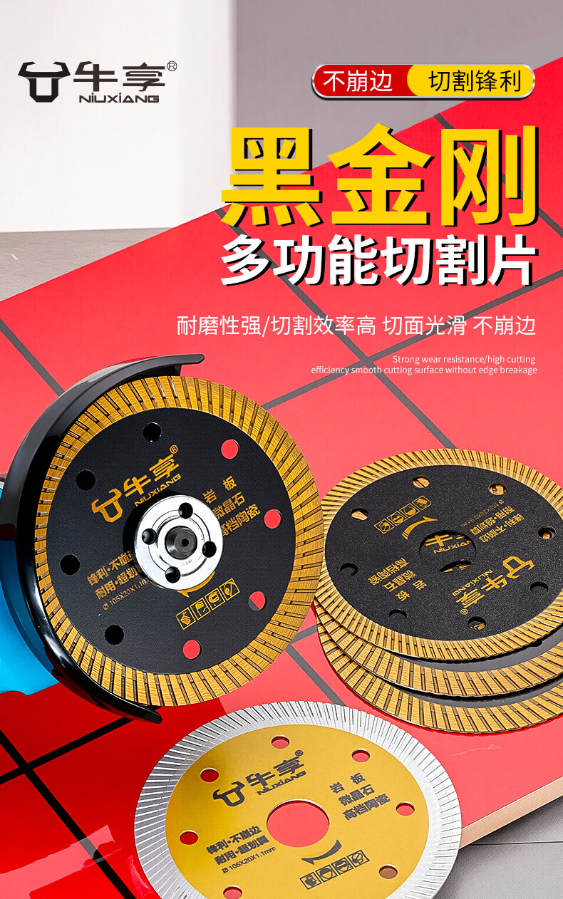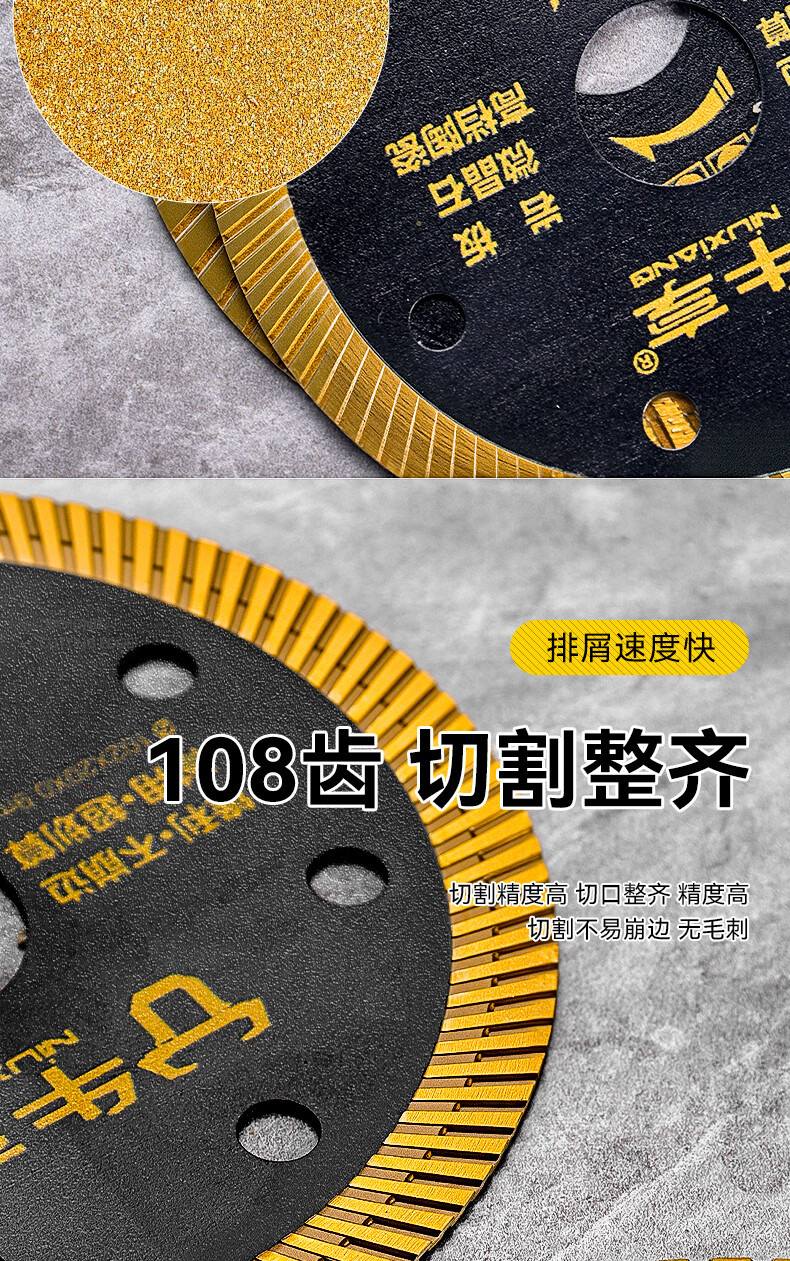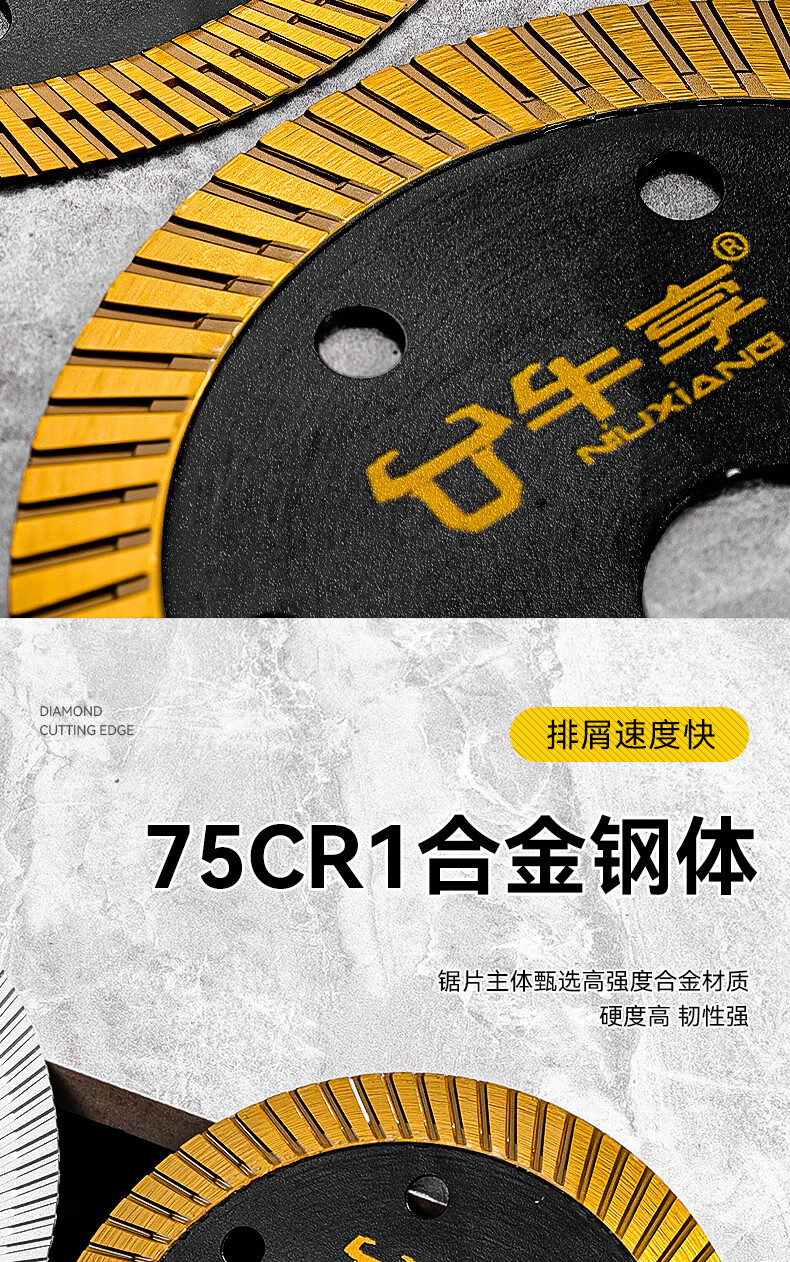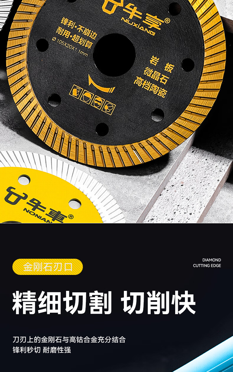 Niuxiang black diamond ceramic tile cutting piece ceramic marble rock plate vitrified tile microcrystalline stone non-collapse edge angle grinder saw blade hard multi-functional cutting piece--105*20*1.1 medium corrugation