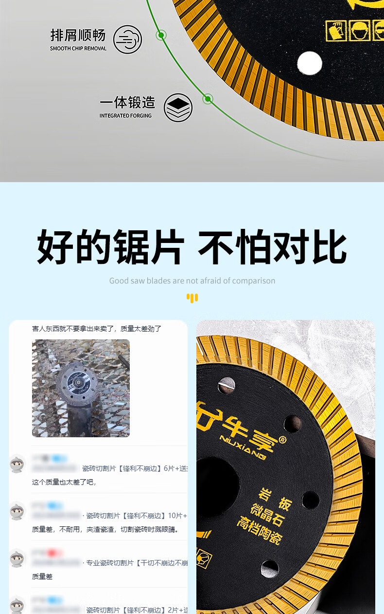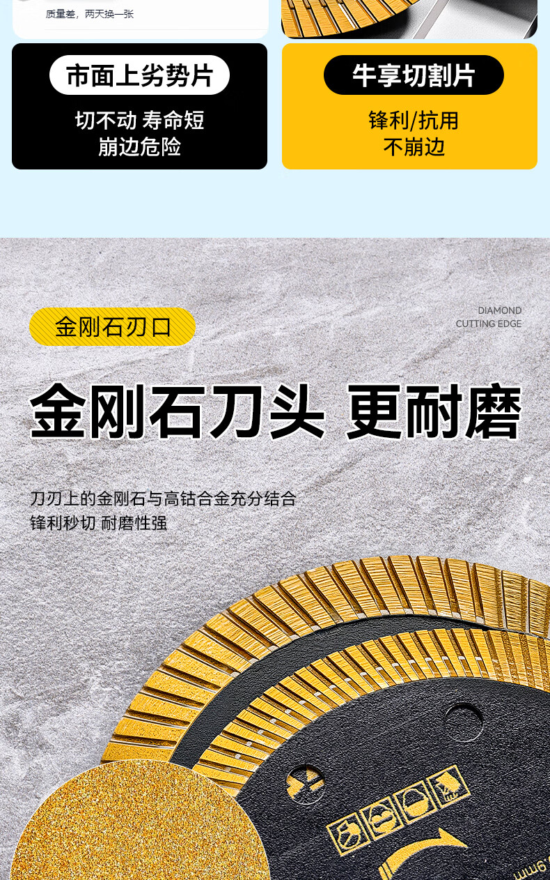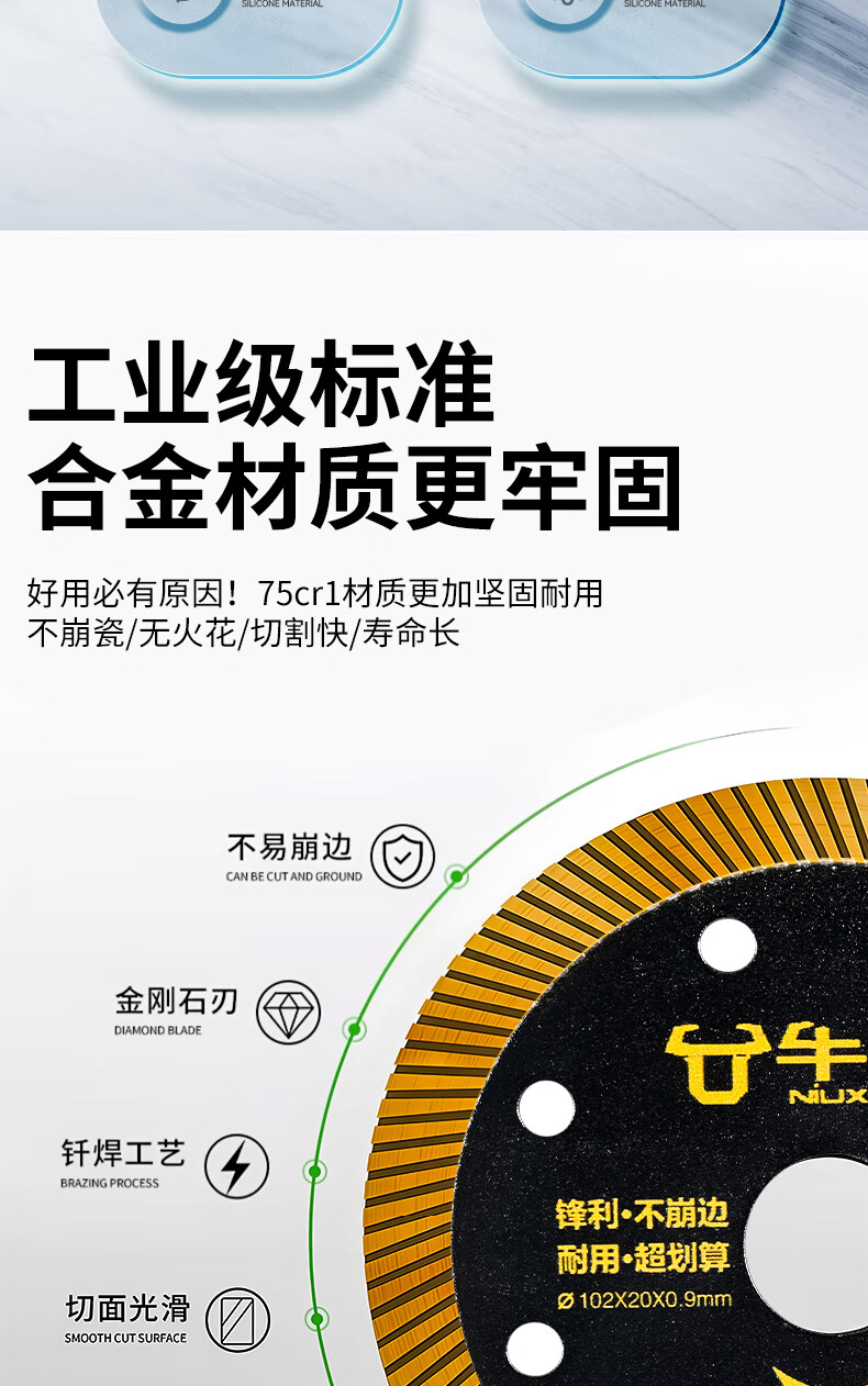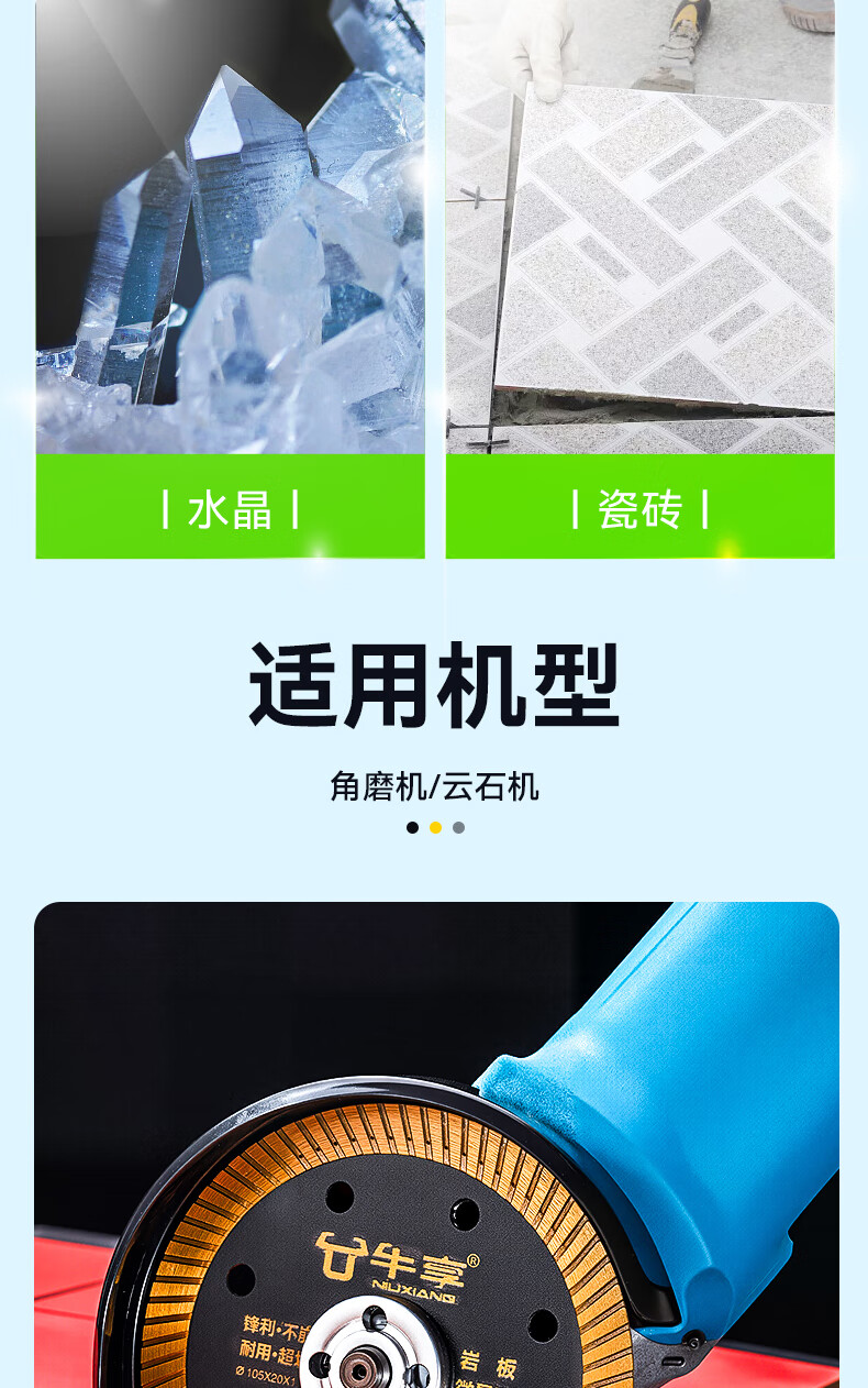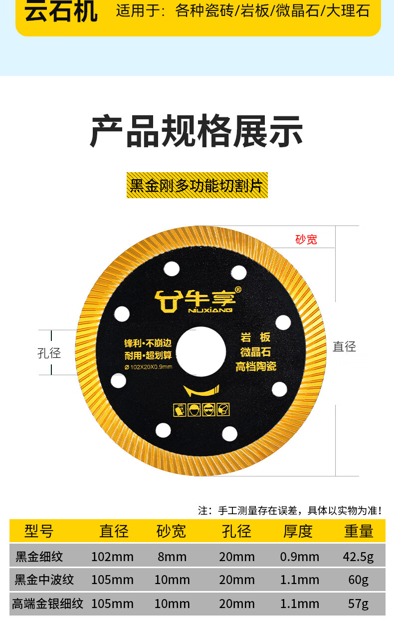 Niuxiang black diamond ceramic tile cutting piece ceramic marble rock plate vitrified tile microcrystalline stone non-collapse edge angle grinder saw blade hard multi-functional cutting piece--105*20*1.1 medium corrugation