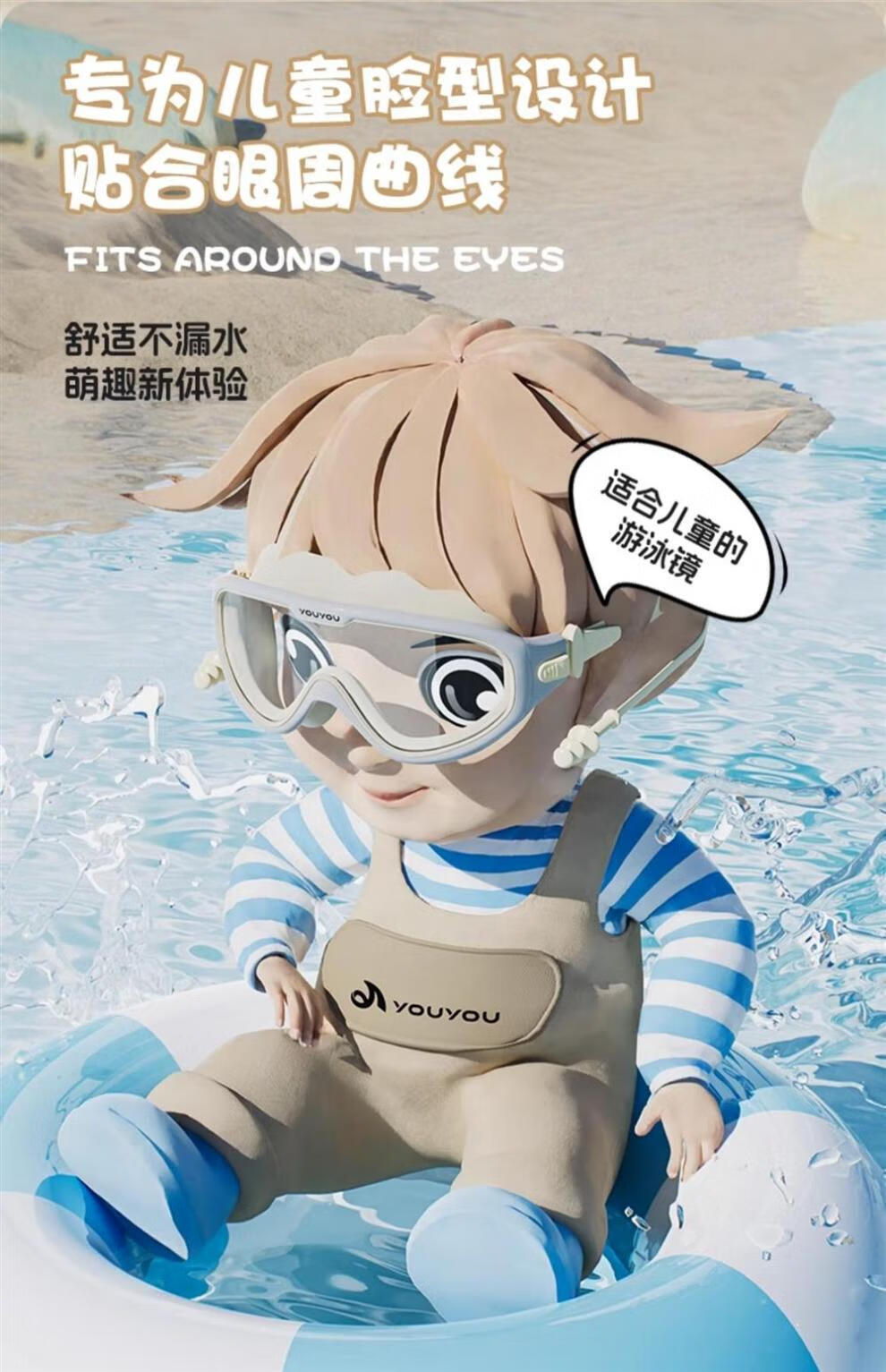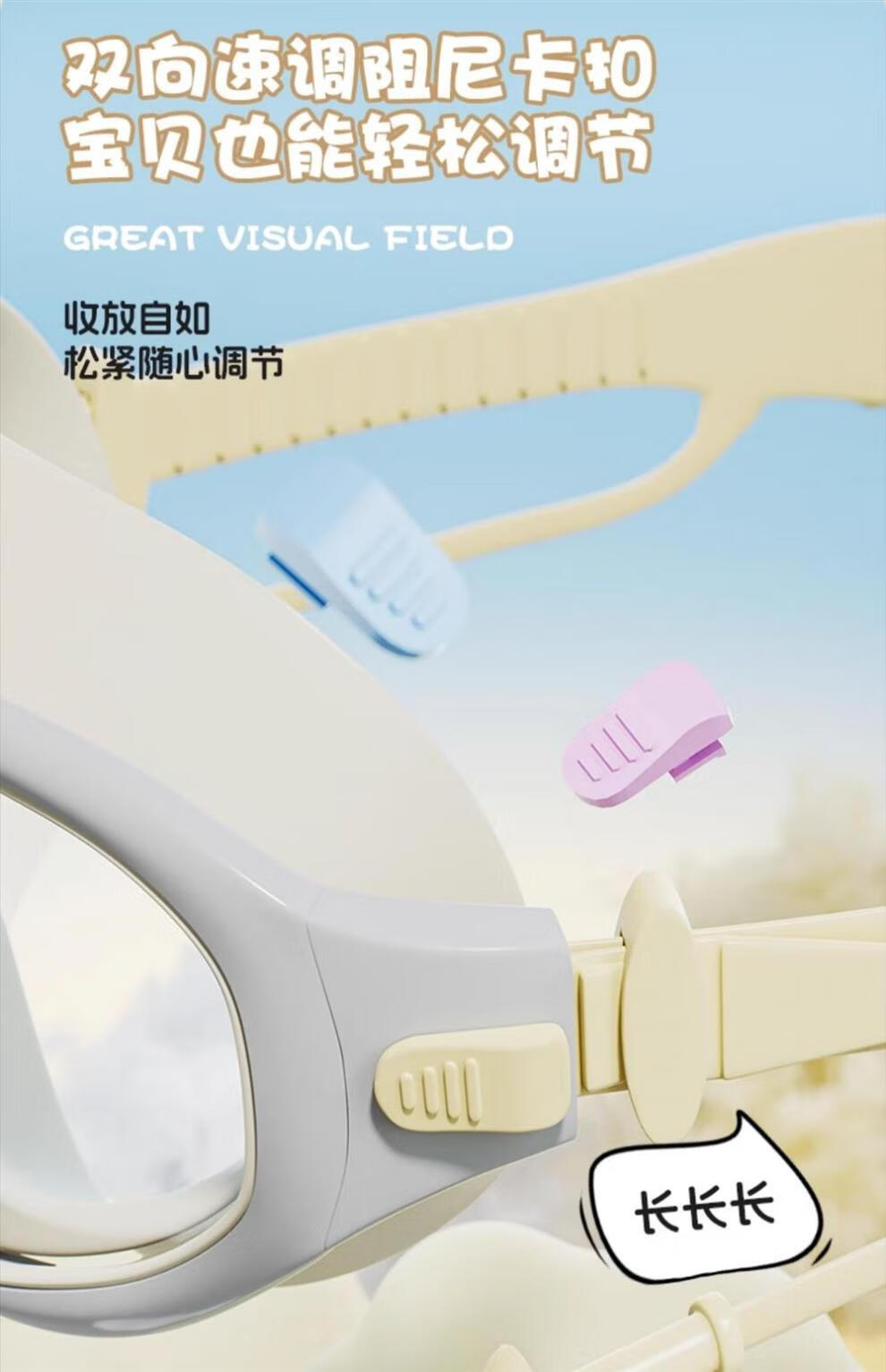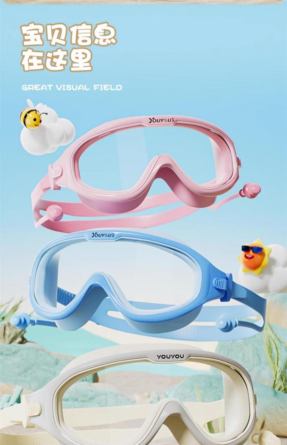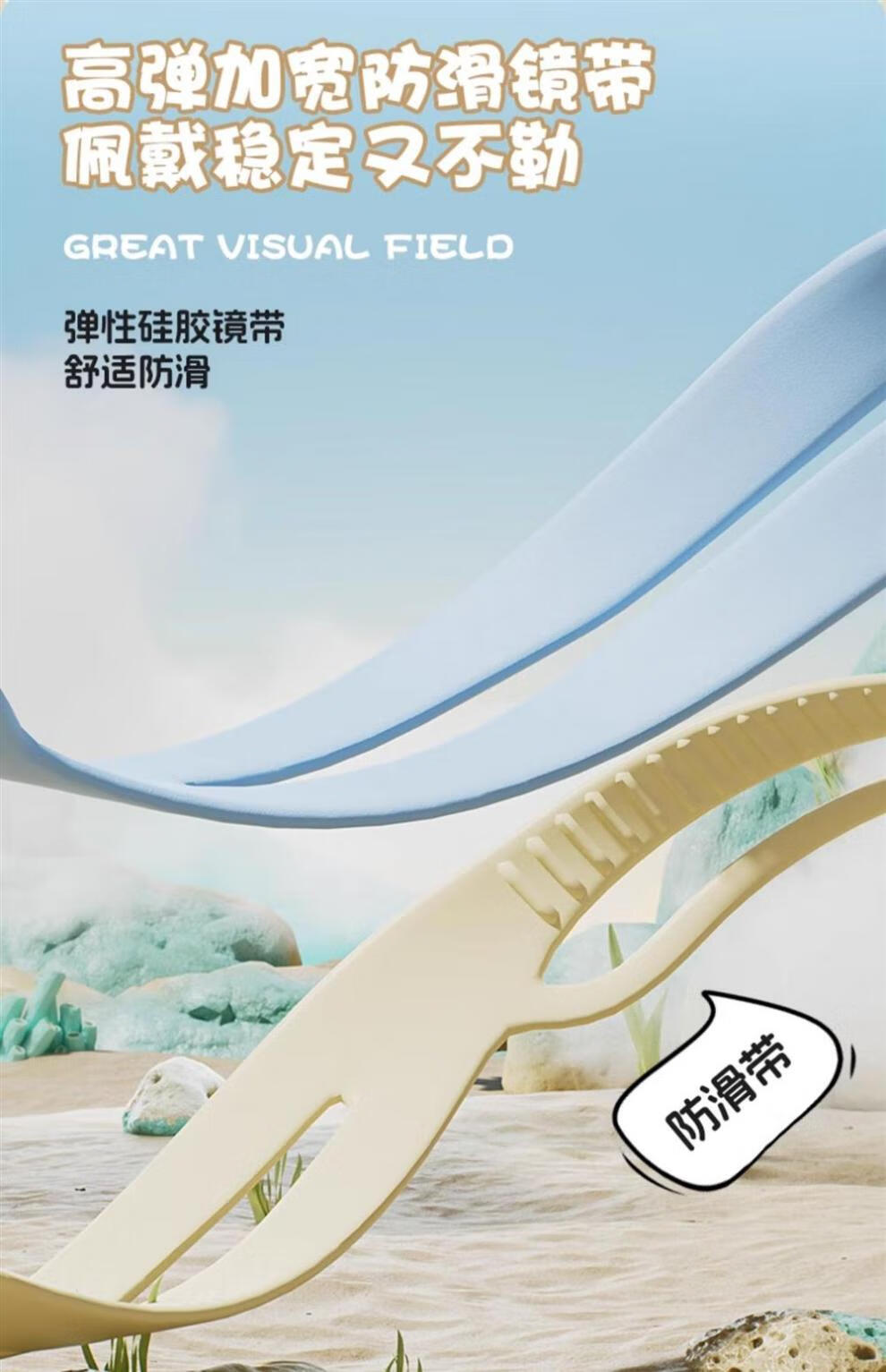JCZS children's swimming goggles and swimming caps HD waterproof and anti-fog large-frame swimming goggles for boys and girls diving set equipment Almond rice silicone cap set tight fit main picture flat light