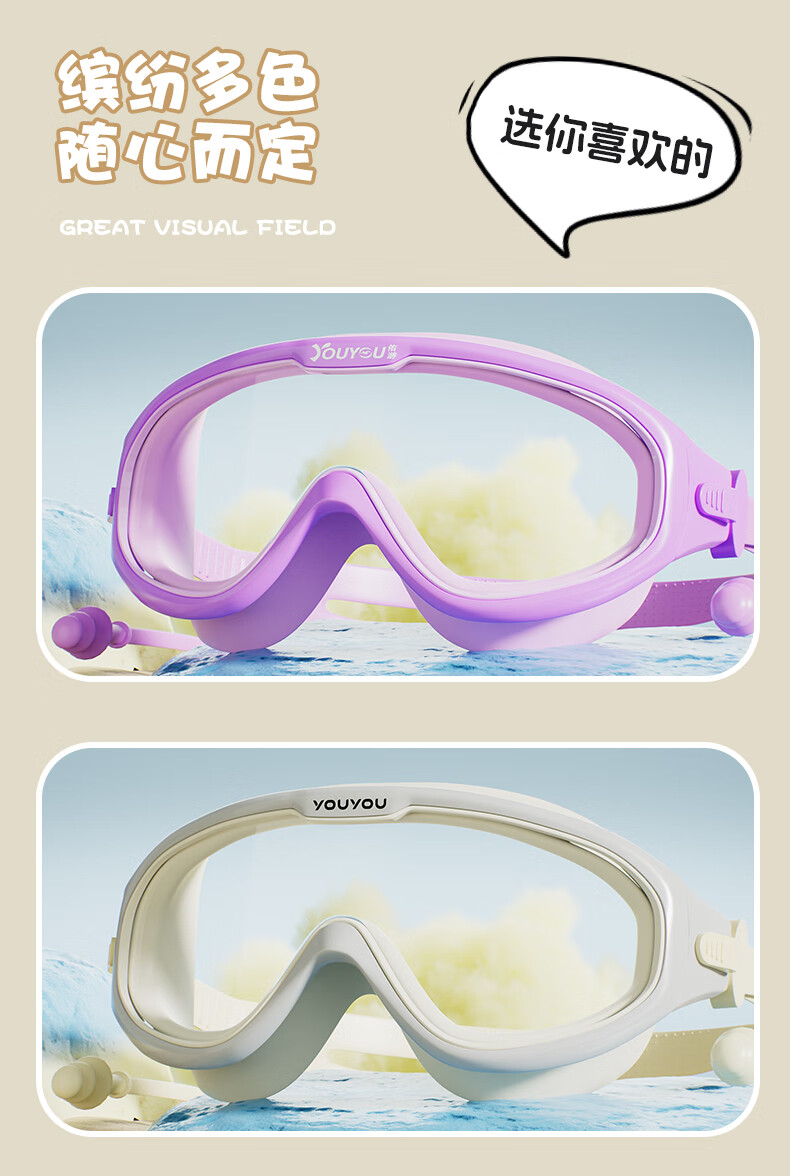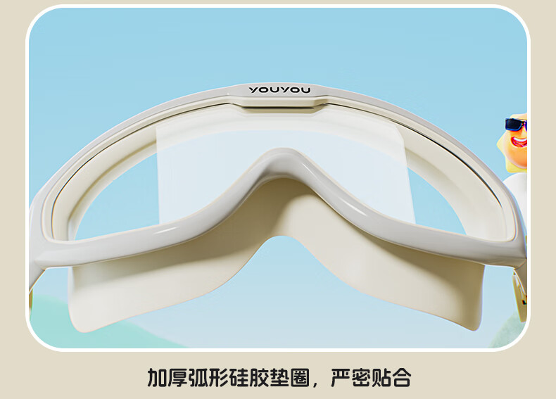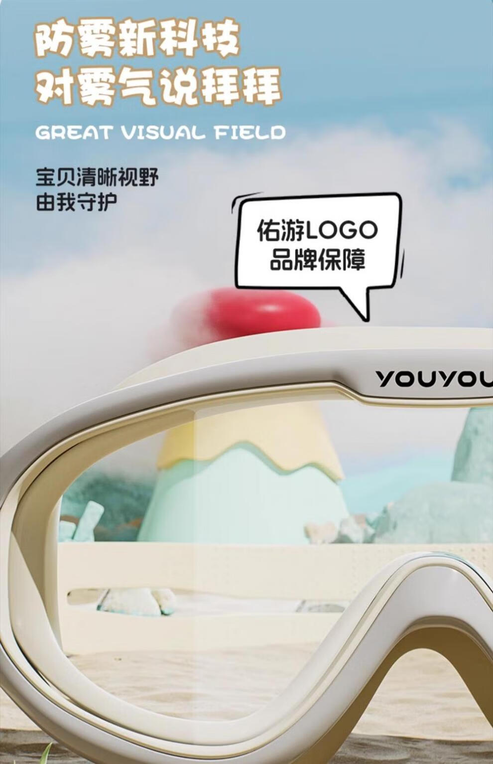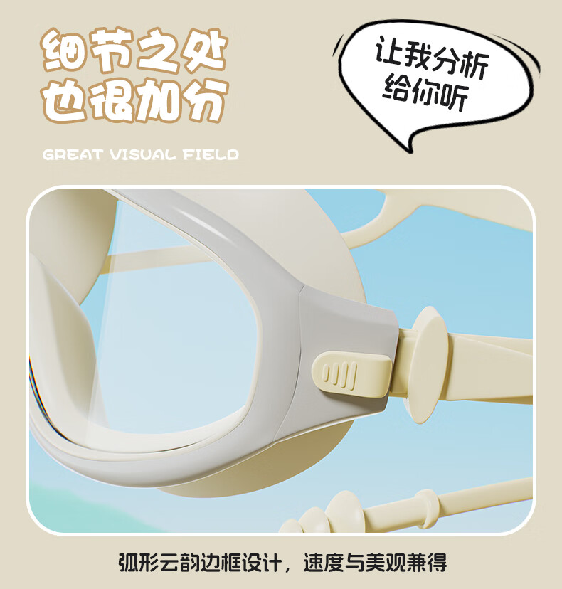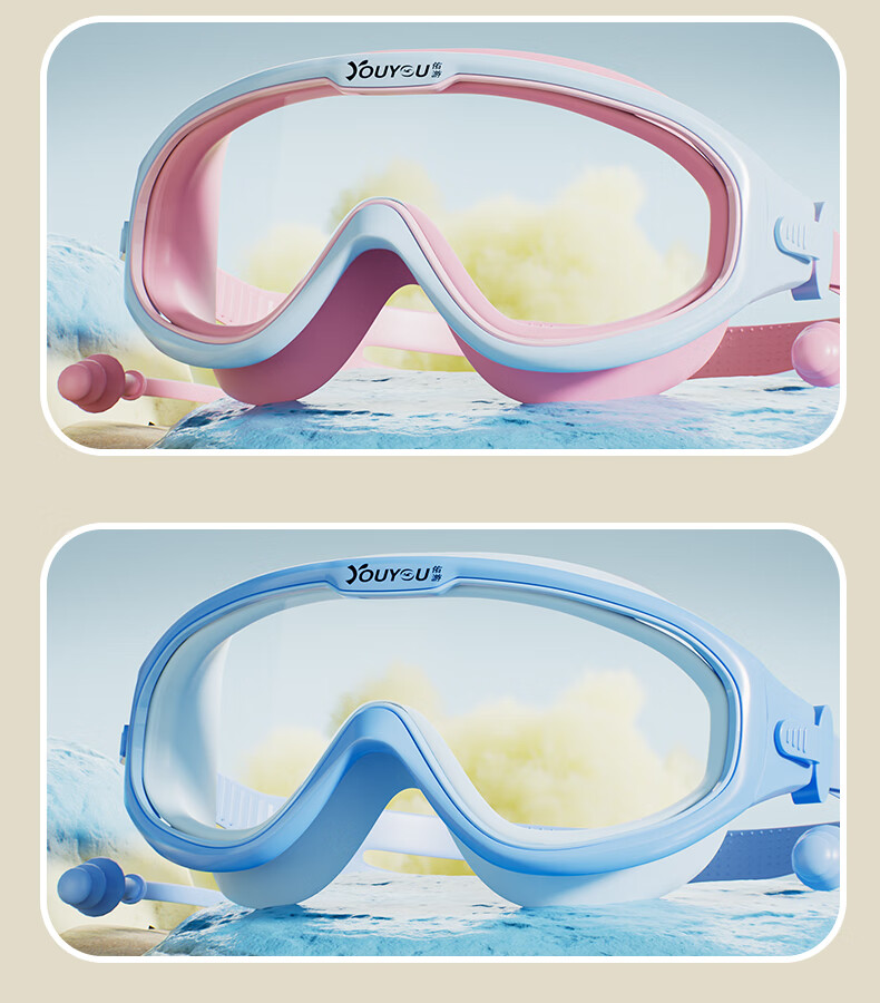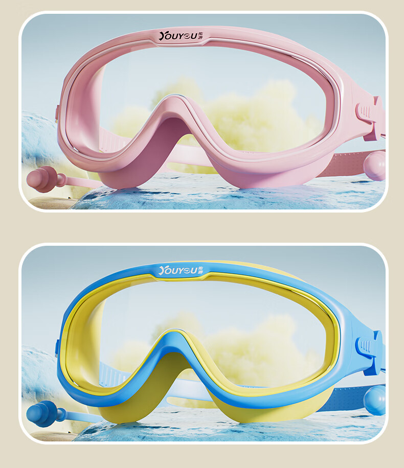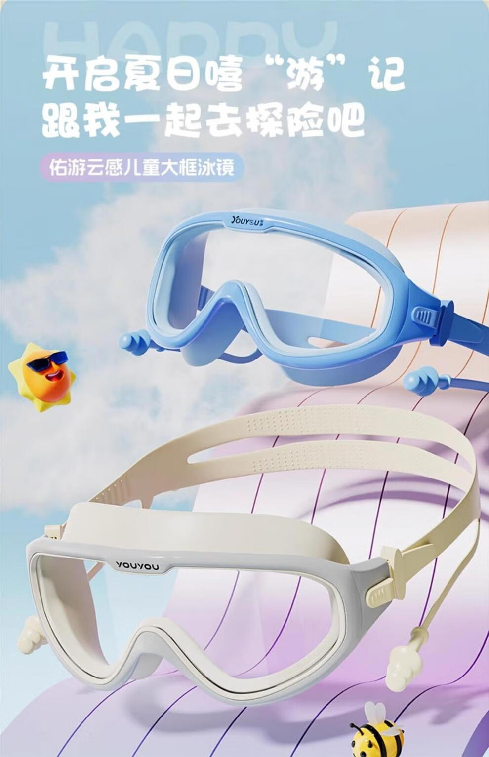 JCZS children's swimming goggles and swimming caps HD waterproof and anti-fog large-frame swimming goggles for boys and girls diving set equipment Almond rice silicone cap set tight fit main picture flat light