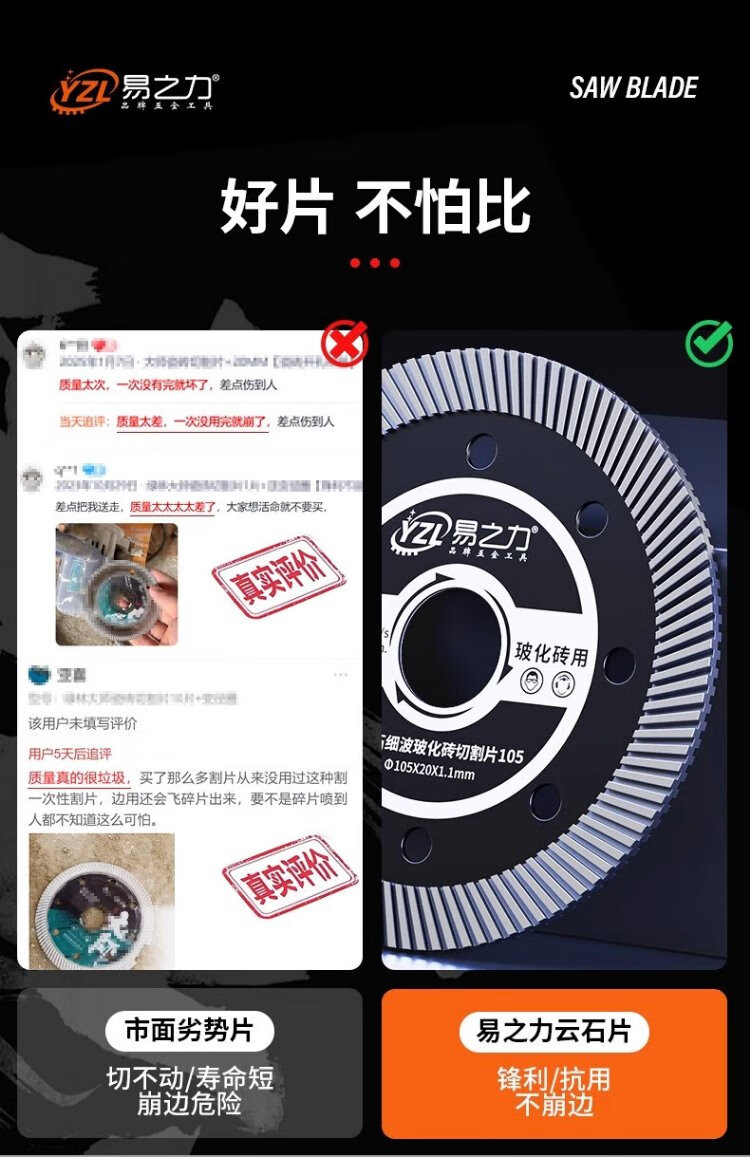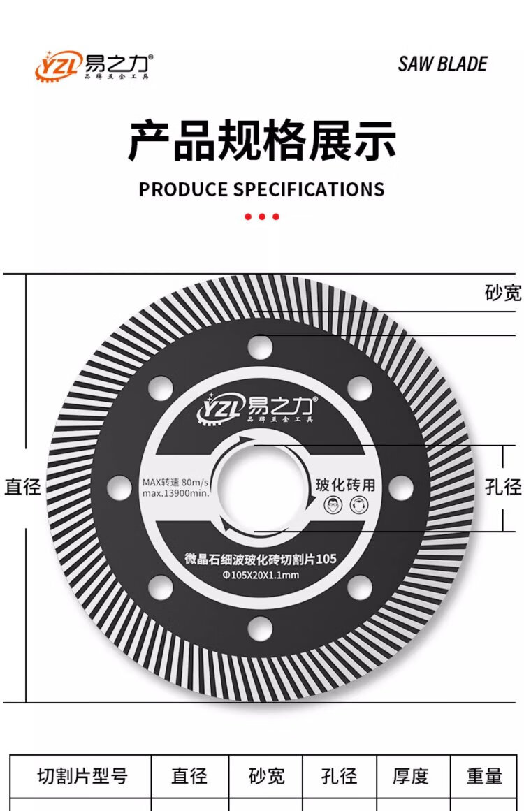 Yizhili Yizhili cutting blade special artifact for ceramic tiles ultra-thin marble marble marble diamond saw blade dry cutting vitrified tiles professional ceramic tile cutting blade 2 pieces free diameter reducing ring