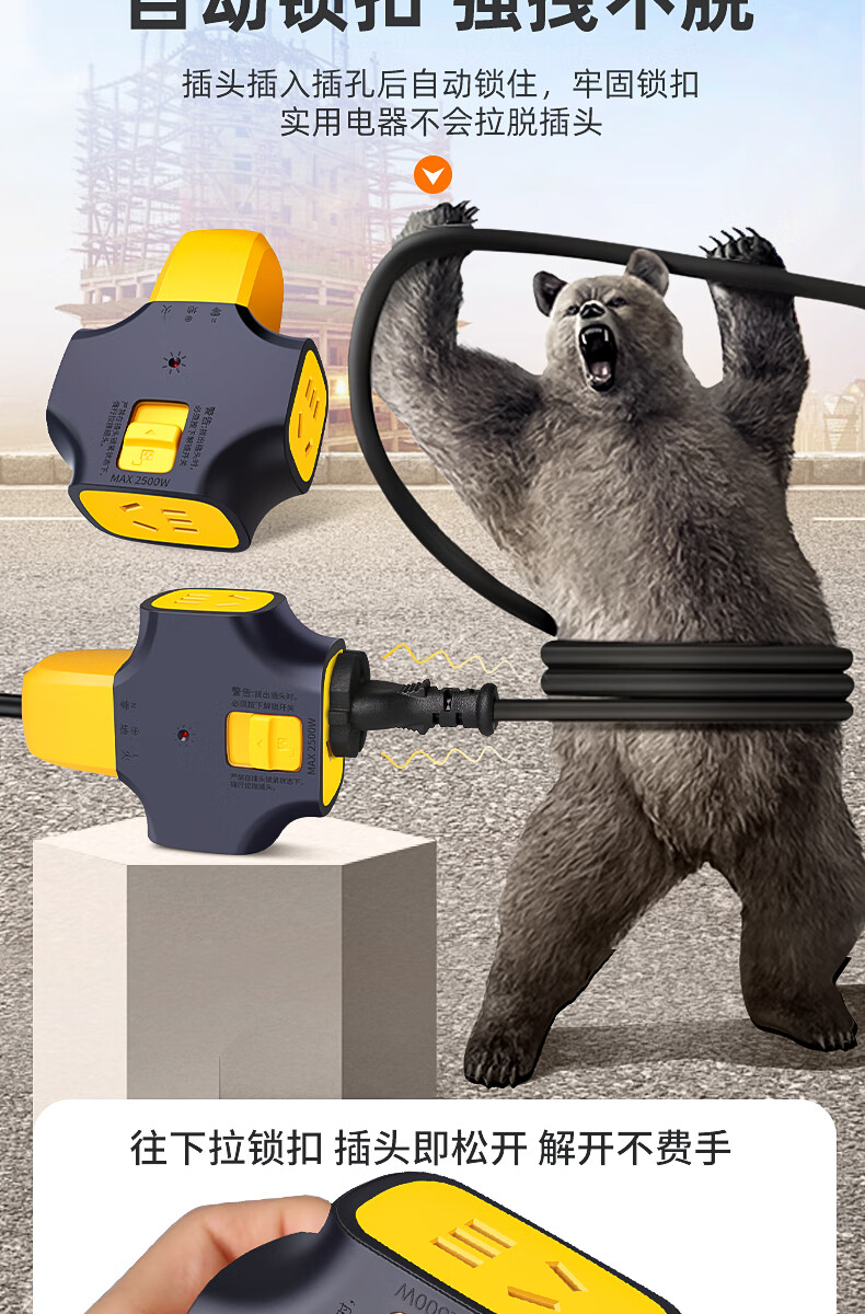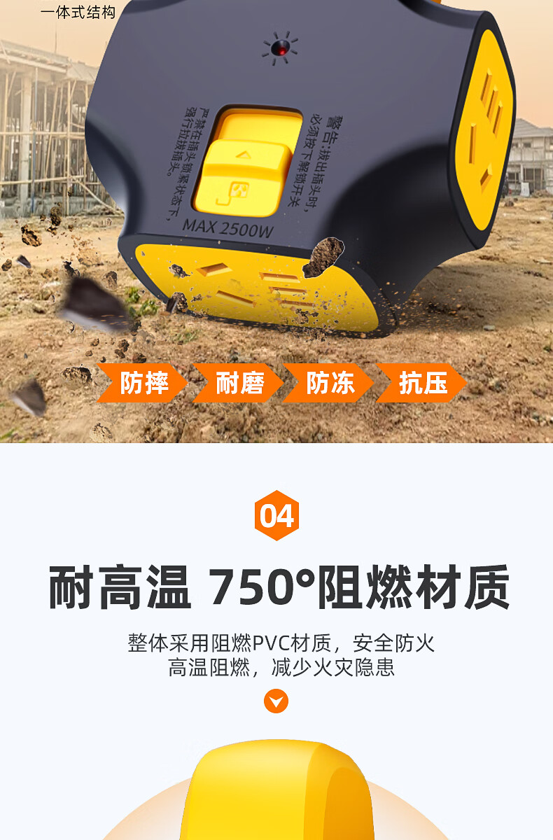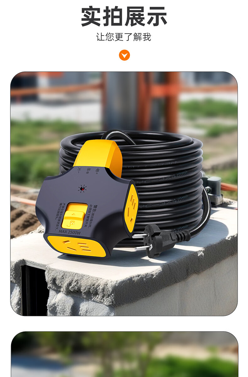 Middle seat outdoor lockable anti-fall high-power socket extension cord floor drag plug strip construction site explosion-proof drag strip plug pull-proof socket with cord-4 square meters 365 days of use can be returned and replaced 50 meters