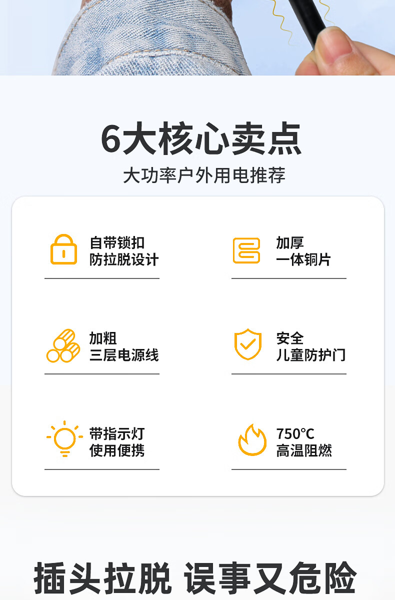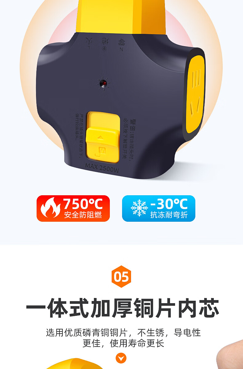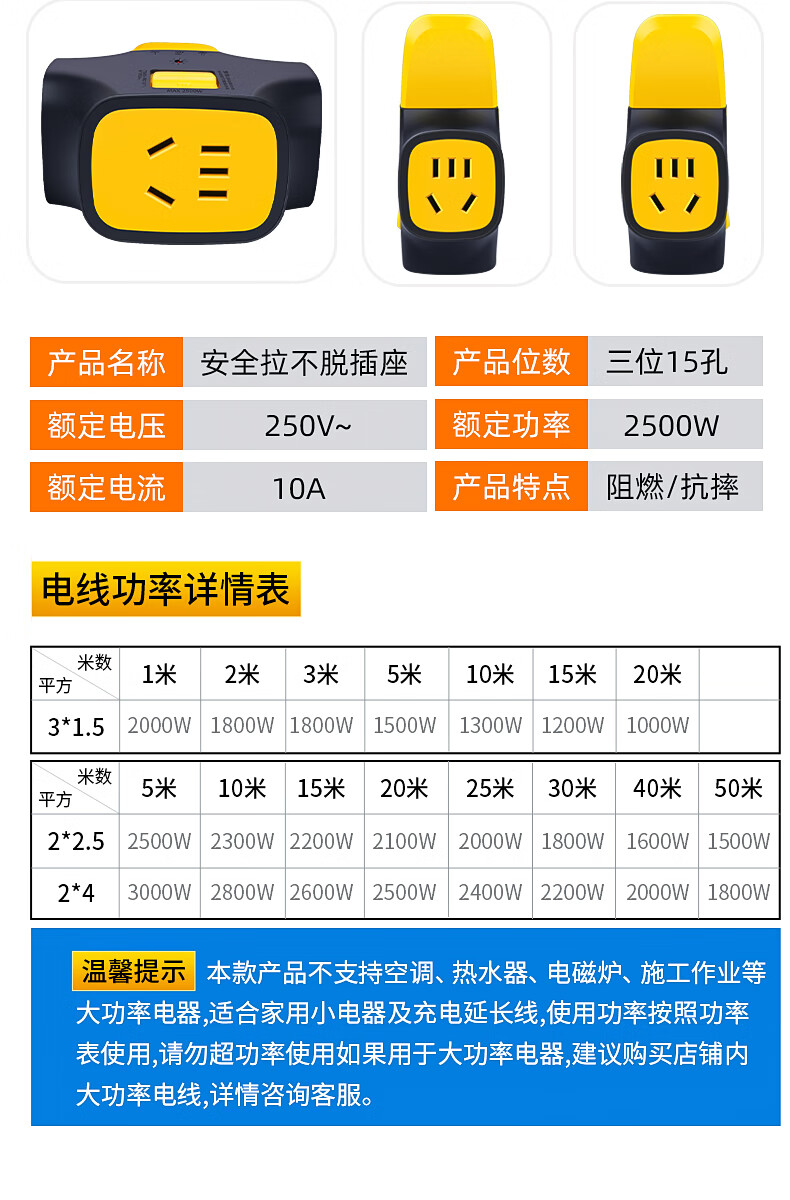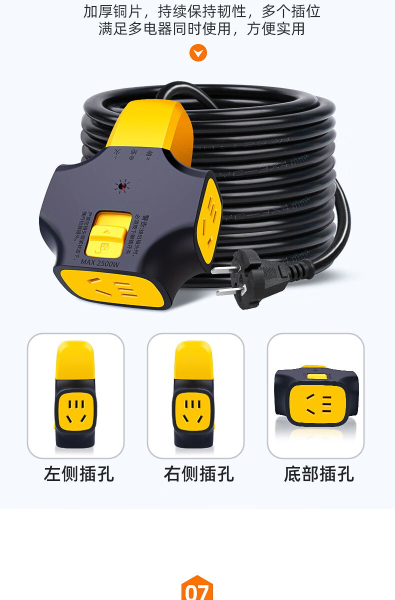 Middle seat outdoor lockable anti-fall high-power socket extension cord floor drag plug strip construction site explosion-proof drag strip plug pull-proof socket with cord-4 square meters 365 days of use can be returned and replaced 50 meters