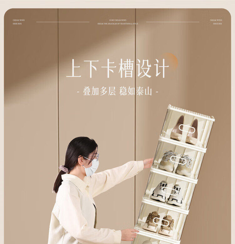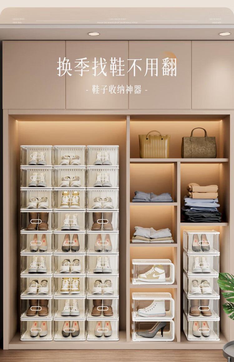Japanese transparent shoe box, shoe storage artifact, space-saving, thickened shoe rack, shoe cabinet, acrylic doorway for shoes, medium size, within 45 yards, 5 pieces of Love Horse Orange, 21x32x13cm