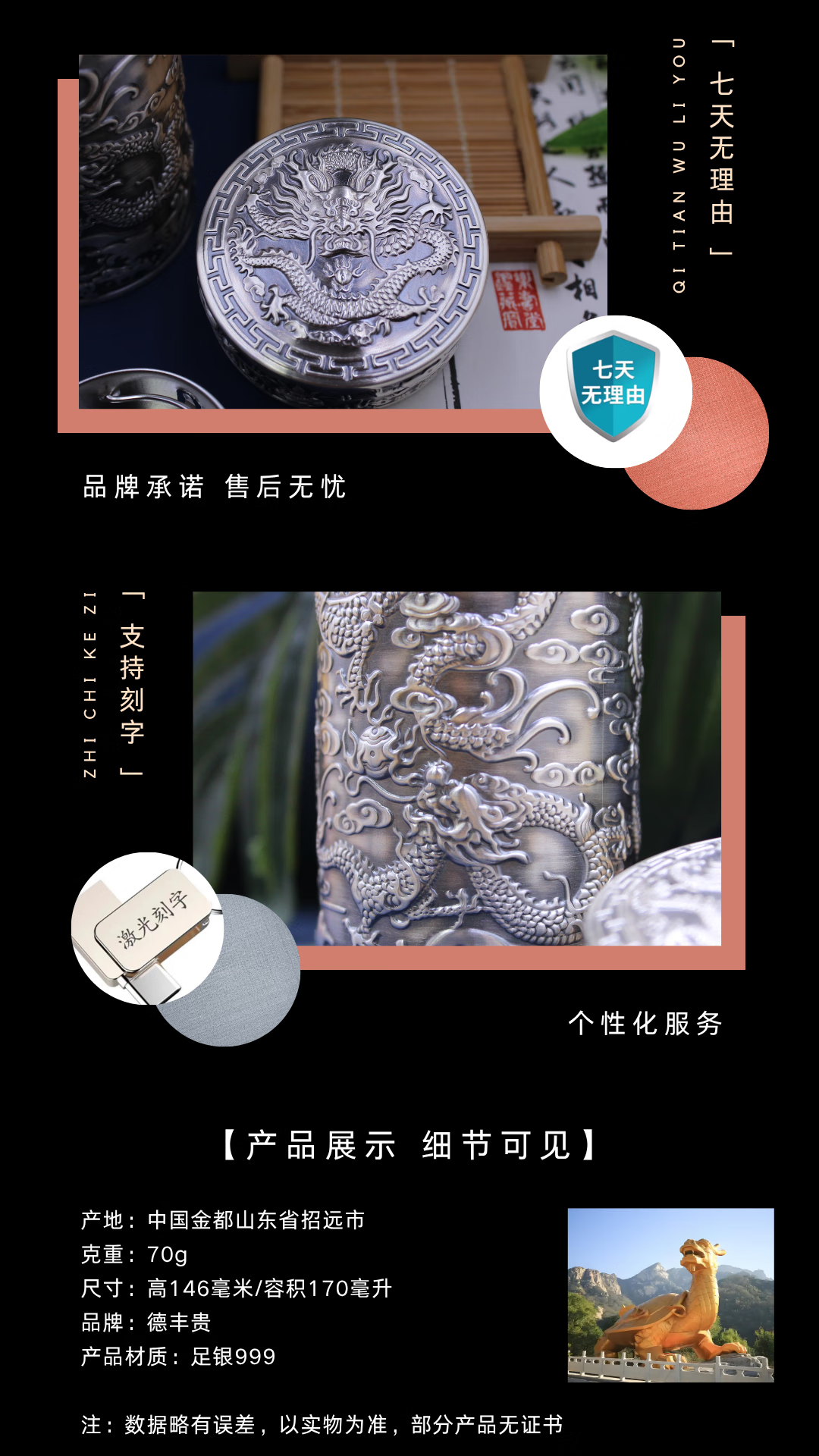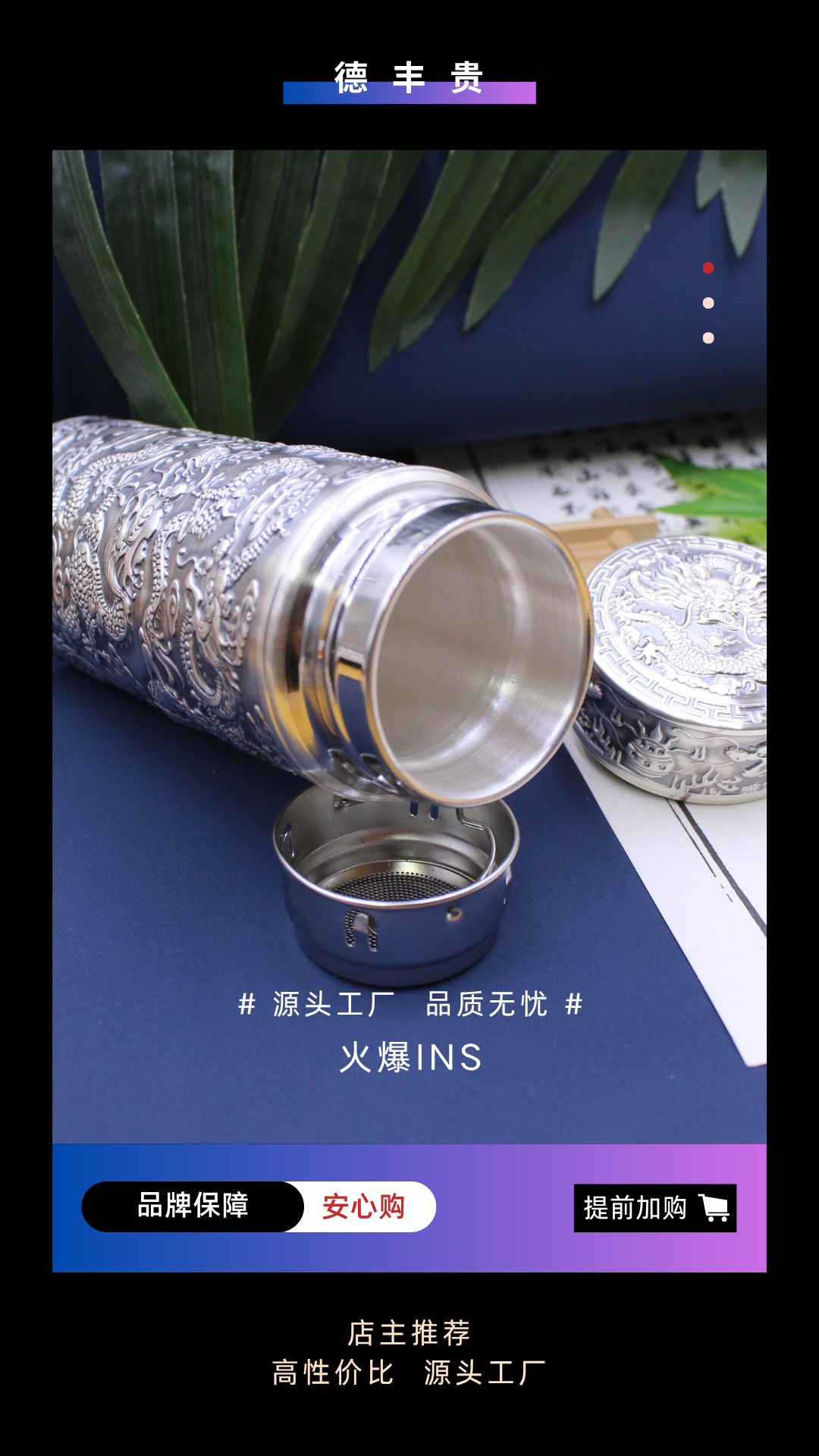 Defenggui brand genuine Kowloon Xianrui pure silver thermos cup pure silver 999 silver water cup high-end gift 70g Kowloon Xianrui thermos cup