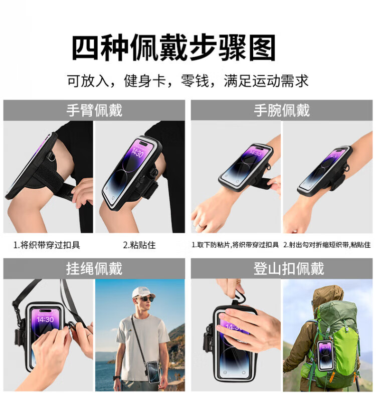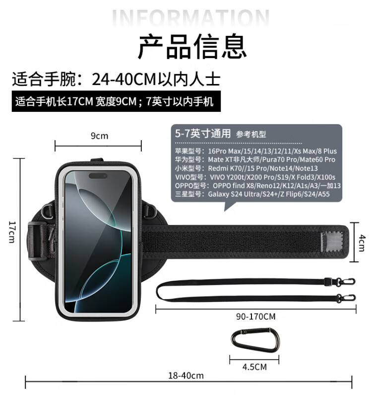OEING running arm bag for men and women outdoor sports fitness equipment Apple Huawei 7-inch universal mobile phone wrist bag crossbody bag classic black 7-inch universal