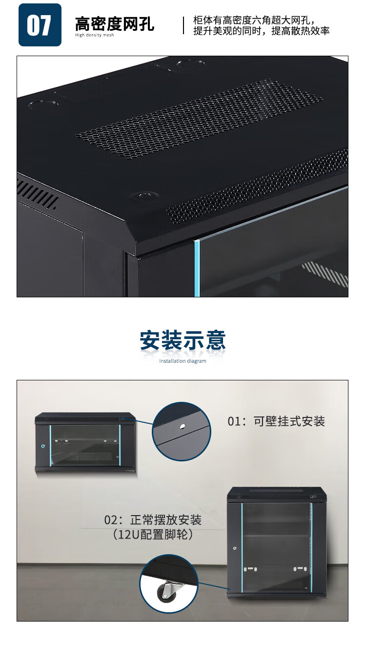 Network cabinet small 6u thickened 4U wall-mounted 9u wall cabinet 12U weak current monitoring equipment box switching cabinet 9U plus 15U thickened and deepened height 800 width 600 depth 600 0x0x0cm