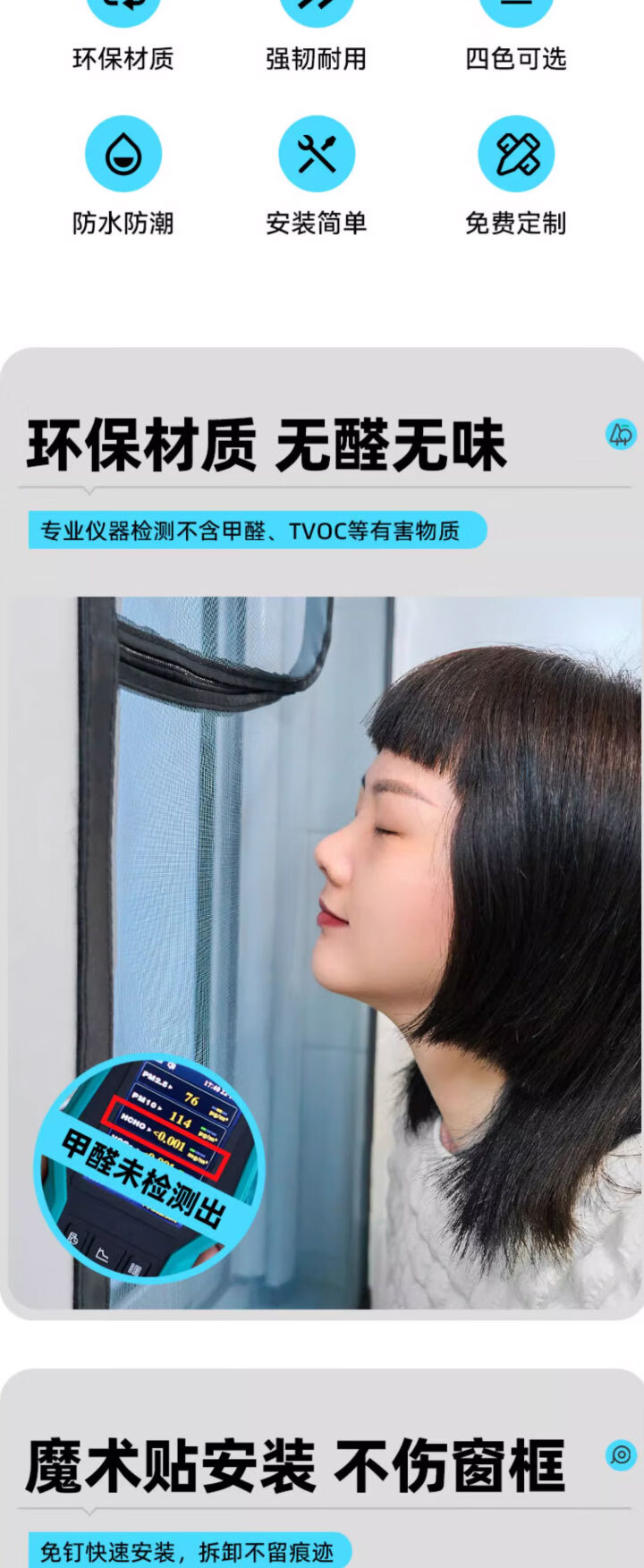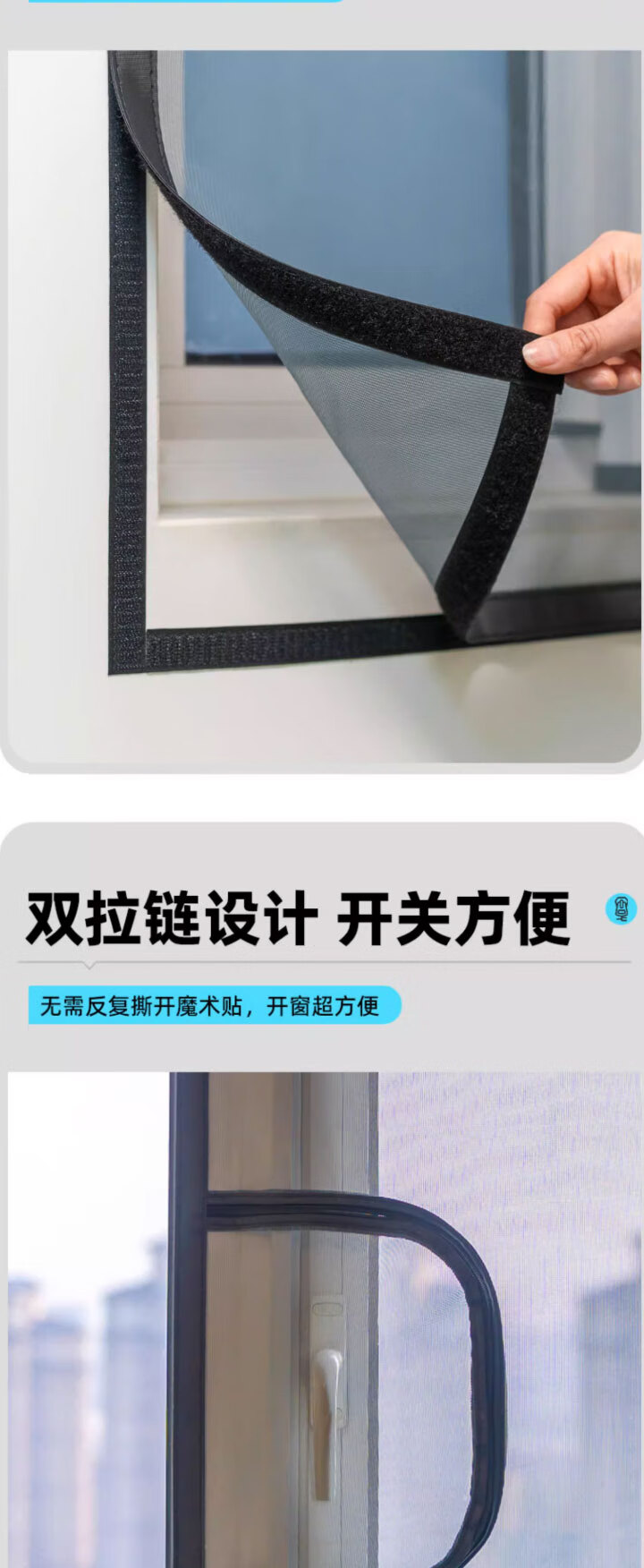 Anti-mosquito screen, self-installed anti-cat Velcro, self-adhesive mosquito net, sliding door curtain, invisible sand window screen, zipper-open hole type, gray gauze and gray edge, width 60*height 120cm