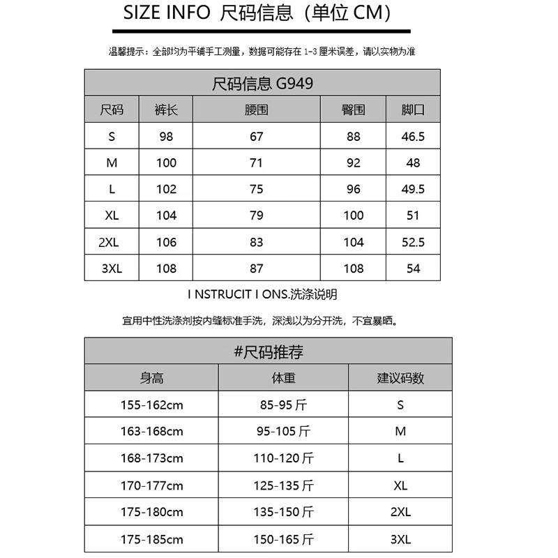 Outseam (cm) 99 cm 101.5 cm 104 cm 106.5 cm 109 cm