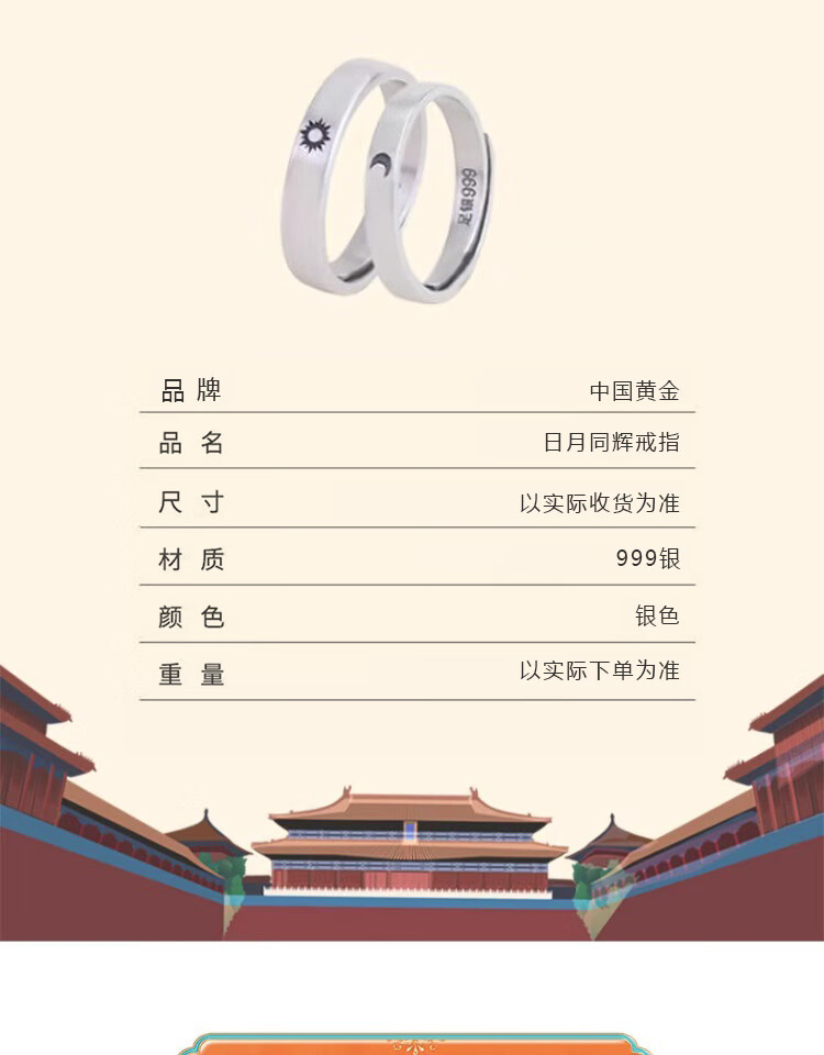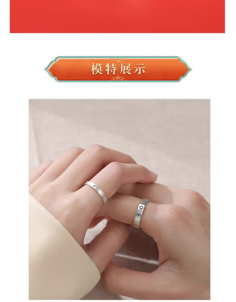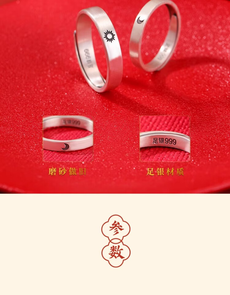 China Gold S999 Silver Sun and Moon Ring Couple Ring Ring Holiday Birthday Gift for Girlfriend and Wife Pure Silver Couple Ring One Pair + Brand Gift Box