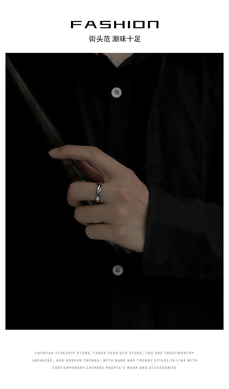 Shenglan retro ring men's trendy single ring niche design men's open adjustable ring cold wind tail ring endless ring open adjustable