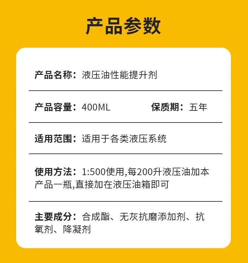 Gongma G brand hydraulic oil performance enhancer extends the life of hydraulic oil and extends anti-wear performance. Hydraulic oil performance enhancer 400ml*1