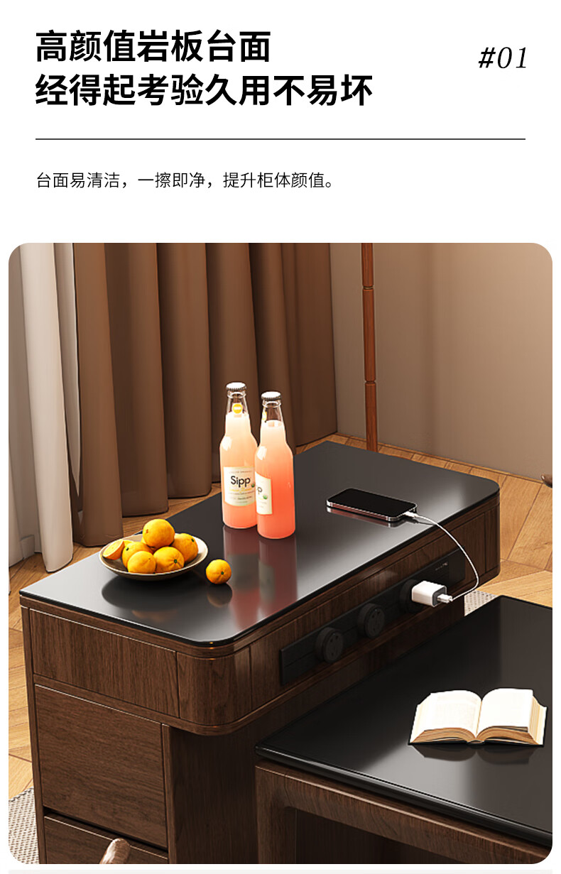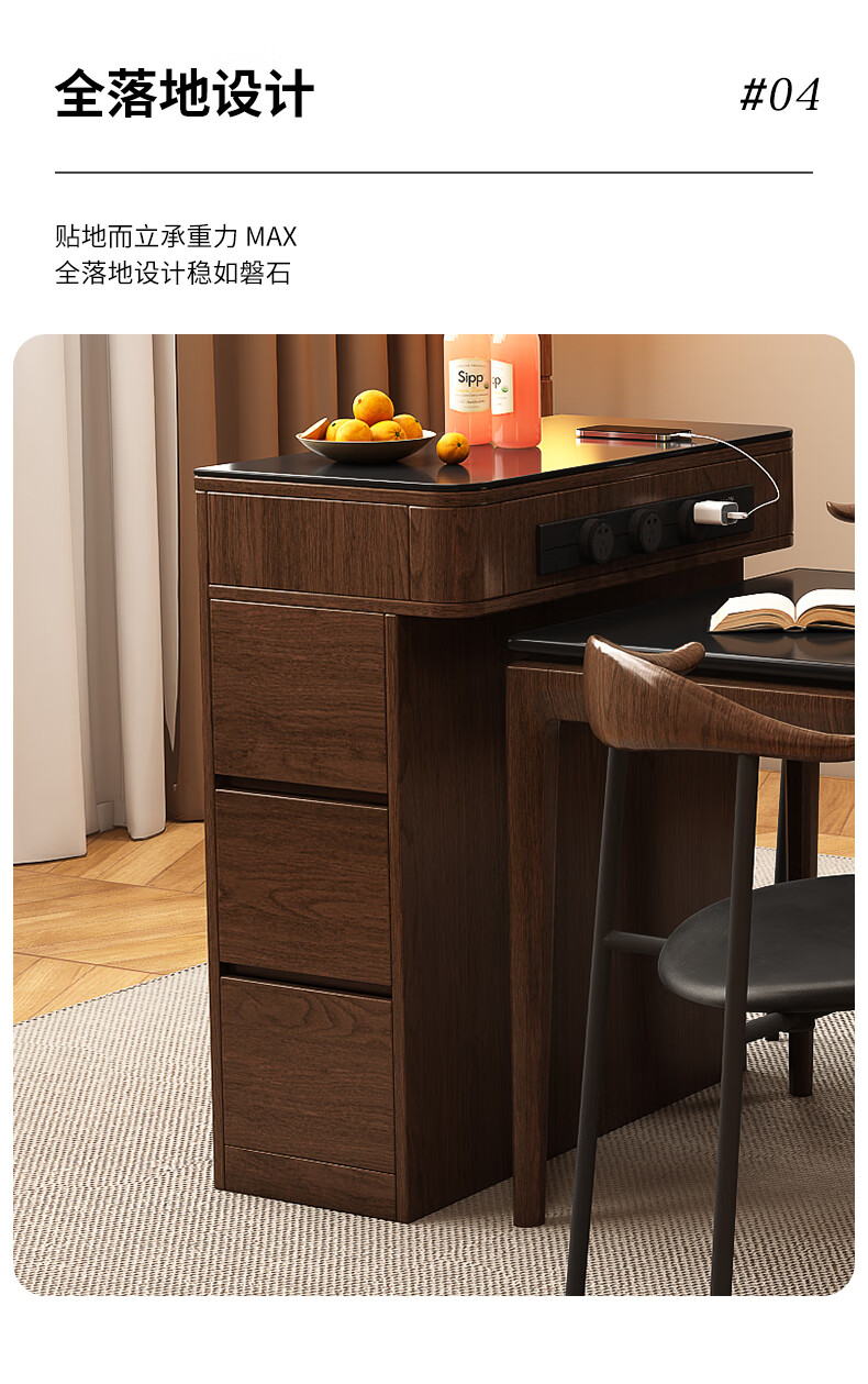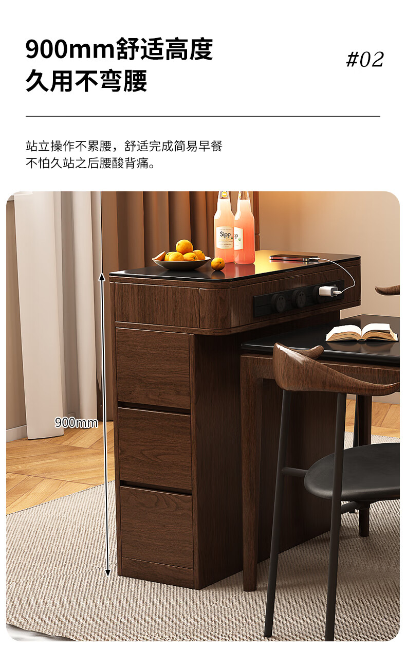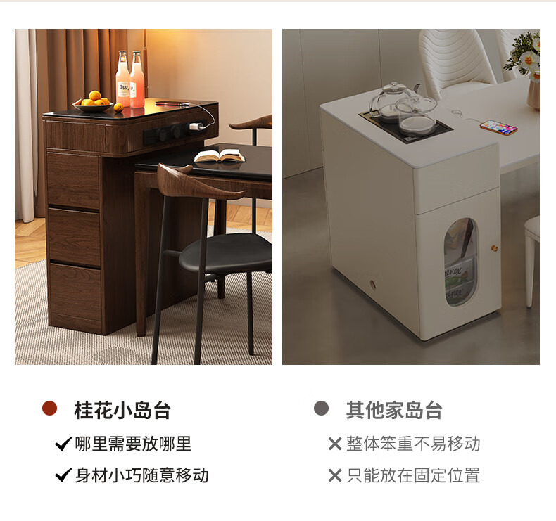 Only the beautiful island counter single cabinet multi-functional small household slate island counter narrow island dining table integrated dining table single cabinet customization Osmanthus 1 French oak + black rock deep 300/400