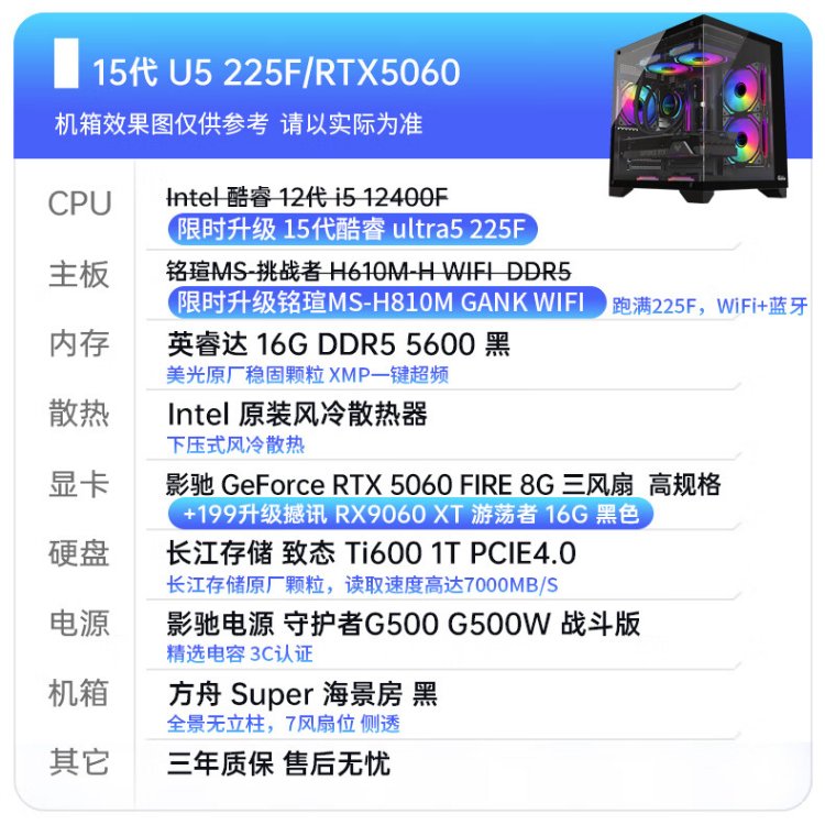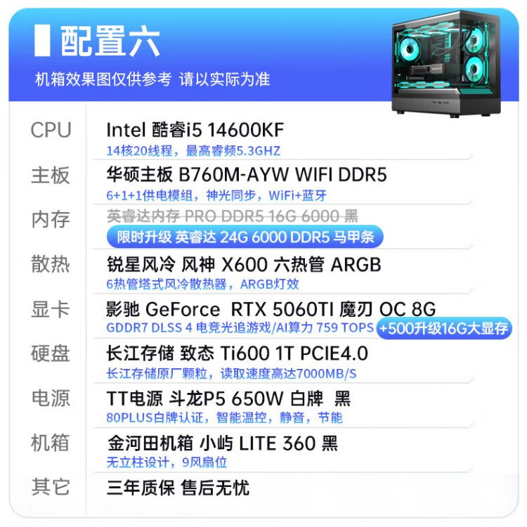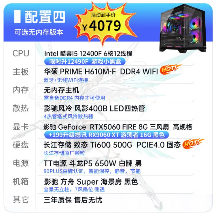 ASUS Family Bucket Core i5 13400F/14600KF+RTX5060 desktop assembly computer console game high-end e-sports independent display live broadcast design rendering complete desktop computer configuration four I5 12490F+RTX5060