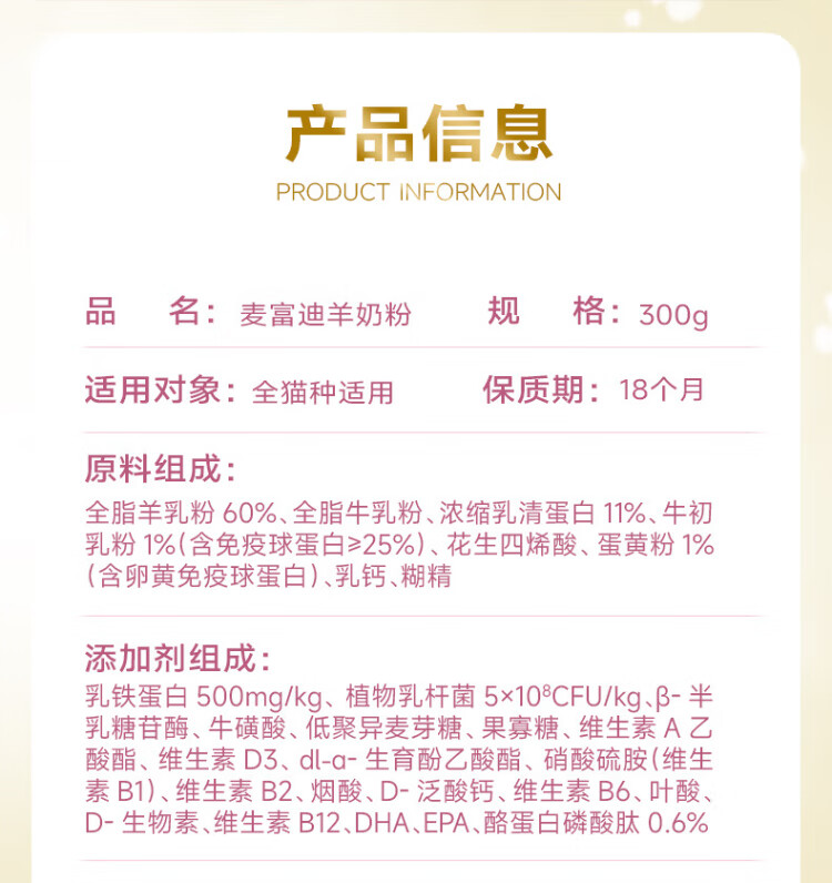 McFoodie Goat Milk Powder for Cats Kittens Goat Milk Powder Cat Milk Powder Pet Nutritional Supplement 300g MCS Nutritional Formula Goat Milk Powder 30g