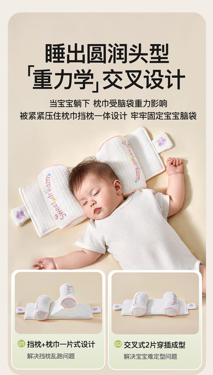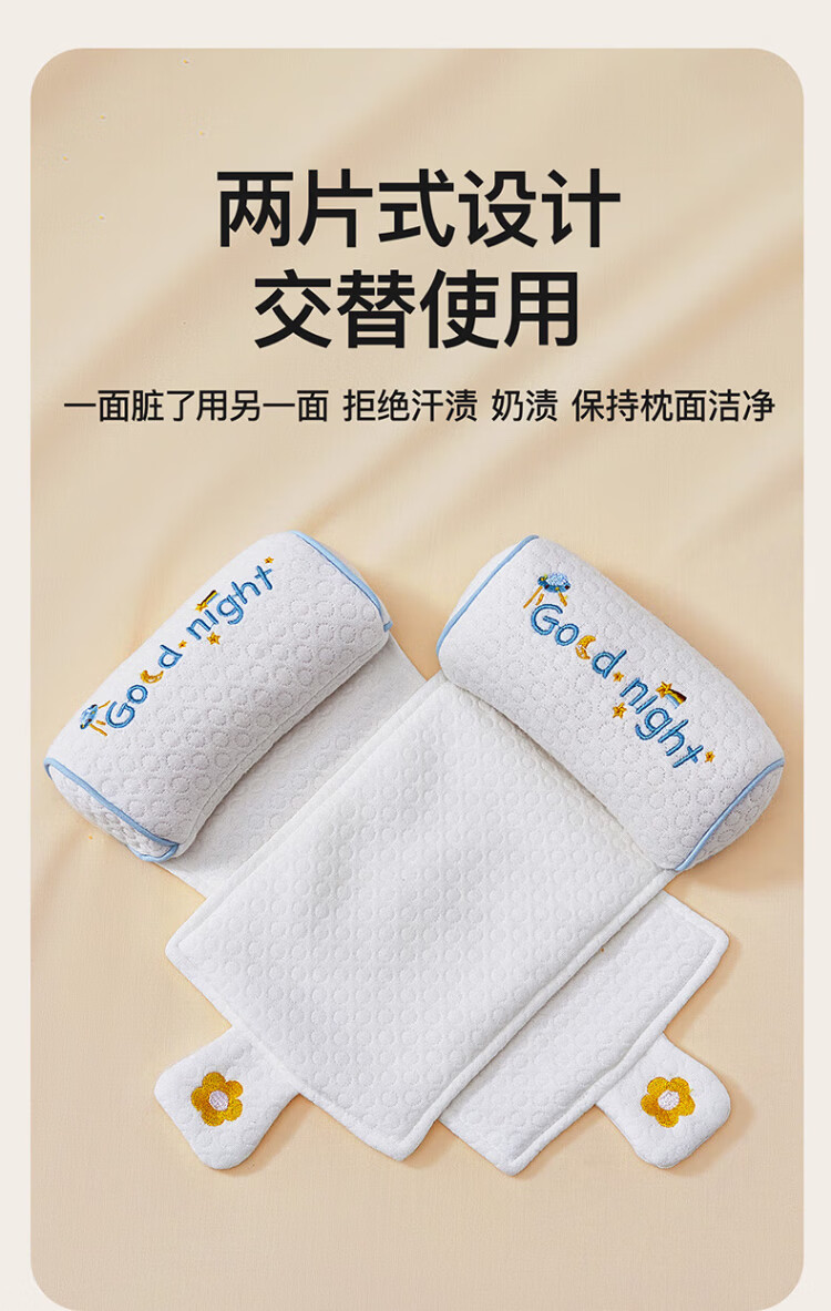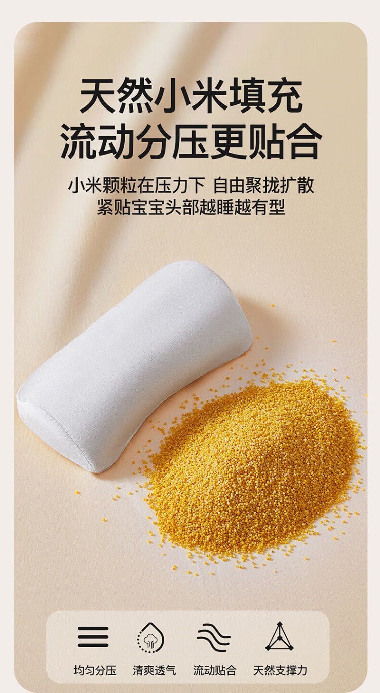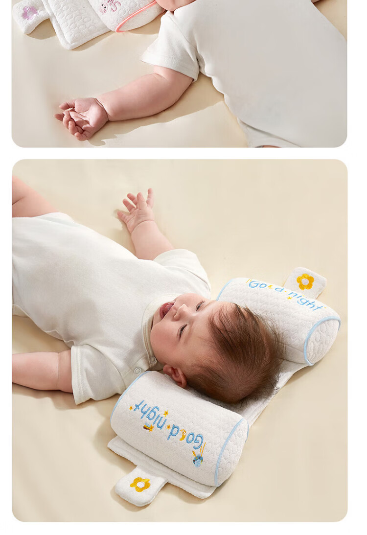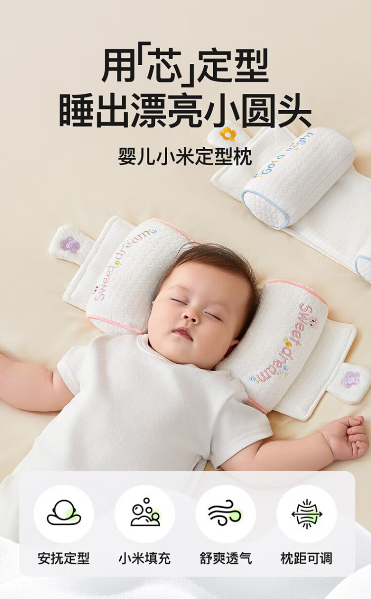 More Rabbit Xiaomi shaped pillow for babies 0-6 months sleeping with round heads, newborn baby corrective head shape pillow, anti-deviation baby pillow, blue starry sky丨10A antibacterial and anti-mite, seasonal millet filling丨pull to adjust the spacing