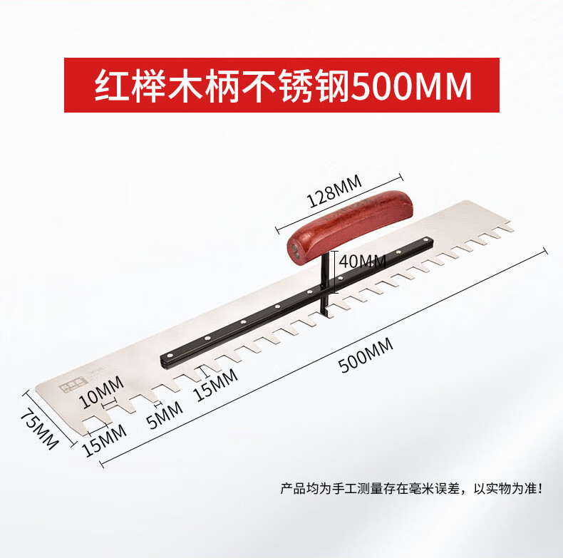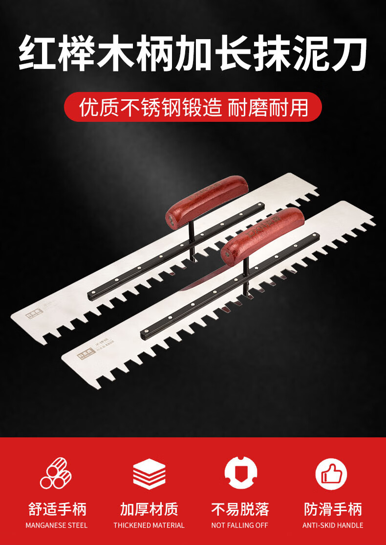 Kemaixin extended stainless steel trowel tile iron plate serrated bricklayer's trowel with toothed plaster pull groove new tiling tool beech handle extended stainless steel serrated trowel