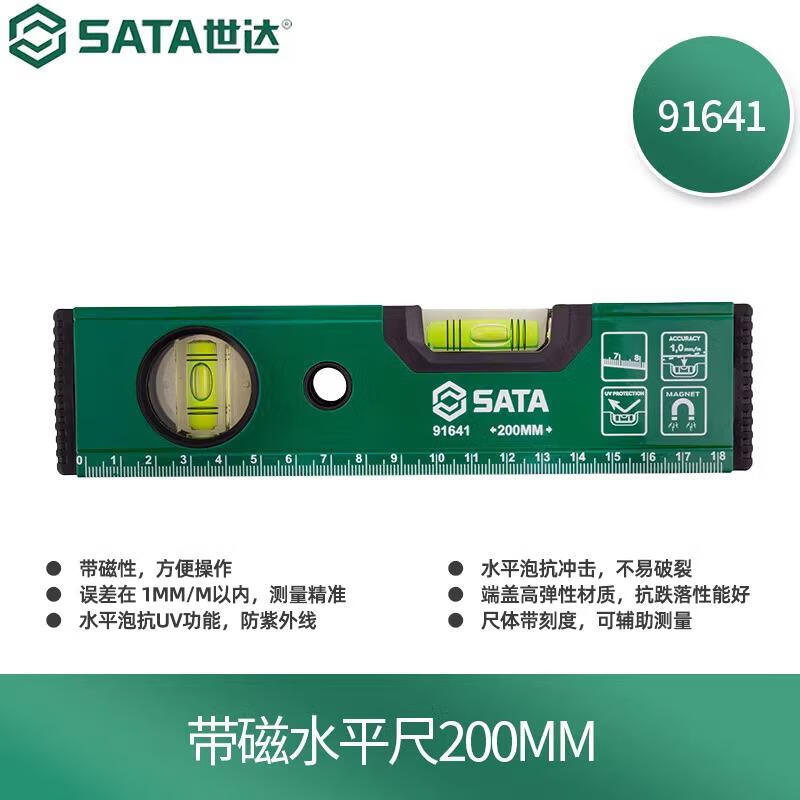 SATA level magnetic high-precision engineering measurement leveling instrument tool ruler mini bubble protractor ruler magnetic level - 20 cm 91641