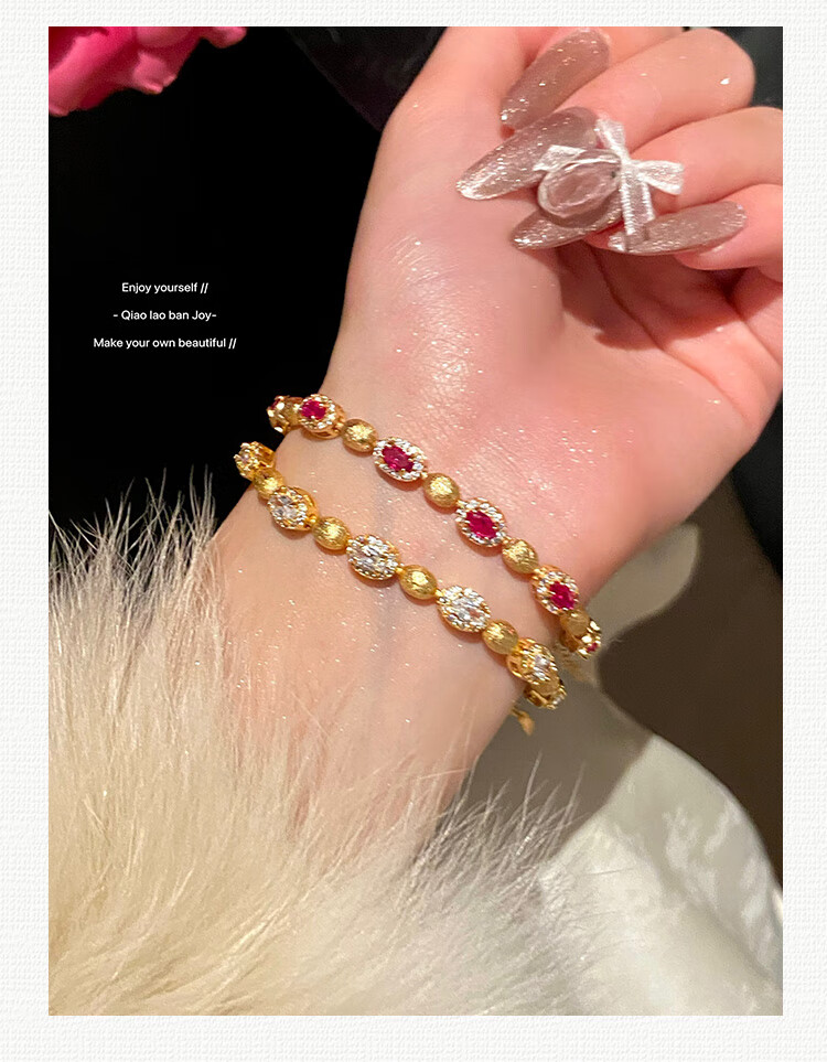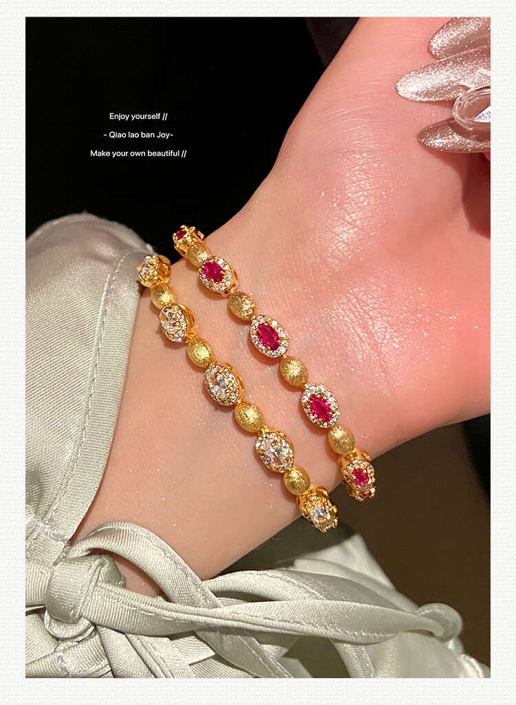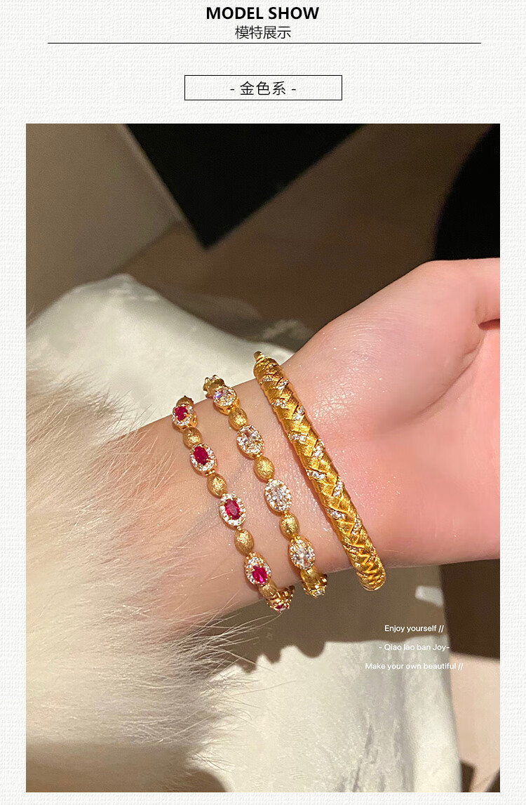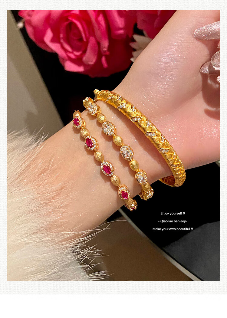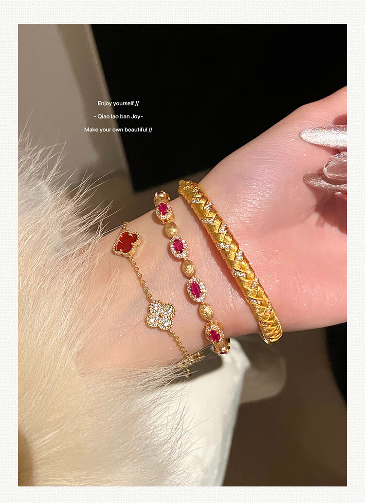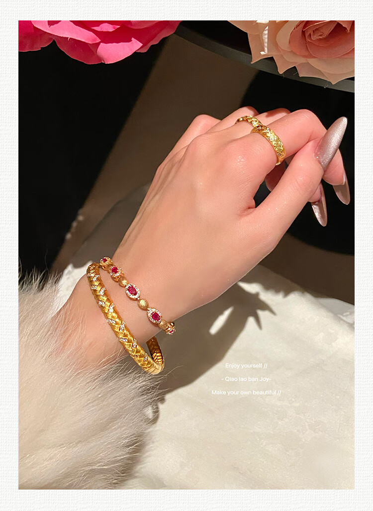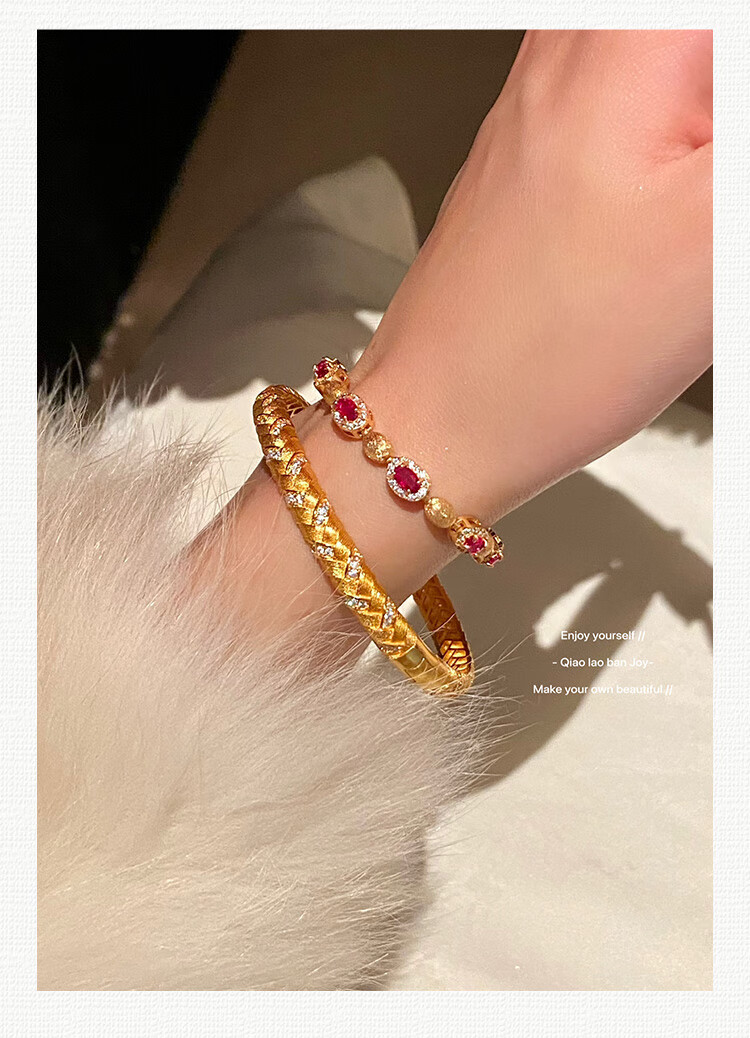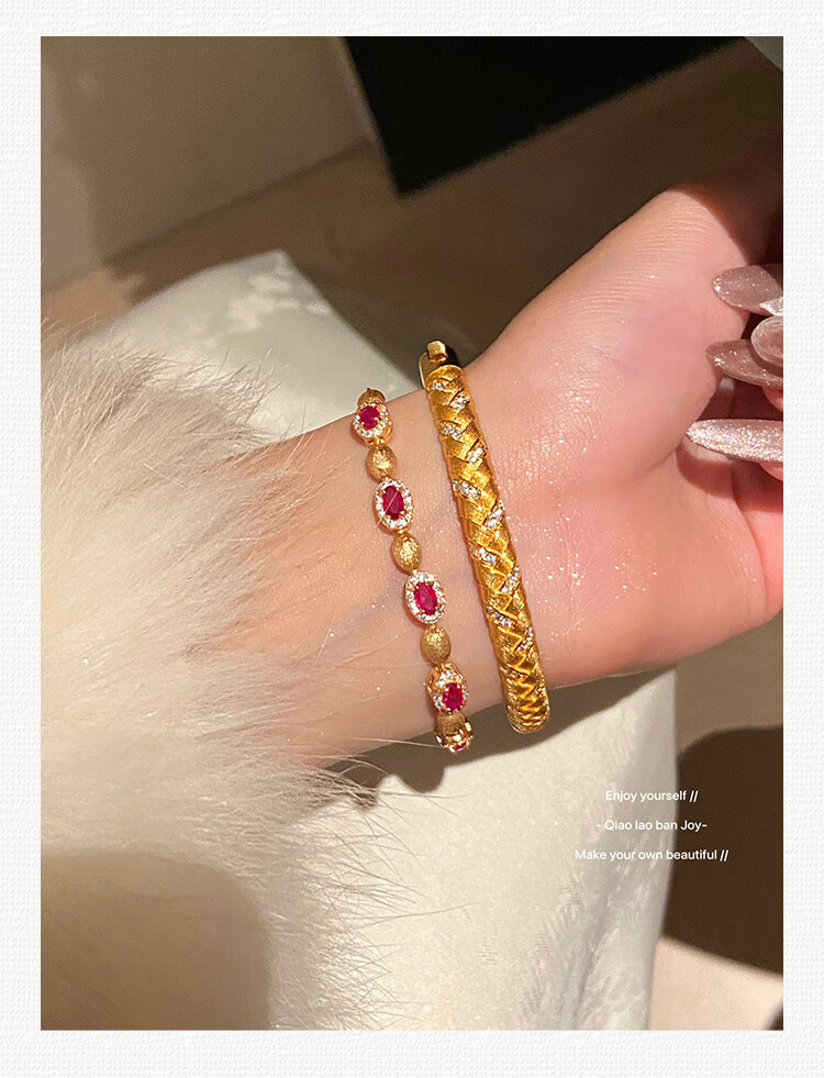 Shijun (SHIJUN) Heavy Industry Wheat Ear Bracelet Bracelet Middle Ages Flash Diamond Red Corundum Imitation Jade Color Retro Texture Fashion Accessories Jewelry Gold Bracelet