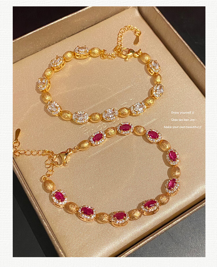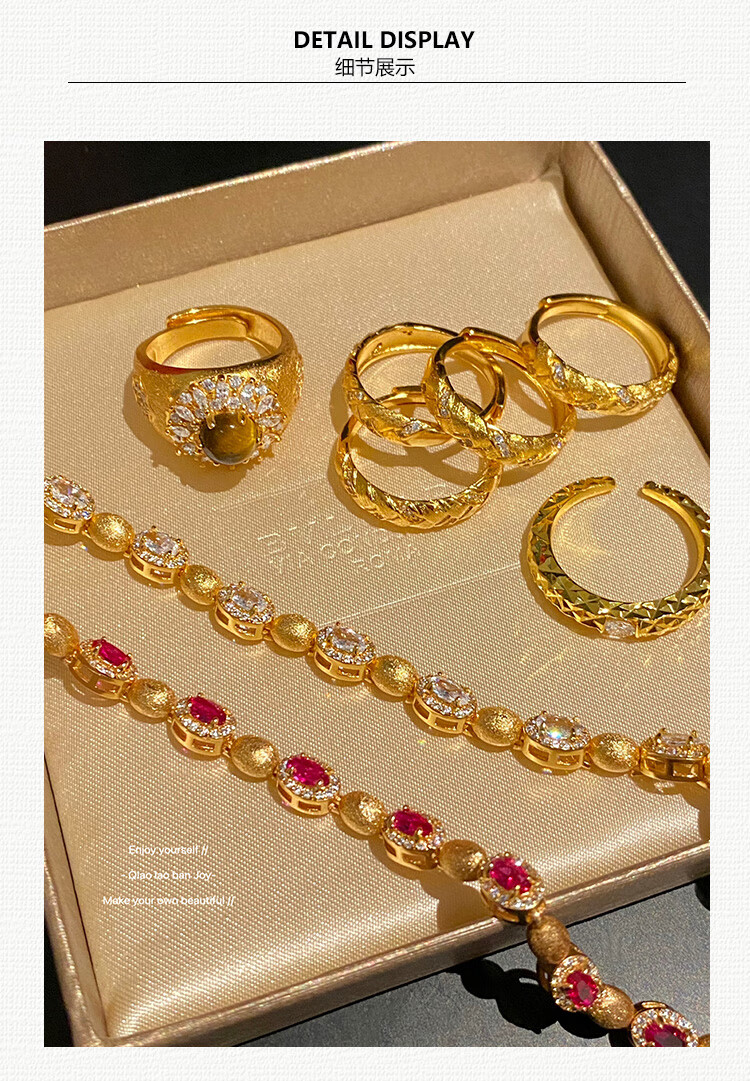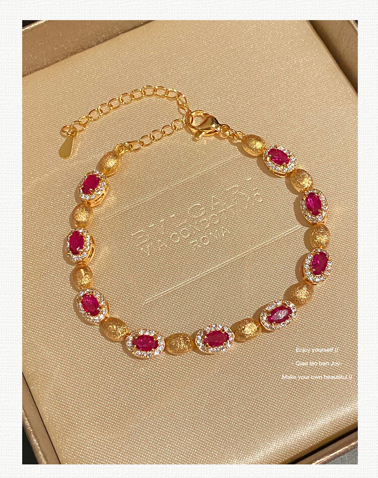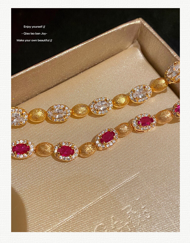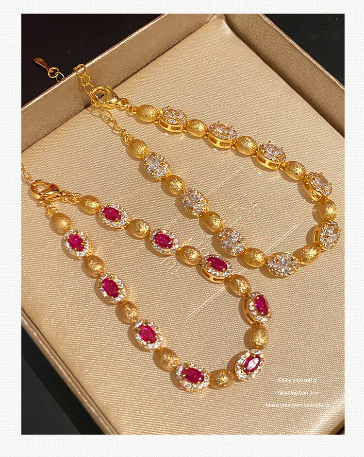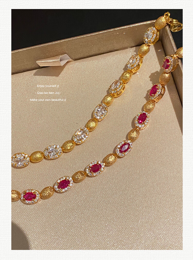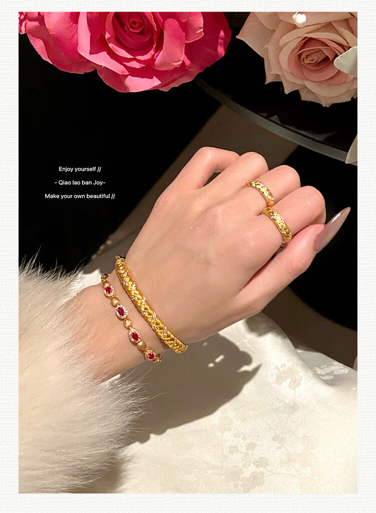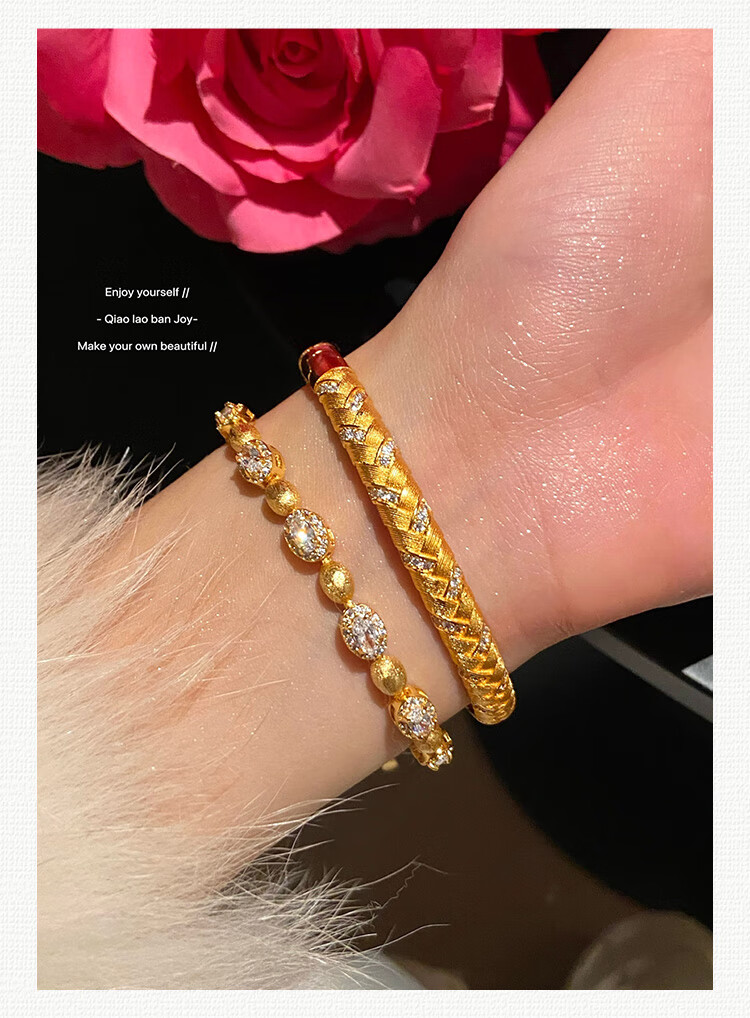 Shijun (SHIJUN) Heavy Industry Wheat Ear Bracelet Bracelet Middle Ages Flash Diamond Red Corundum Imitation Jade Color Retro Texture Fashion Accessories Jewelry Gold Bracelet