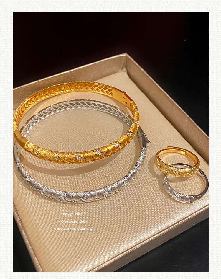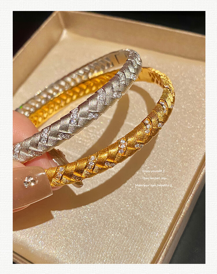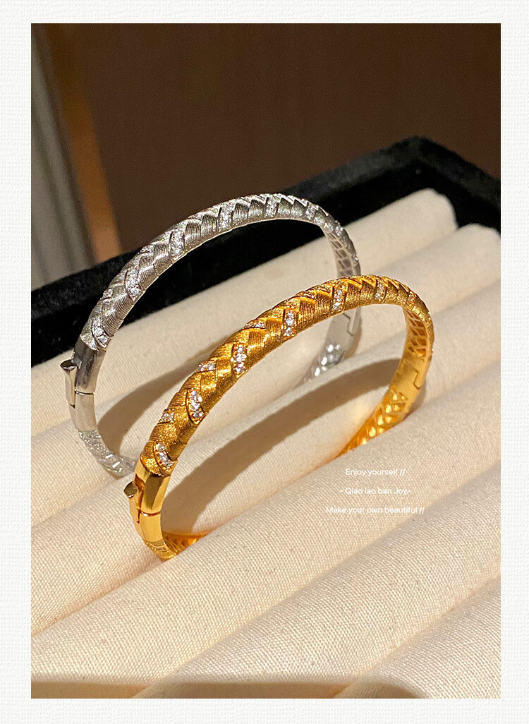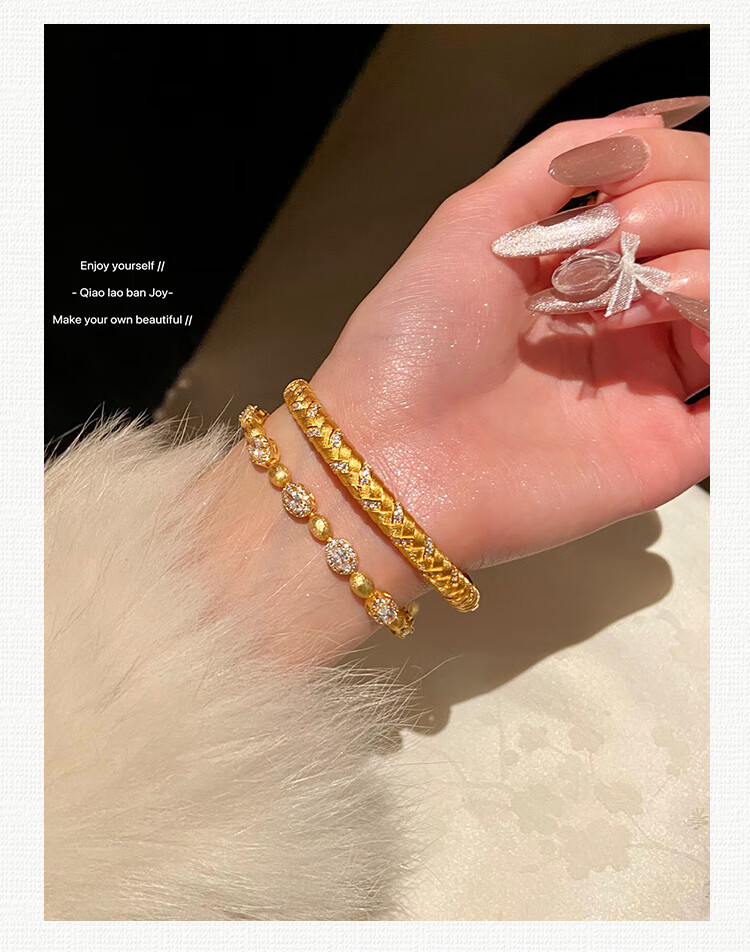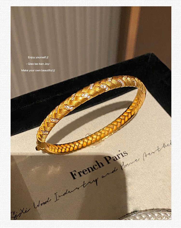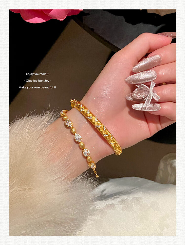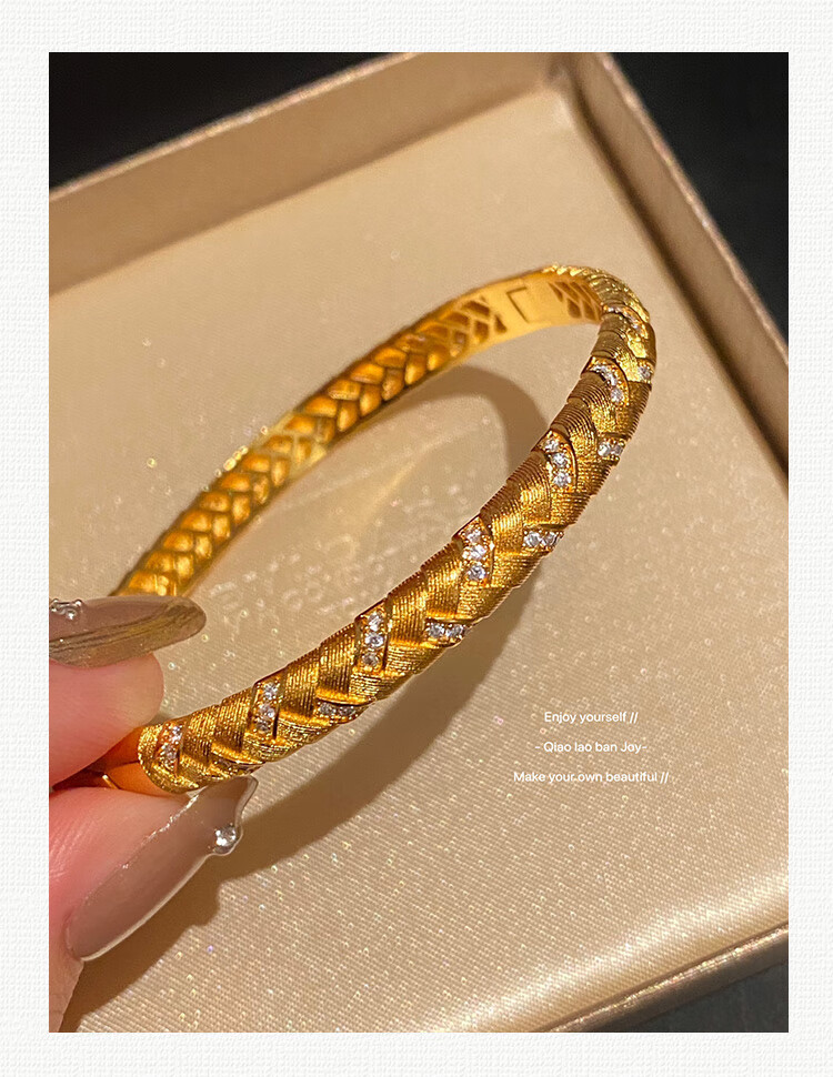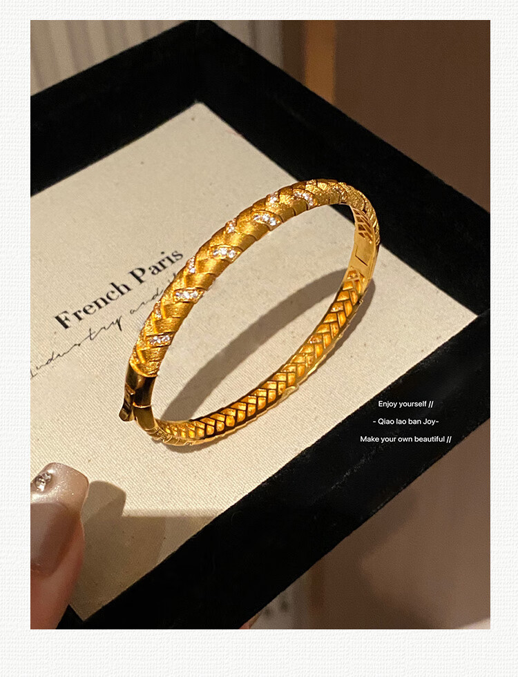 Shijun (SHIJUN) Heavy Industry Wheat Ear Bracelet Bracelet Middle Ages Flash Diamond Red Corundum Imitation Jade Color Retro Texture Fashion Accessories Jewelry Gold Bracelet