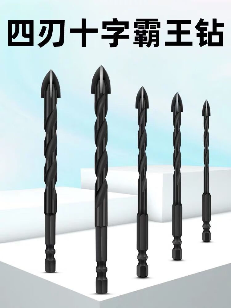 Over-the-Wall-Bohrer, verlängert Overlord, extraharter, vierschneidiger Overlord-Bohrer mit Kreuzschneide zum Bohren von Vollkeramikfliesen, Zementfliesen und roten Ziegelsteinen. Verbesserte Verlängerung und Verdickung | Tieflochwerkzeug | Event-Sonderpreis. Verbessertes Vierblattmodell 10 * 300 mm 1 Stück