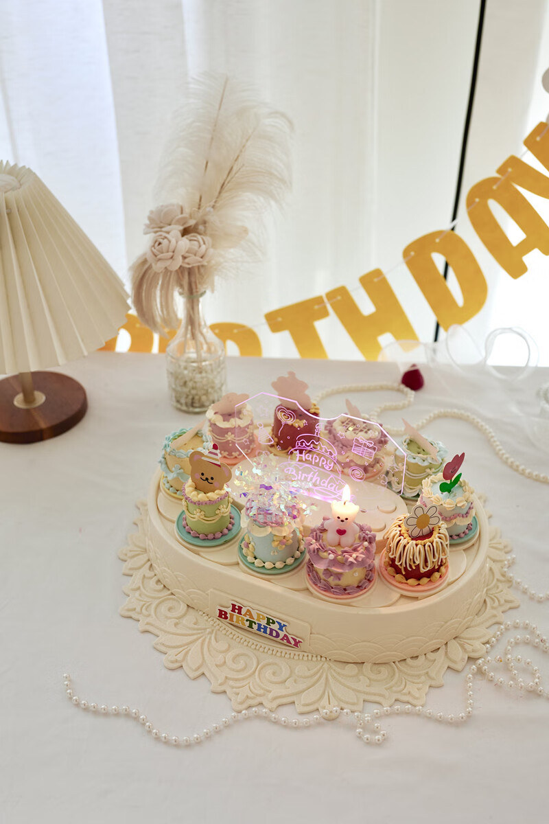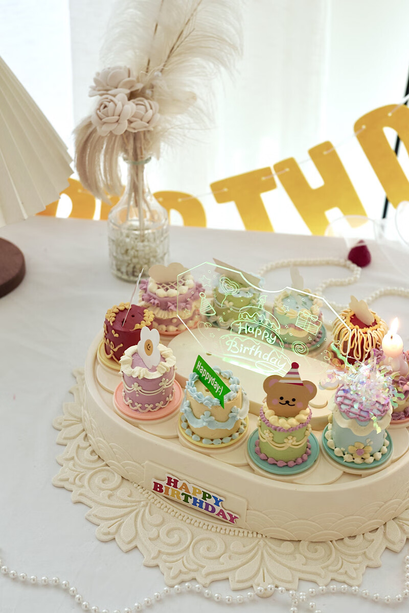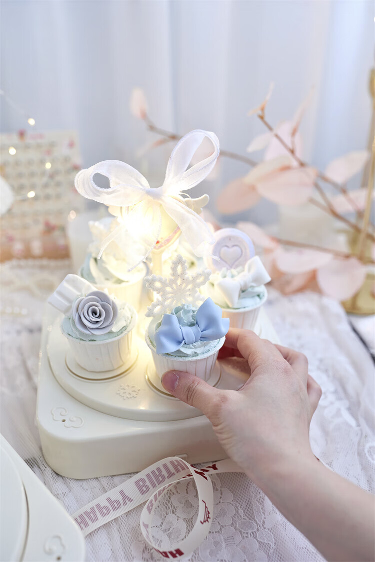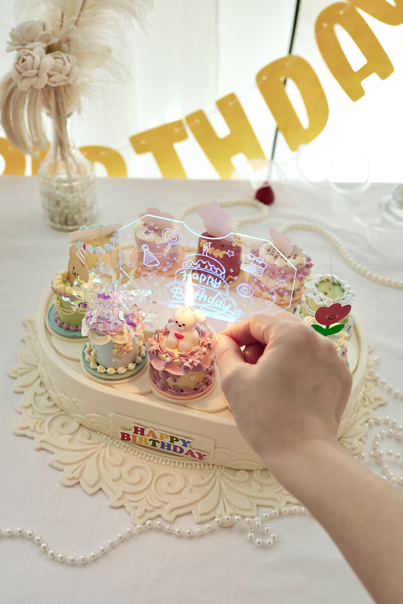 Xiongwochi automatic rotating dessert machine macaron cake machine birthday party decoration snack tray revolving sushi supplies single-layer milk white dessert machine