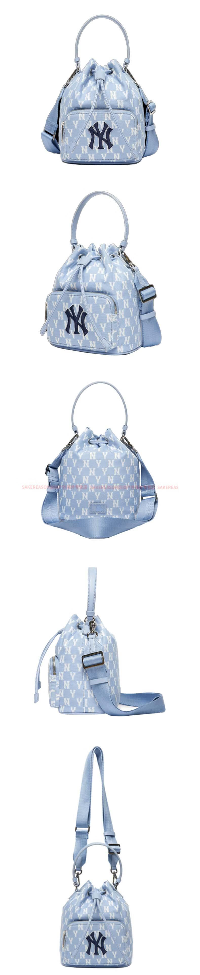 MLBMonogram Series NY New York Yankees Retro Old Flower Bucket Bag Handbag Shoulder Bag Crossbody Blue