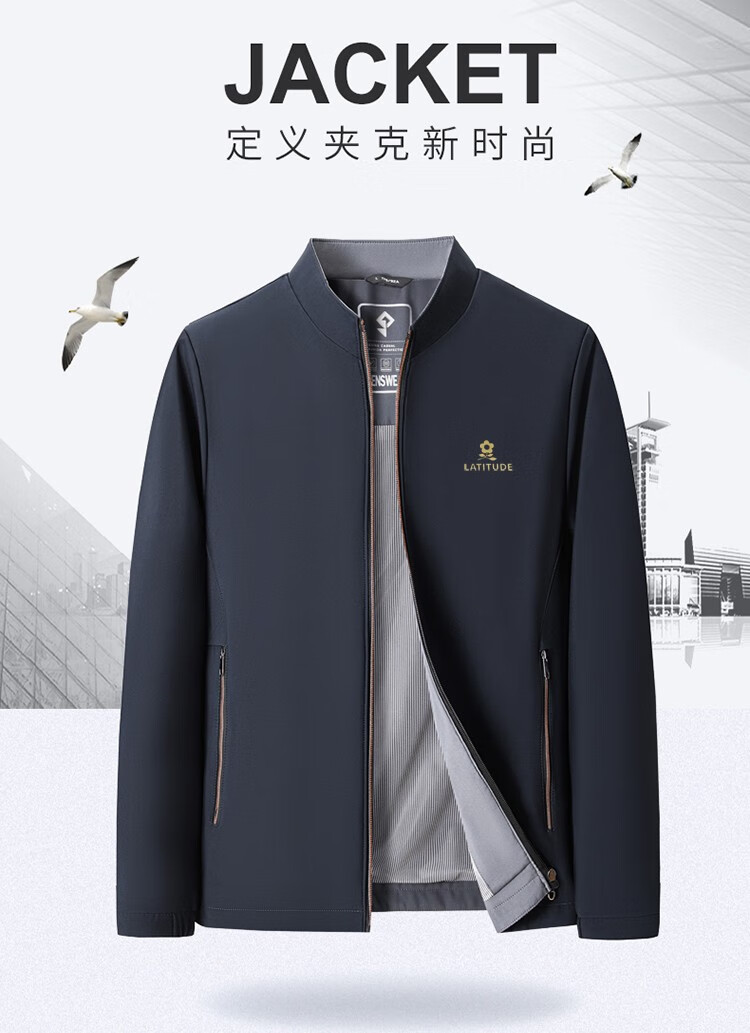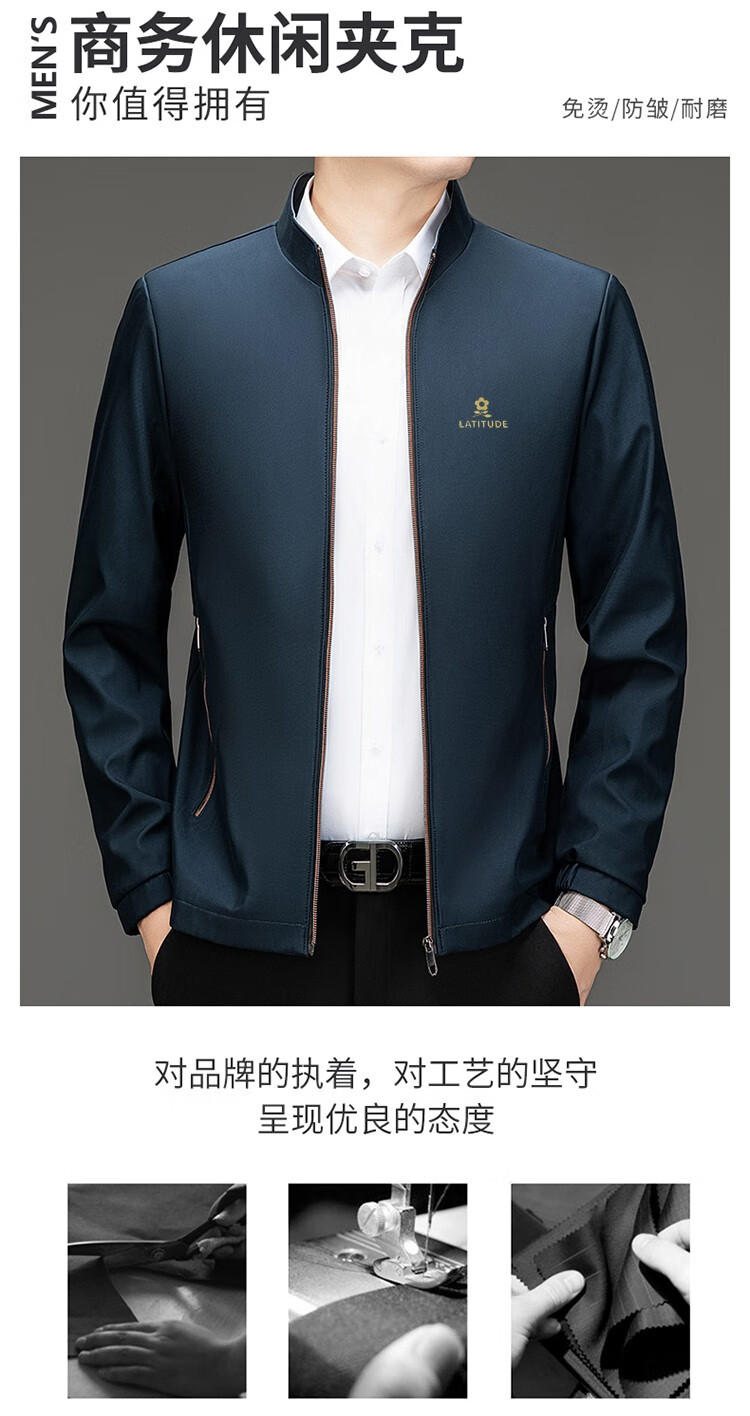 Montagut French imported men's spring and autumn stand collar jacket genuine business men's high-end versatile casual leader cadre jacket Navy M 170/88A