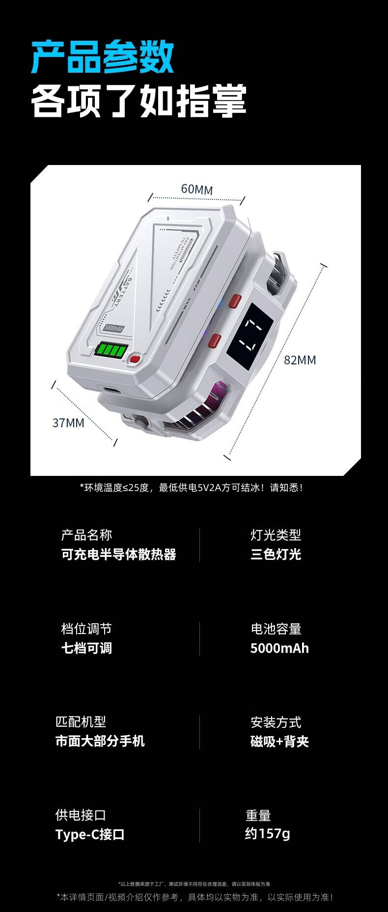 JGOZZ long-lasting ultra-large-capacity battery mobile phone wireless radiator magnetic back-clip semiconductor refrigeration outdoor live broadcast ultra-long-lasting e-sports game cooling artifact standard version with a removable battery