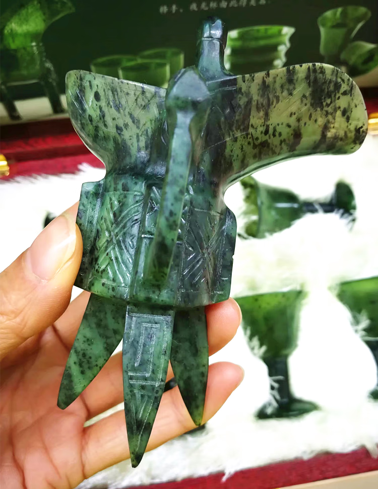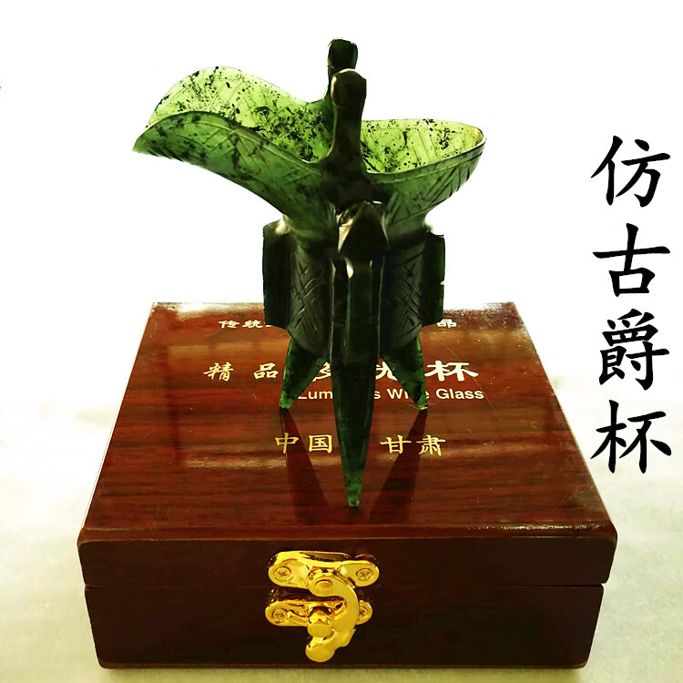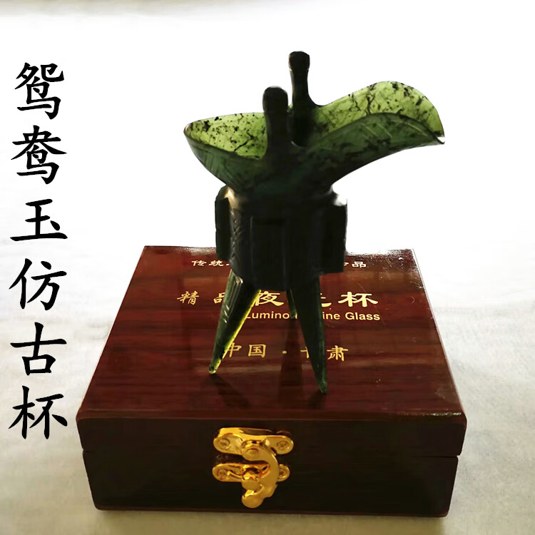 Short cloud Gansu Wushan luminous cup white wine cup serpentine jade mandarin duck jade natural jade antique jue cup wine spring jade wine set