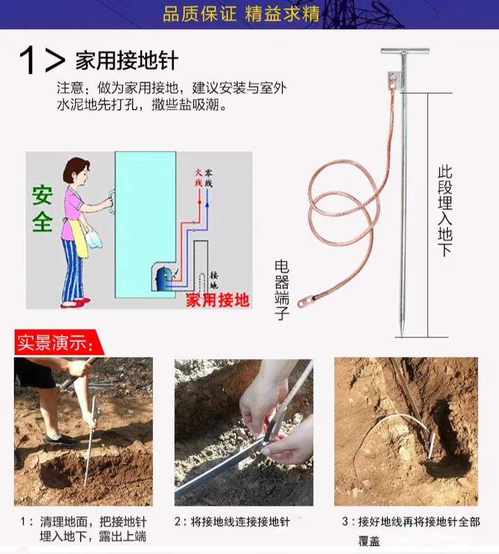 OEMG地线接地针充电桩接地线软铜线避雷充电桩接地线透明软胶紫铜高低压家用充电桩地线 6平方2米做好单孔铜鼻子+丁字接地针