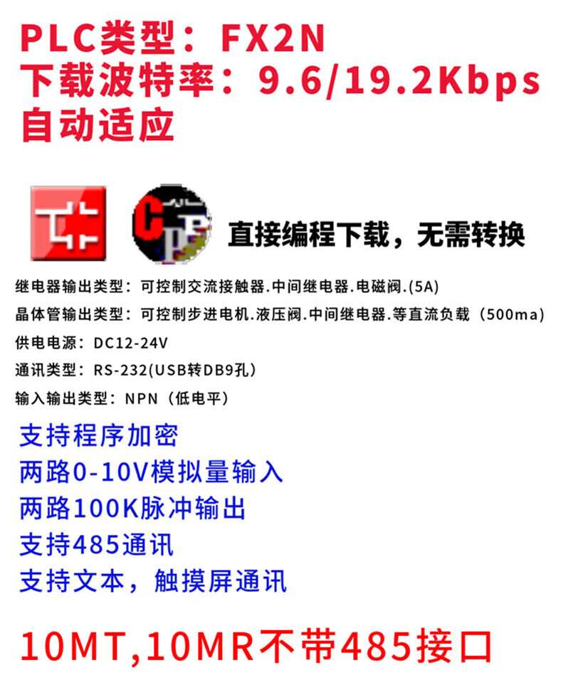 Domestic plc industrial control board programming controller fx2n-10/14/20/24/30/mr/mt with 485 analog quantity g with 485 base FX2N-20MT