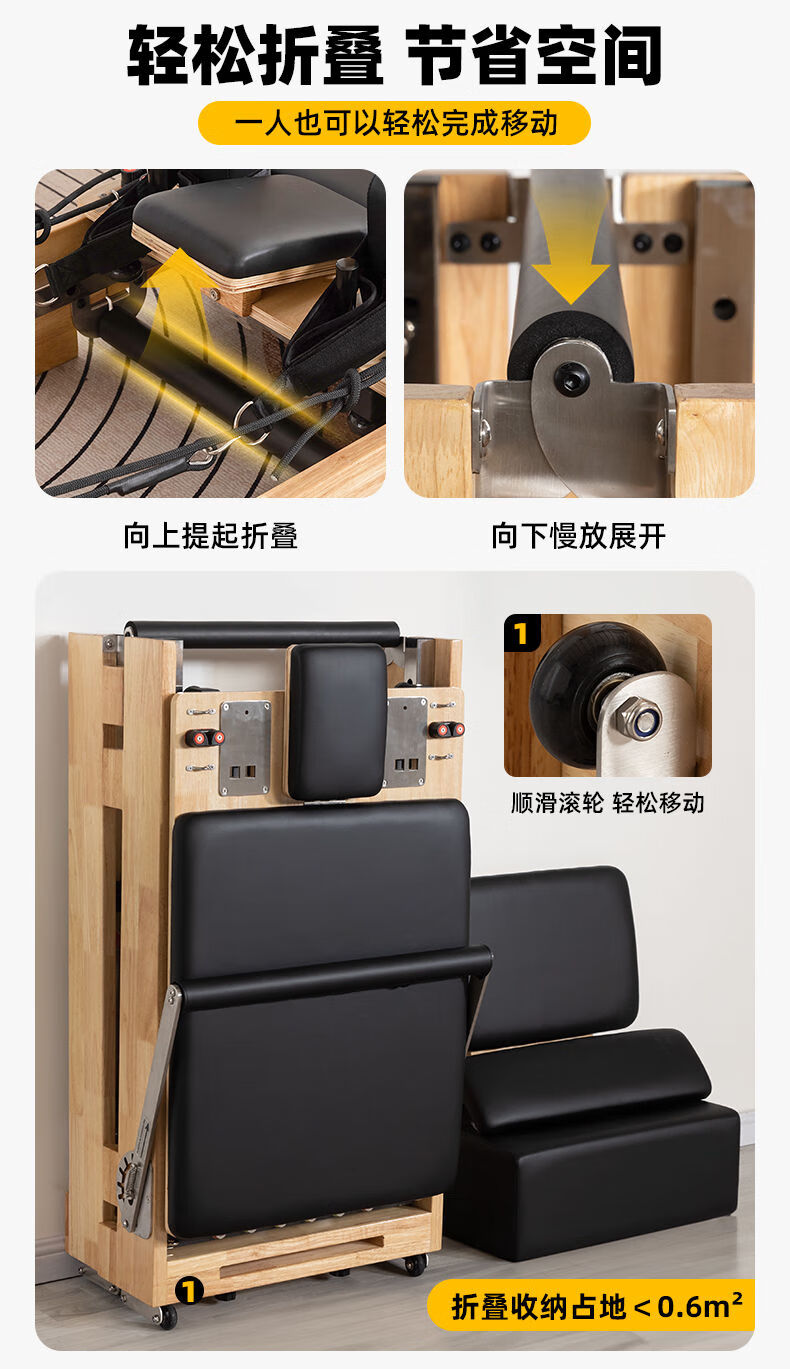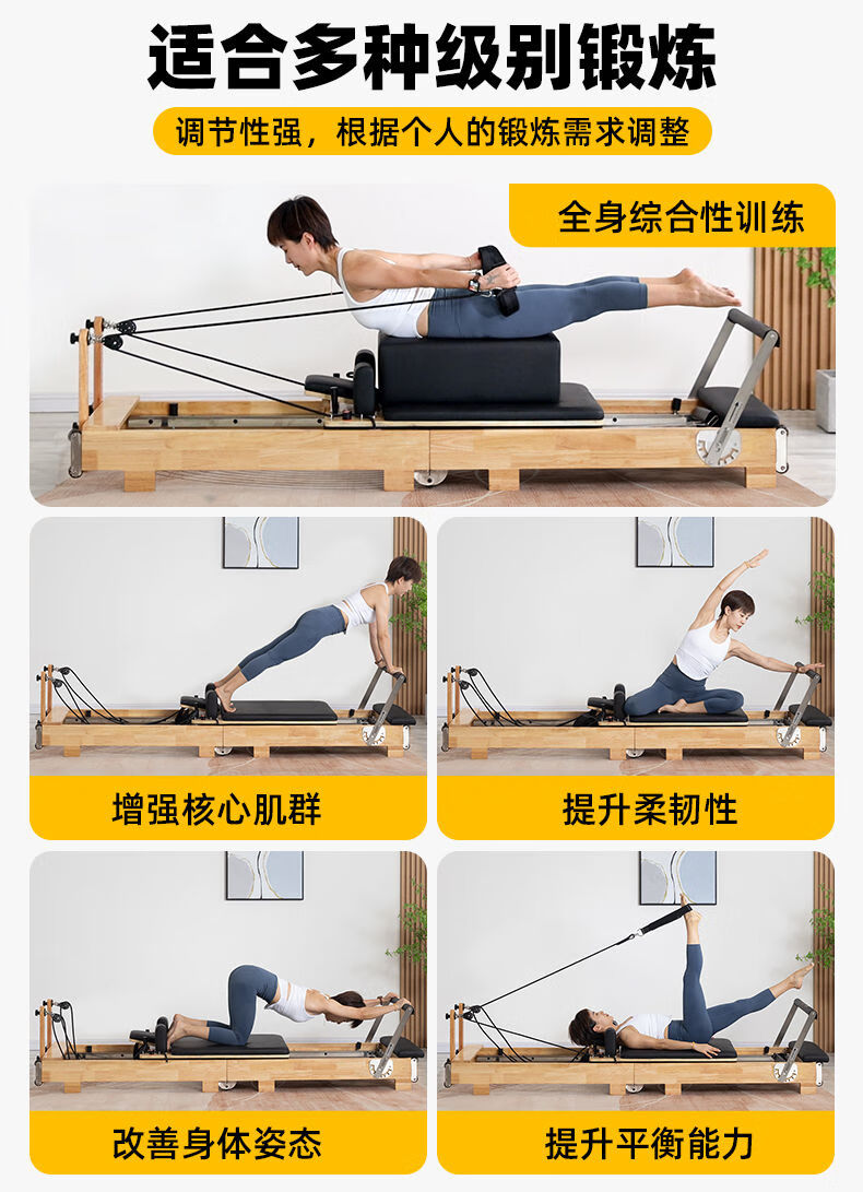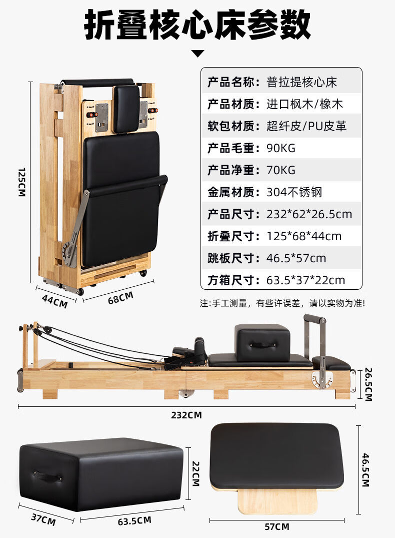 Big Tuan Xiaoyuan Pilates Large Equipment Foldable Core Bed Wooden Yoga Bed Commercial Yoga Studio Personal Training Professional Fitness Upgrade Iron Frame Folding Core Bed (Random Color)
