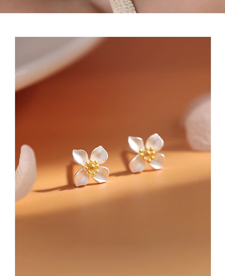 Qi Xiaomi s999 pure silver gardenia earrings for women sterling silver earrings niche high-end 2025 new light luxury female bestie earrings a pair of gardenia earrings 999 pure silver
