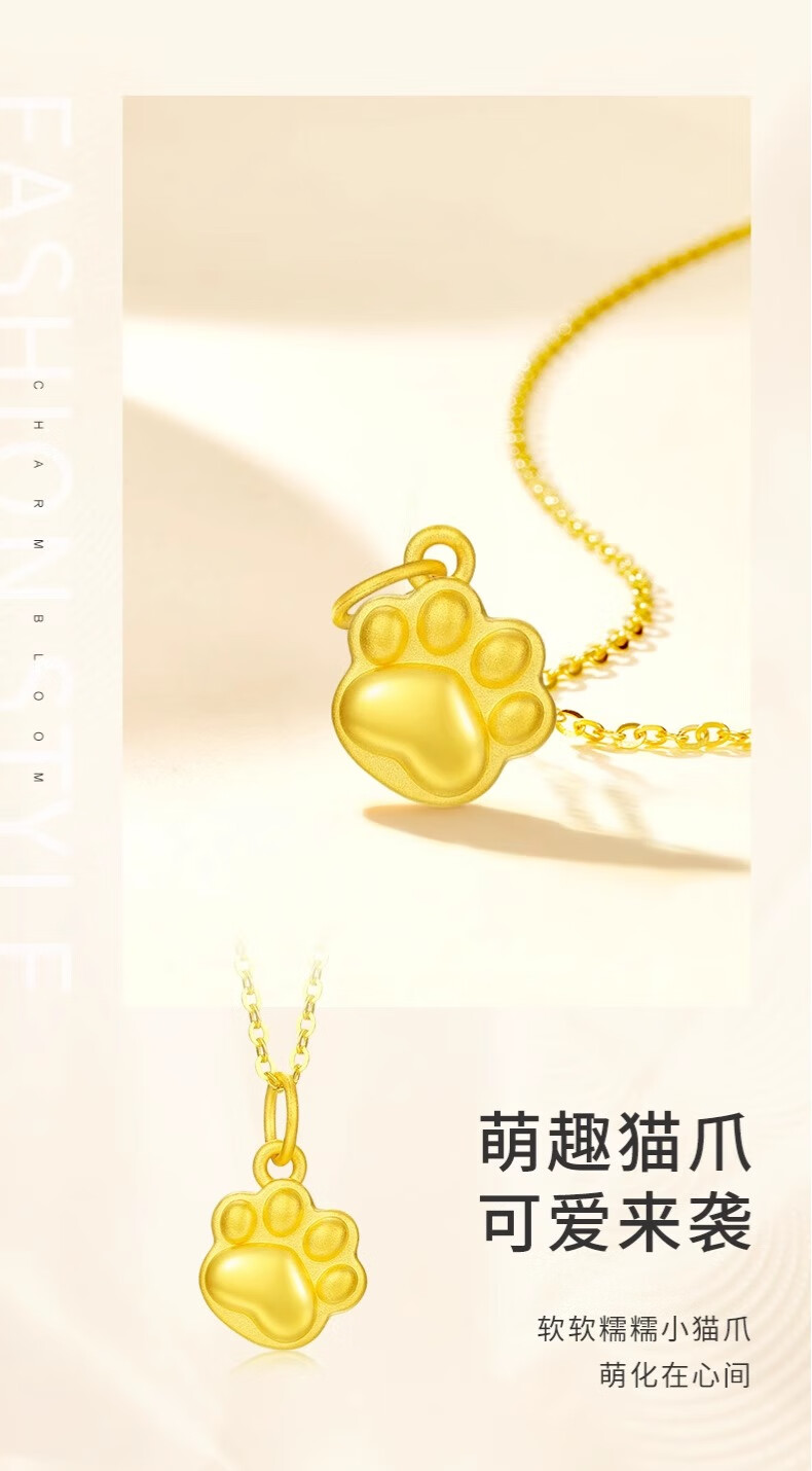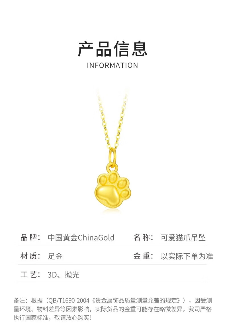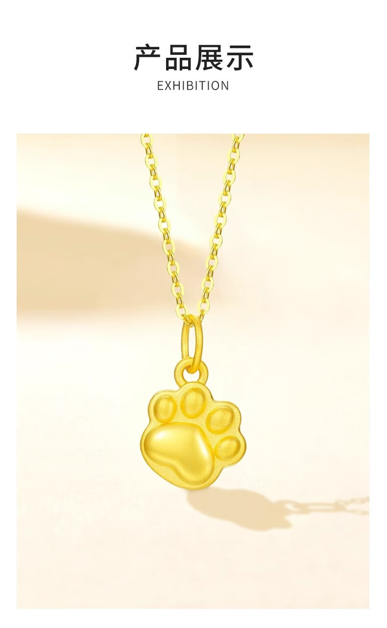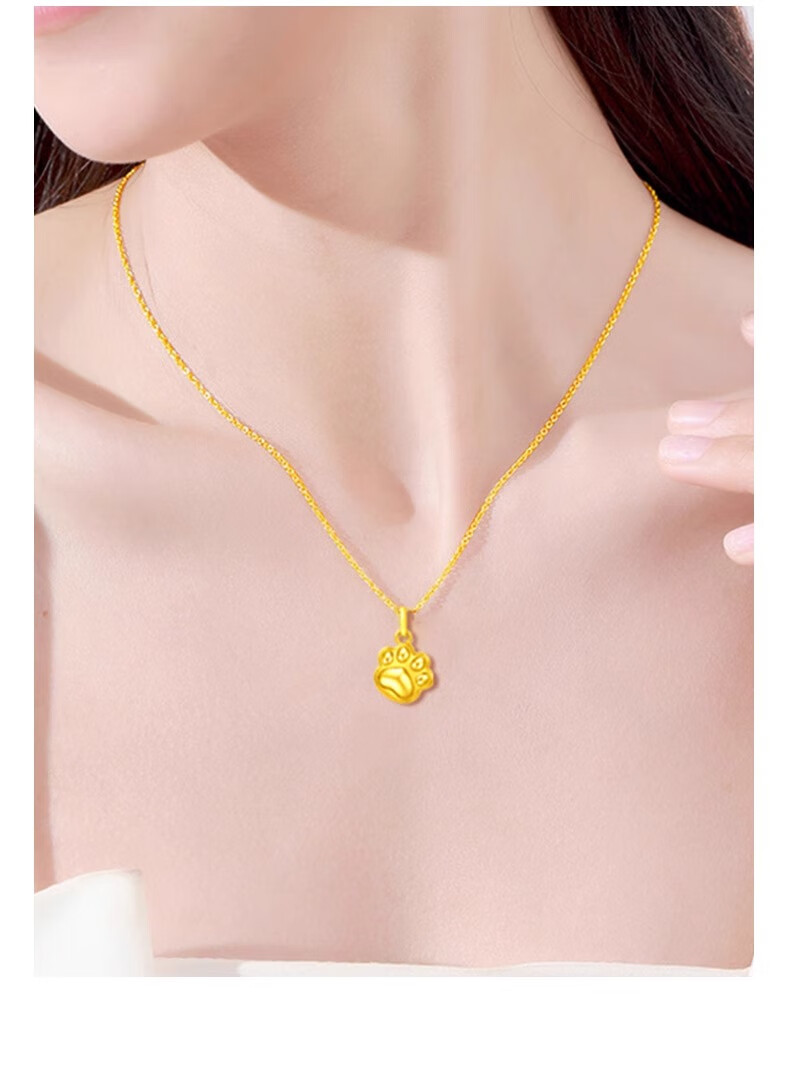CHINA GOLD Gold Necklace Women's Pure Gold Cat Claw Pendant Cute Pet Jewelry Valentine's Day Birthday Gift for Girlfriend and Wife Pure Gold Cat Claw Pendant - About 0.2g Free Silver Chain