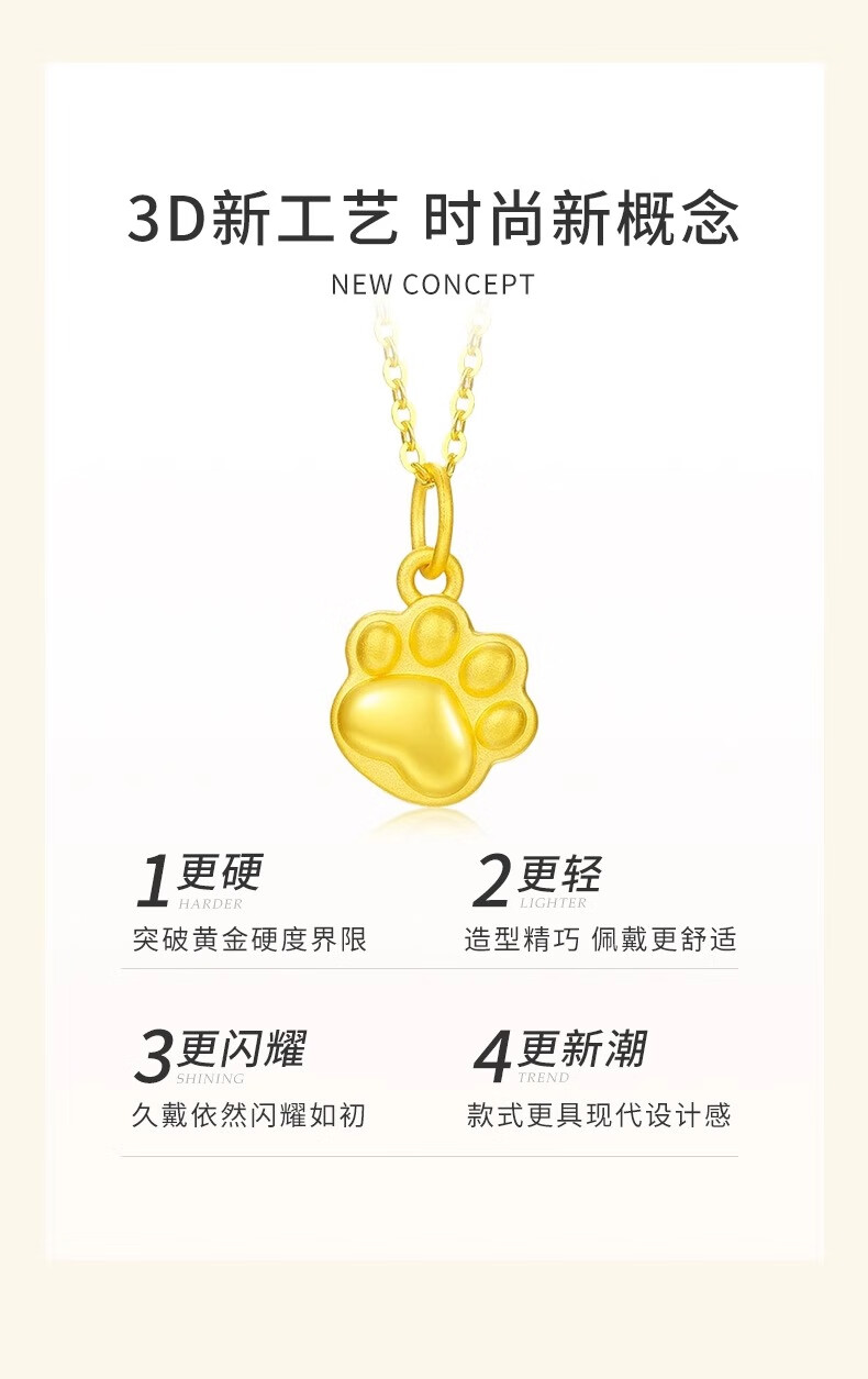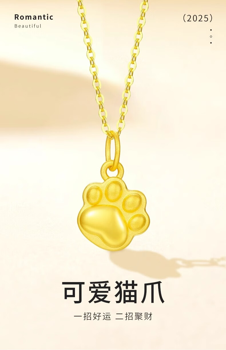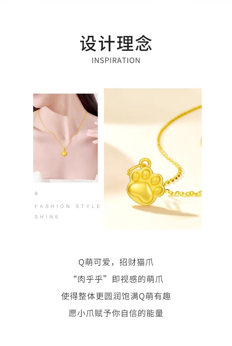 CHINA GOLD Gold Necklace Women's Pure Gold Cat Claw Pendant Cute Pet Jewelry Valentine's Day Birthday Gift for Girlfriend and Wife Pure Gold Cat Claw Pendant - About 0.2g Free Silver Chain