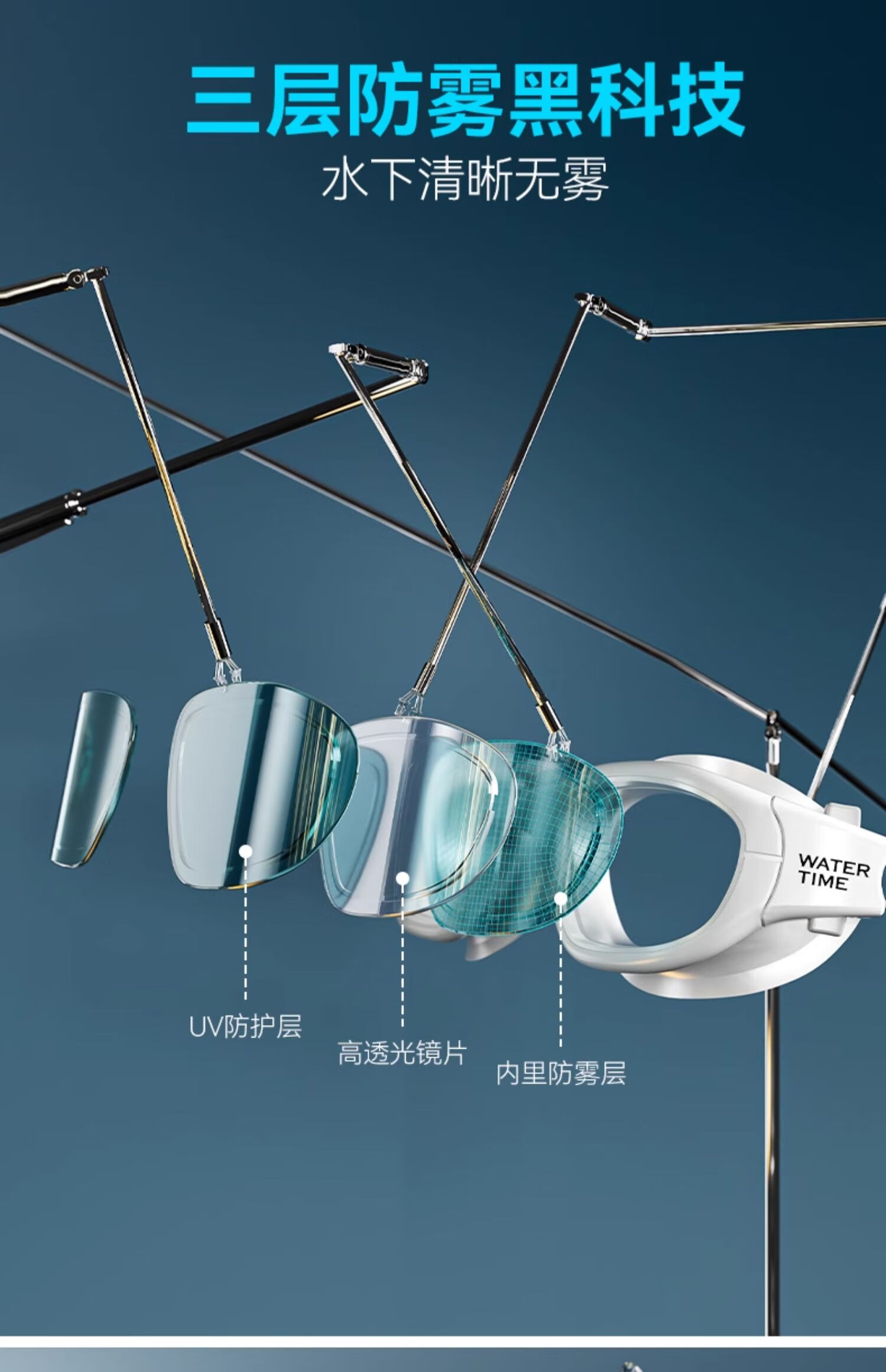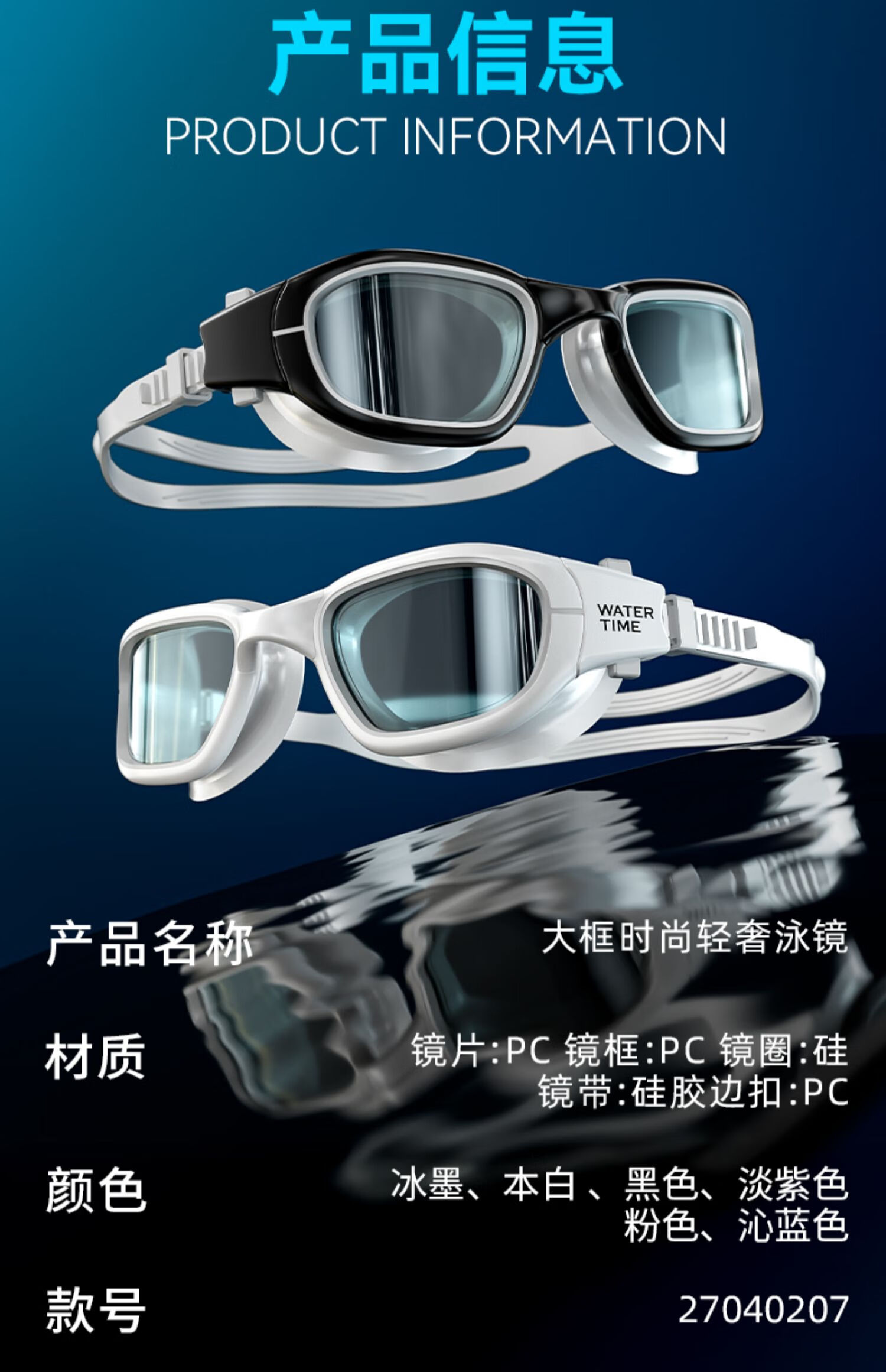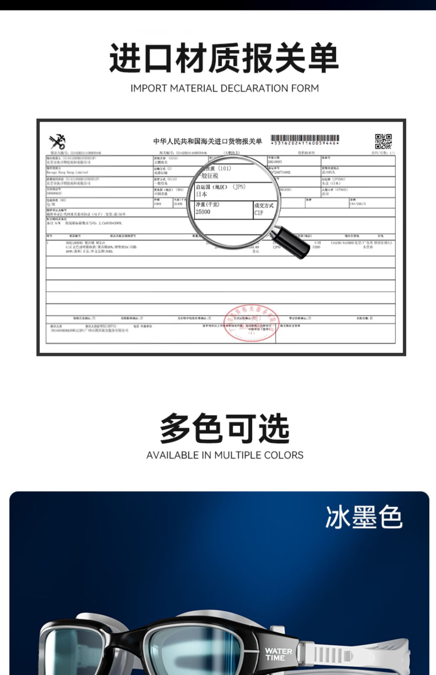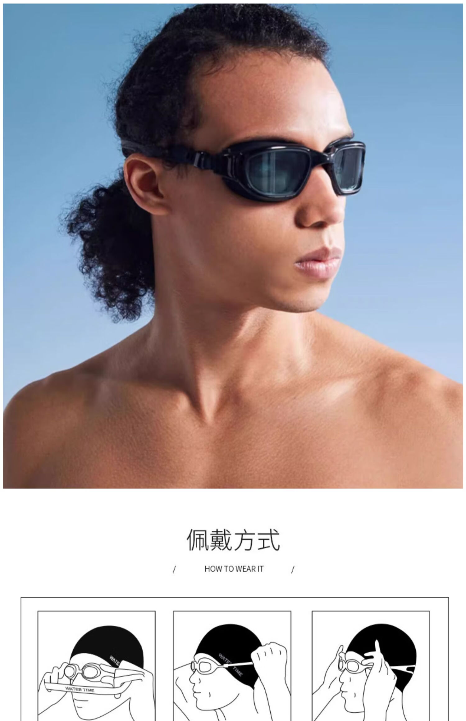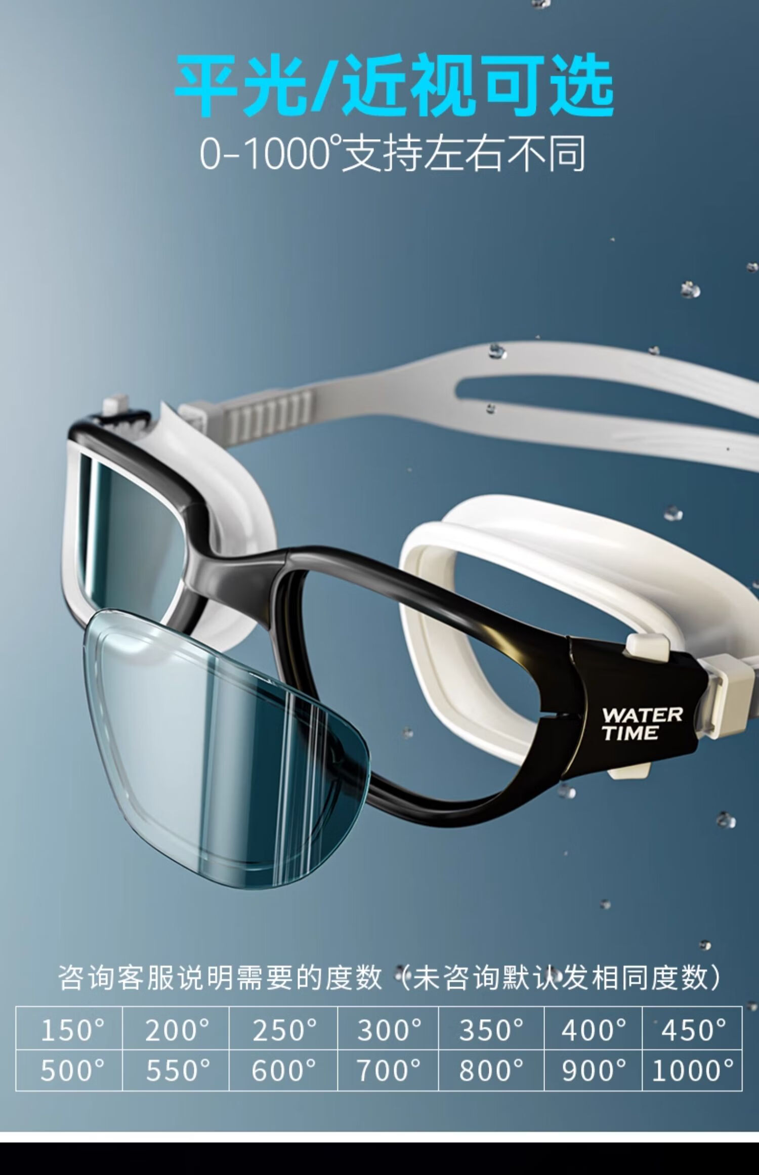 WATERTIME swimming goggles waterproof and anti-fog high-definition large-frame men's and women's swimming goggles myopia glasses cap set professional swimming equipment ice ink / can be equipped with different left and right-contact customer service for ordering left and right eyes customized quantity after taking the photo, contact customer service