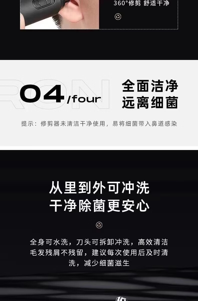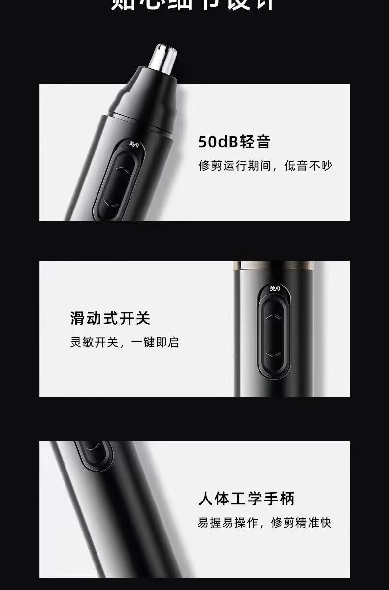 Millet stone washable electric nose hair trimmer USB charging manual cleaning and removal of nostrils special shaving tool for men and women round head new upgraded version upgraded version USB charging version + eyebrow trimmer set