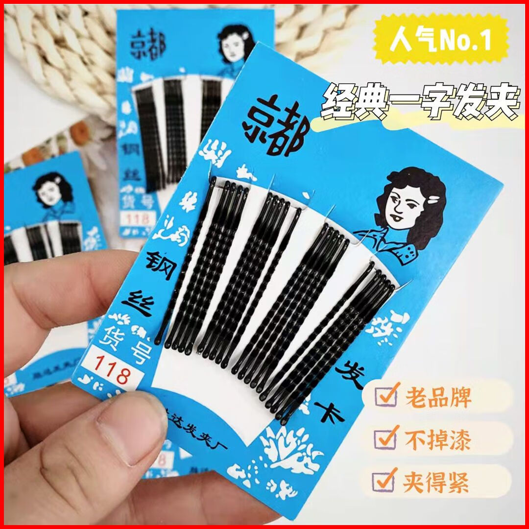 Meipai store sells black one-word clip wavy hair clip for women's broken hair artifact steel clip bangs hair clip steel wire edge 20 pieces in 1 card board