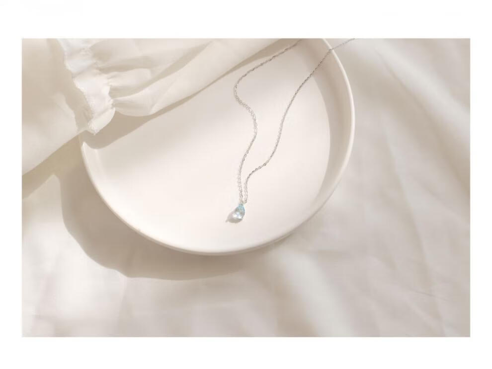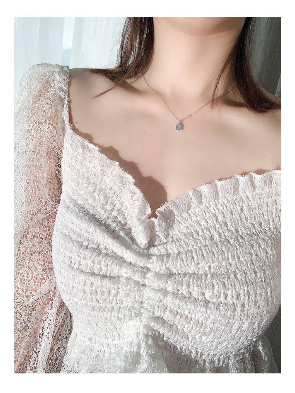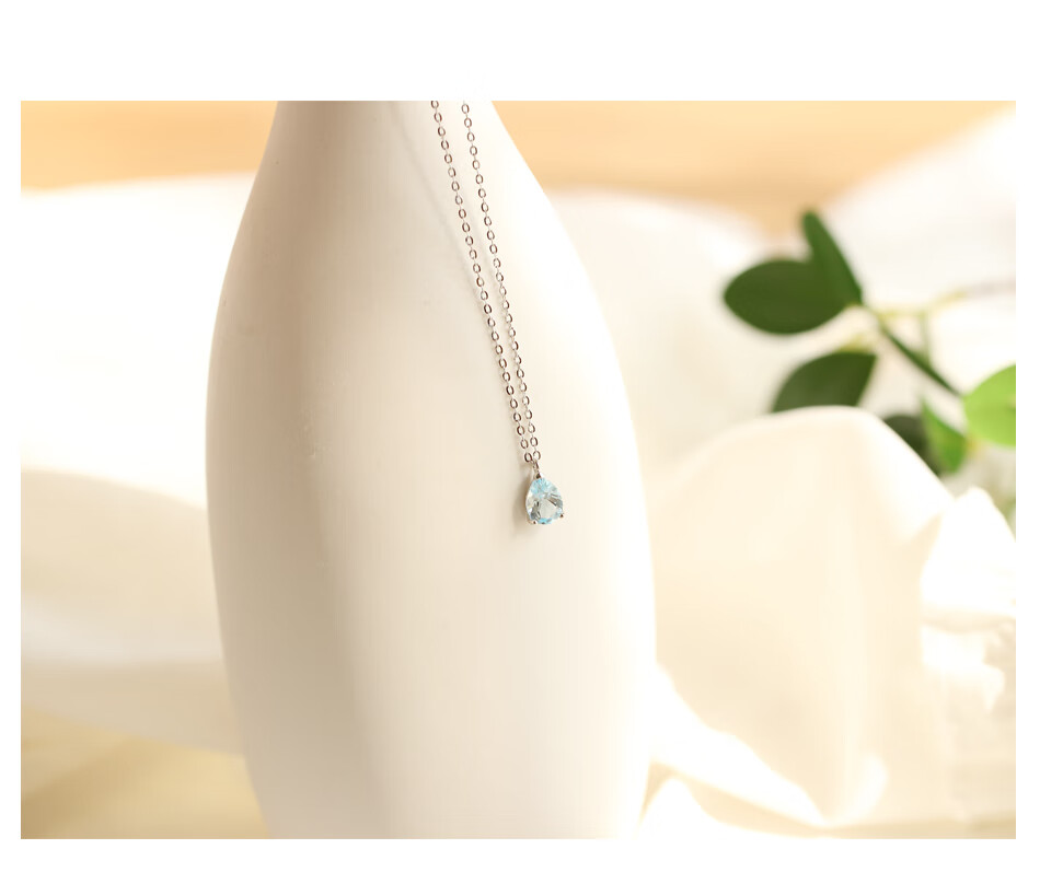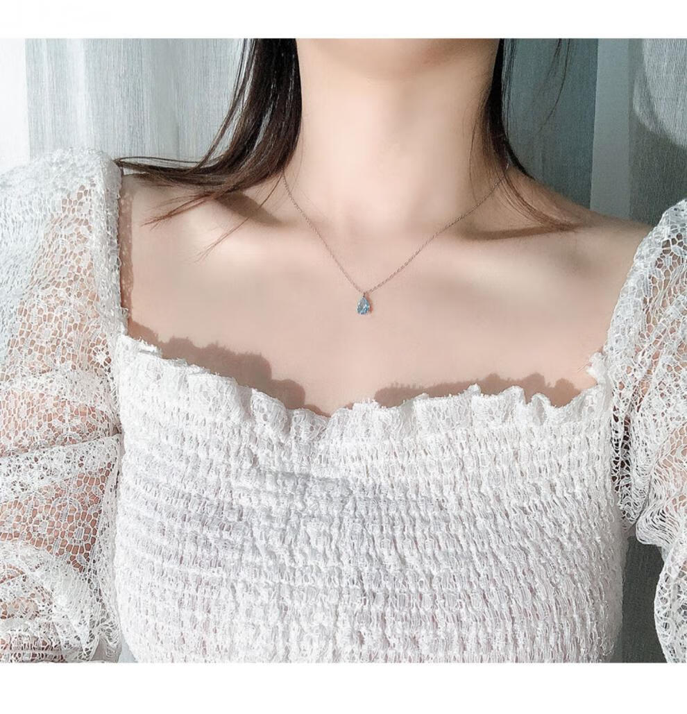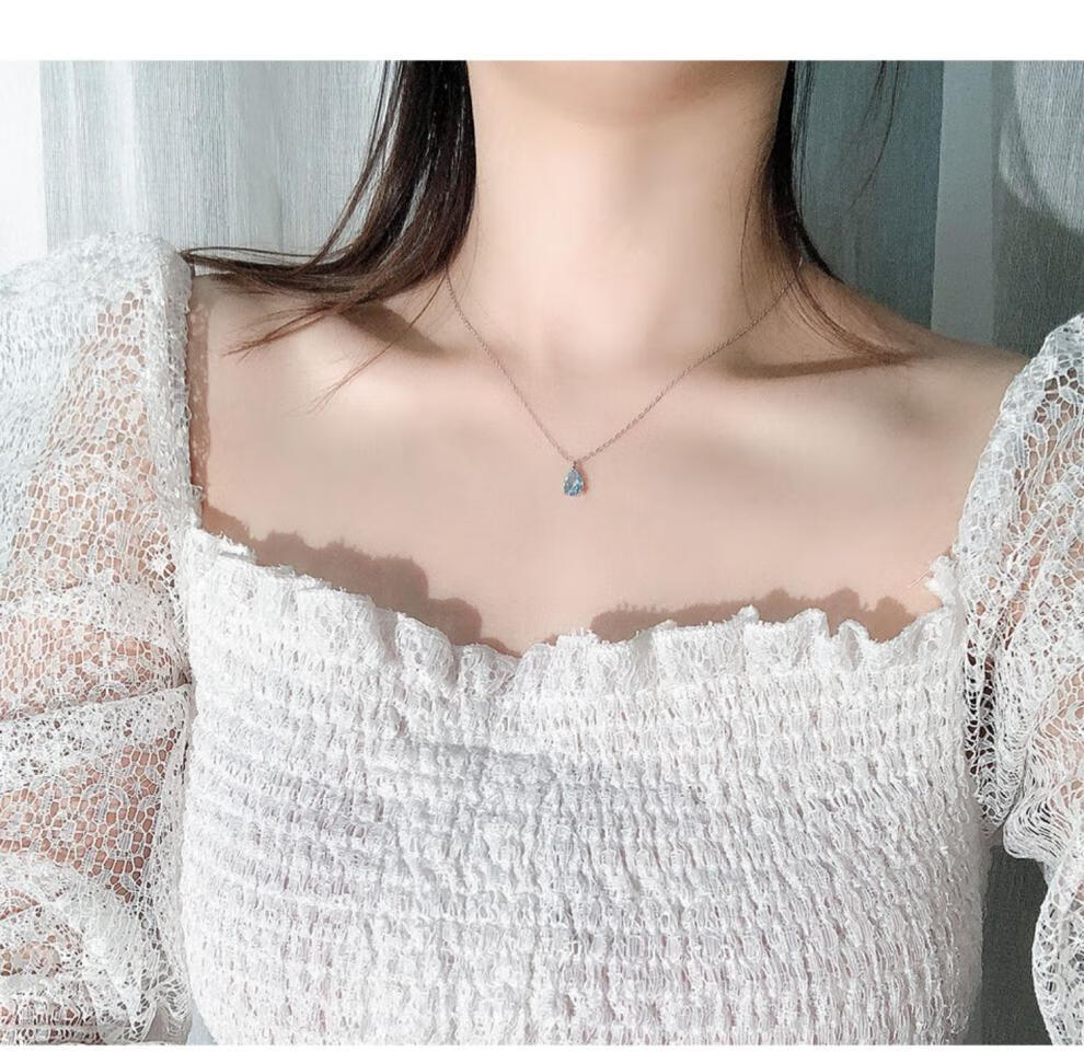 Fat Donglai's same style blue topaz, free certificate, 925 silver crystal water drop necklace for women, sky blue pendant, heart-pounding gift box packaging, water drop necklace silver + topaz
